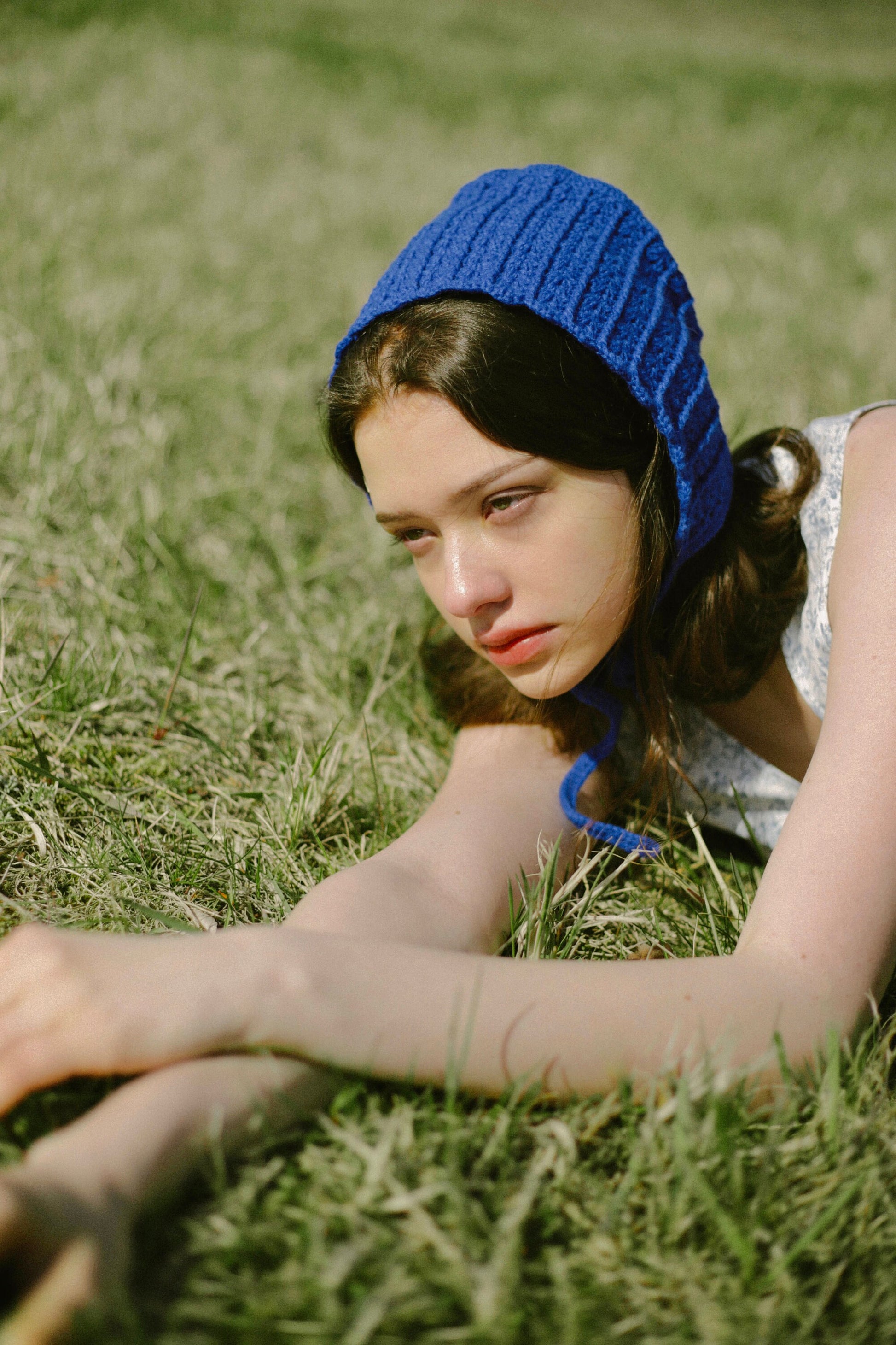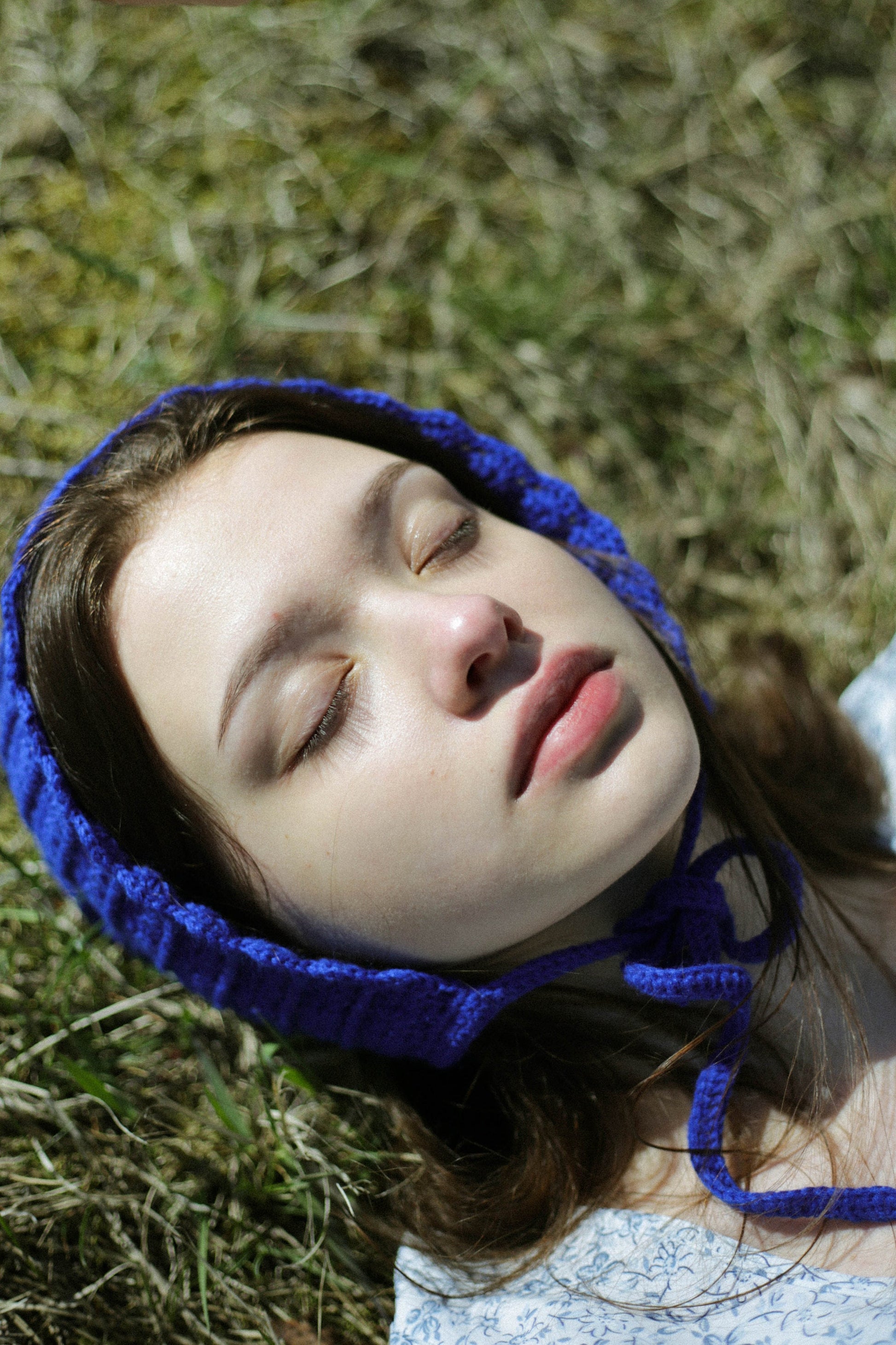 Say hi to a new product at our shop: crochet bonnet in admiral blue.