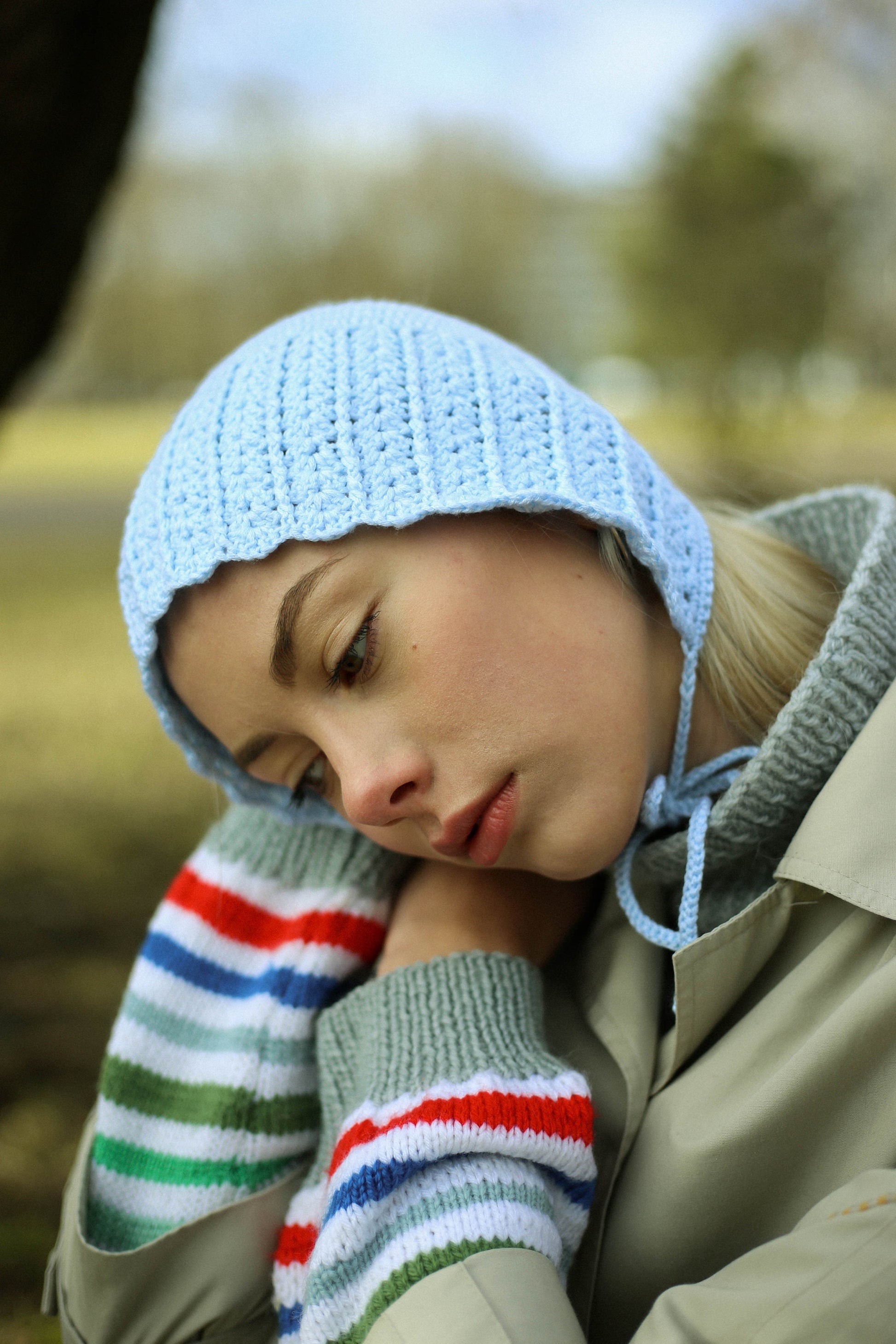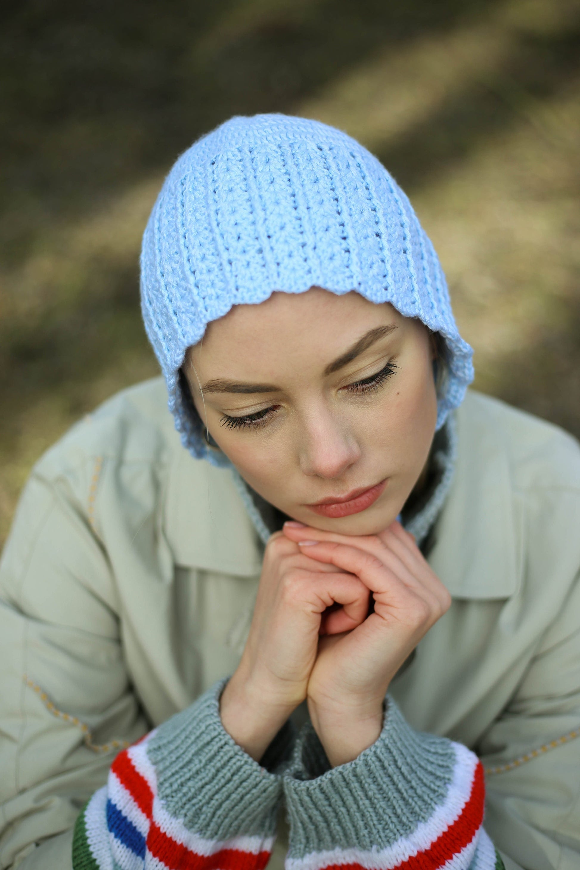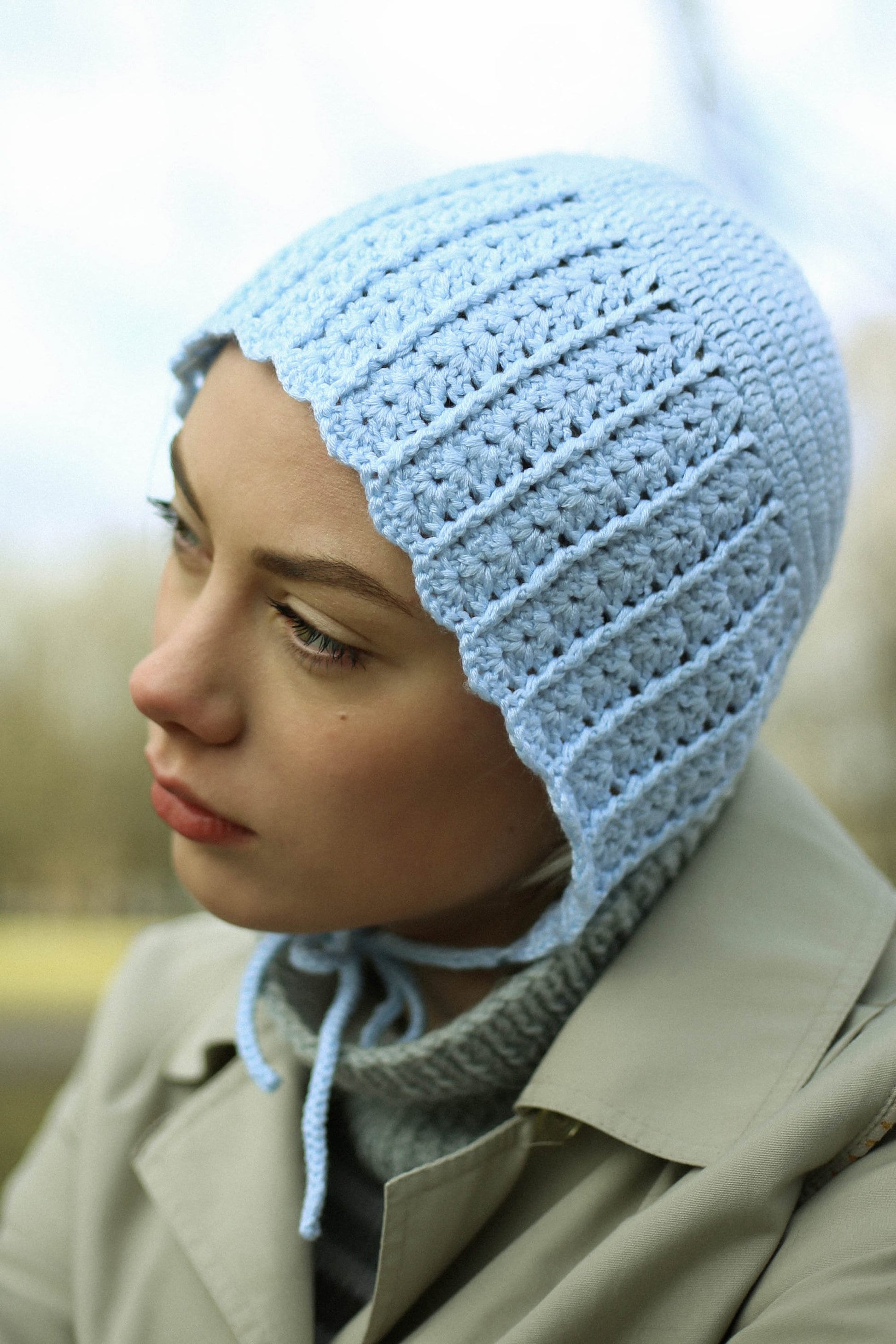 Say hi to a new product at our shop: crochet bonnet. At the moment, the most trend-driven style is the bonnet, a modern version of the headgear popular among Puritans in the 17th century, and its very close relation, the knitted hood, a crafty version of a balaclava without the face covering.