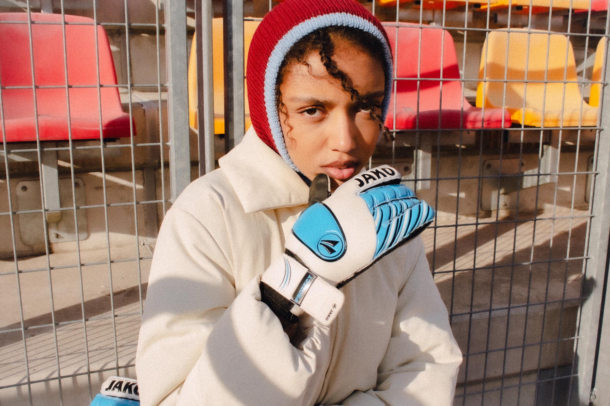 Merino Wool Balaclava in Burgundy & Baby Blue
