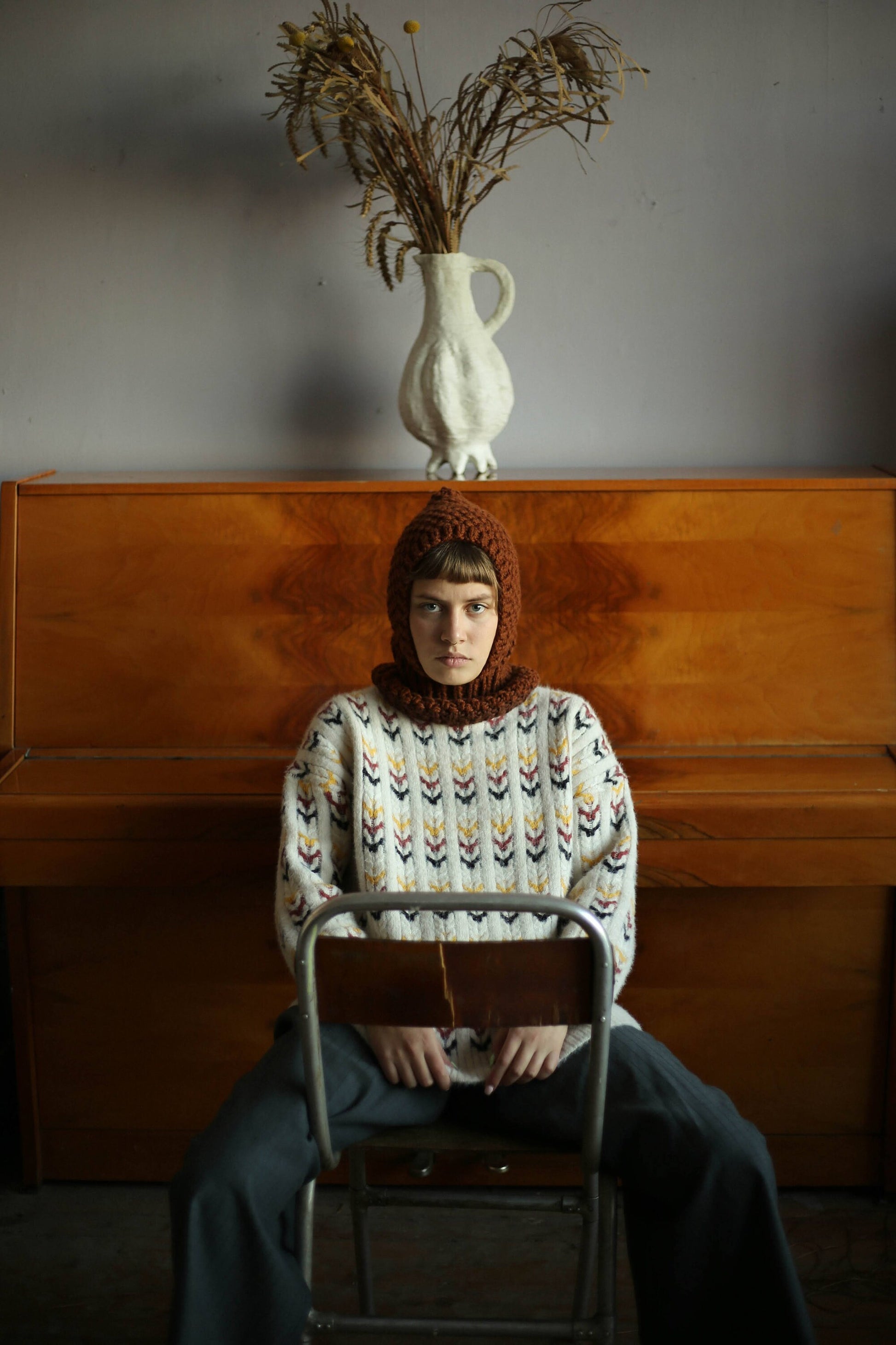 Knitted from premium wool yarn, this balaclava combines warmth, softness, and understated elegance. Designed to protect the ears, forehead, and neck from cold winds, it offers a close, comfortable fit for reliable warmth.