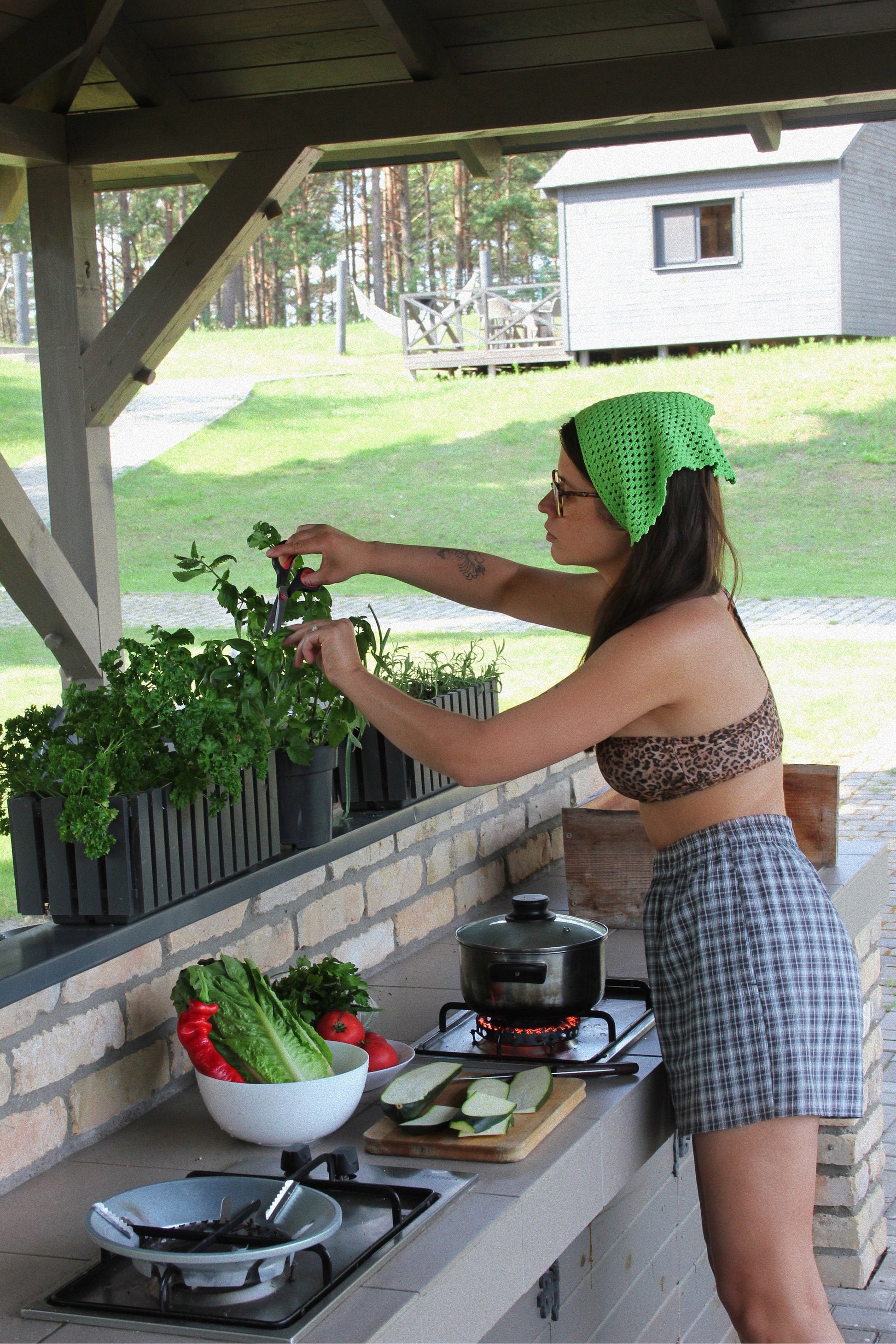 An ode to summer and wholesome activities that we enjoy in the country. Our new product: the mesh headscarf, is a cool addition to days like these. An accessory that protects you from the sun, while hugging your hair with an airy eye-catching pattern.
