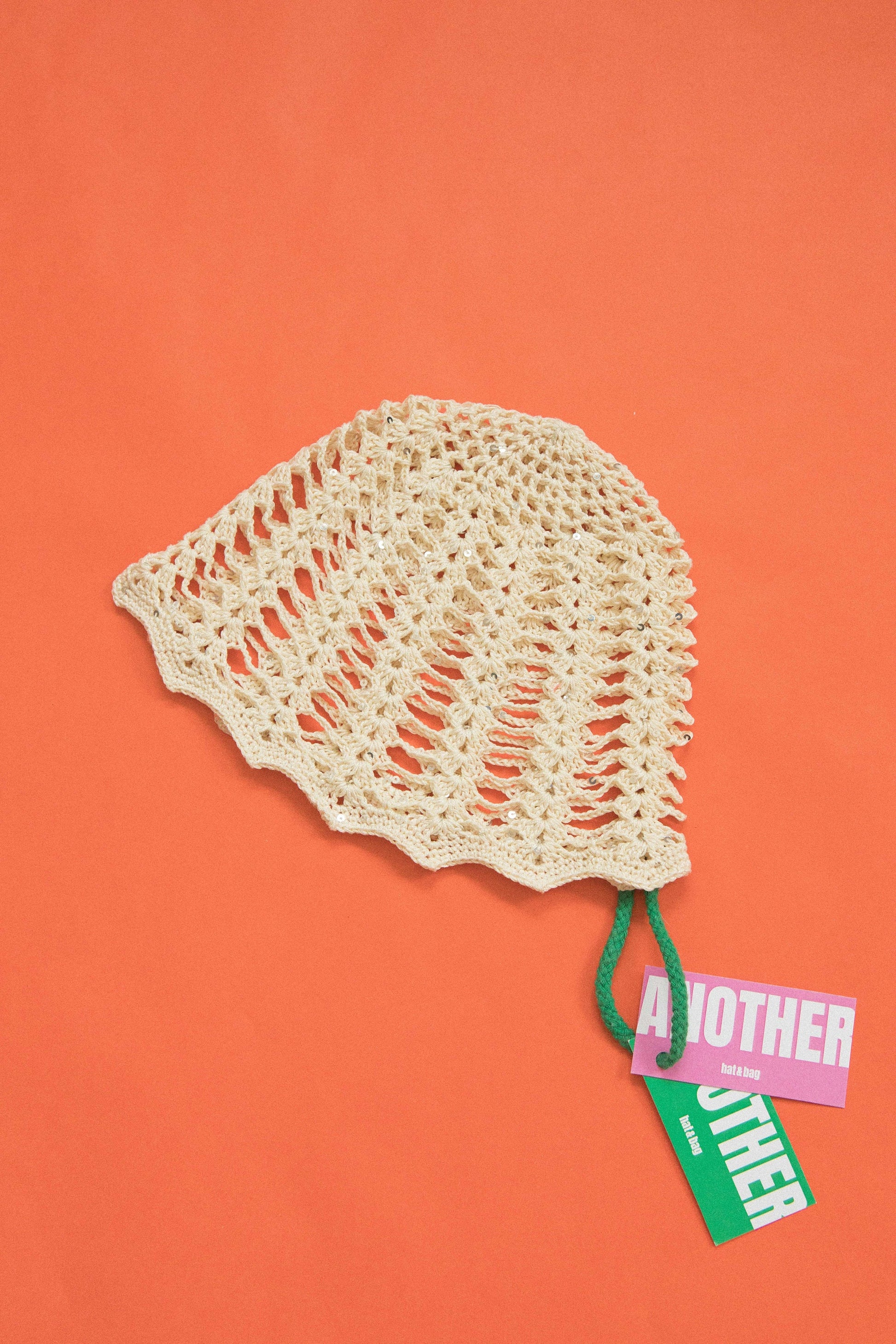 Premium Cotton Mesh Crochet Hat in Ivory With Sequins