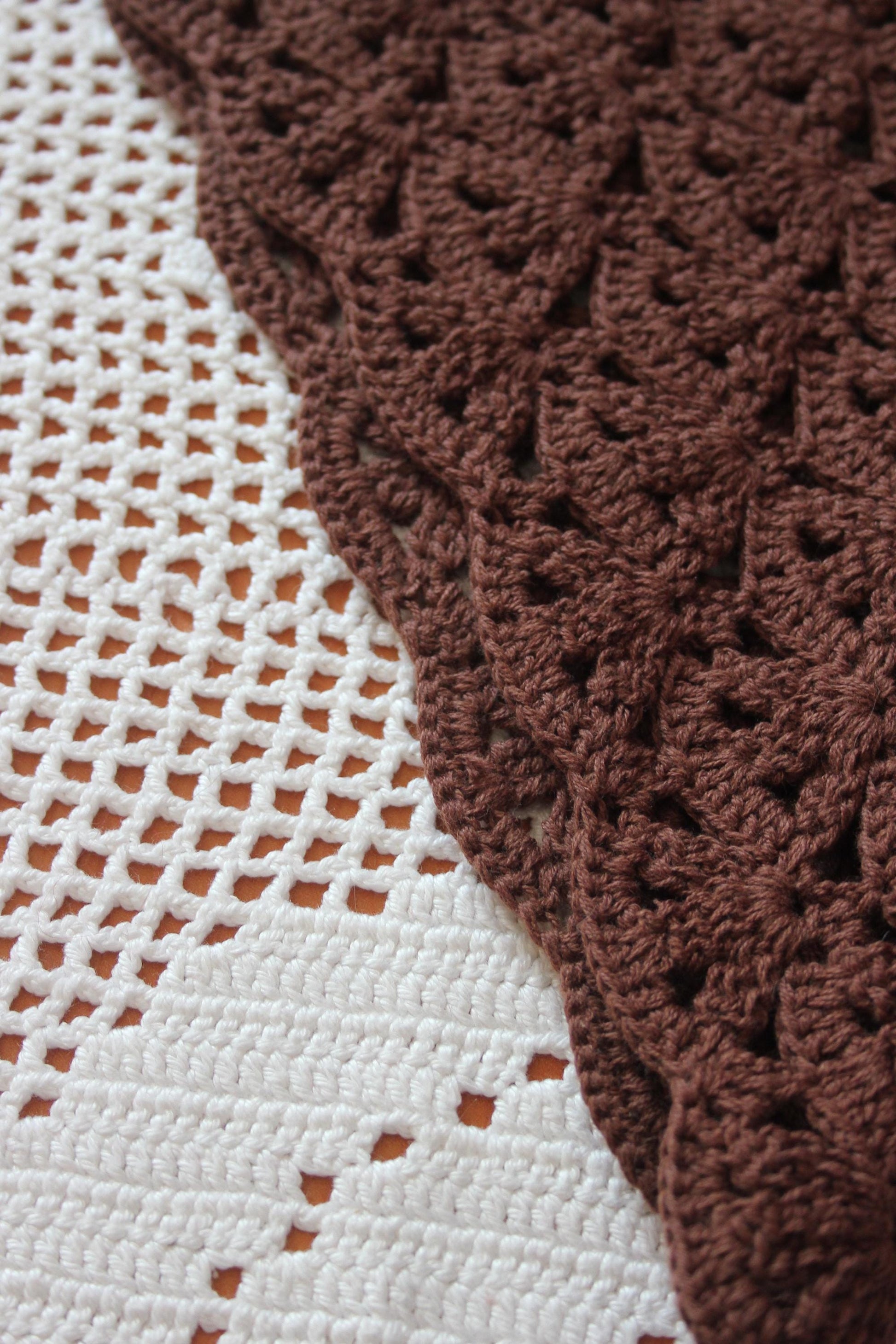 Crochet Premium Cotton Shell & Lace Stitch Headscarf in Brown