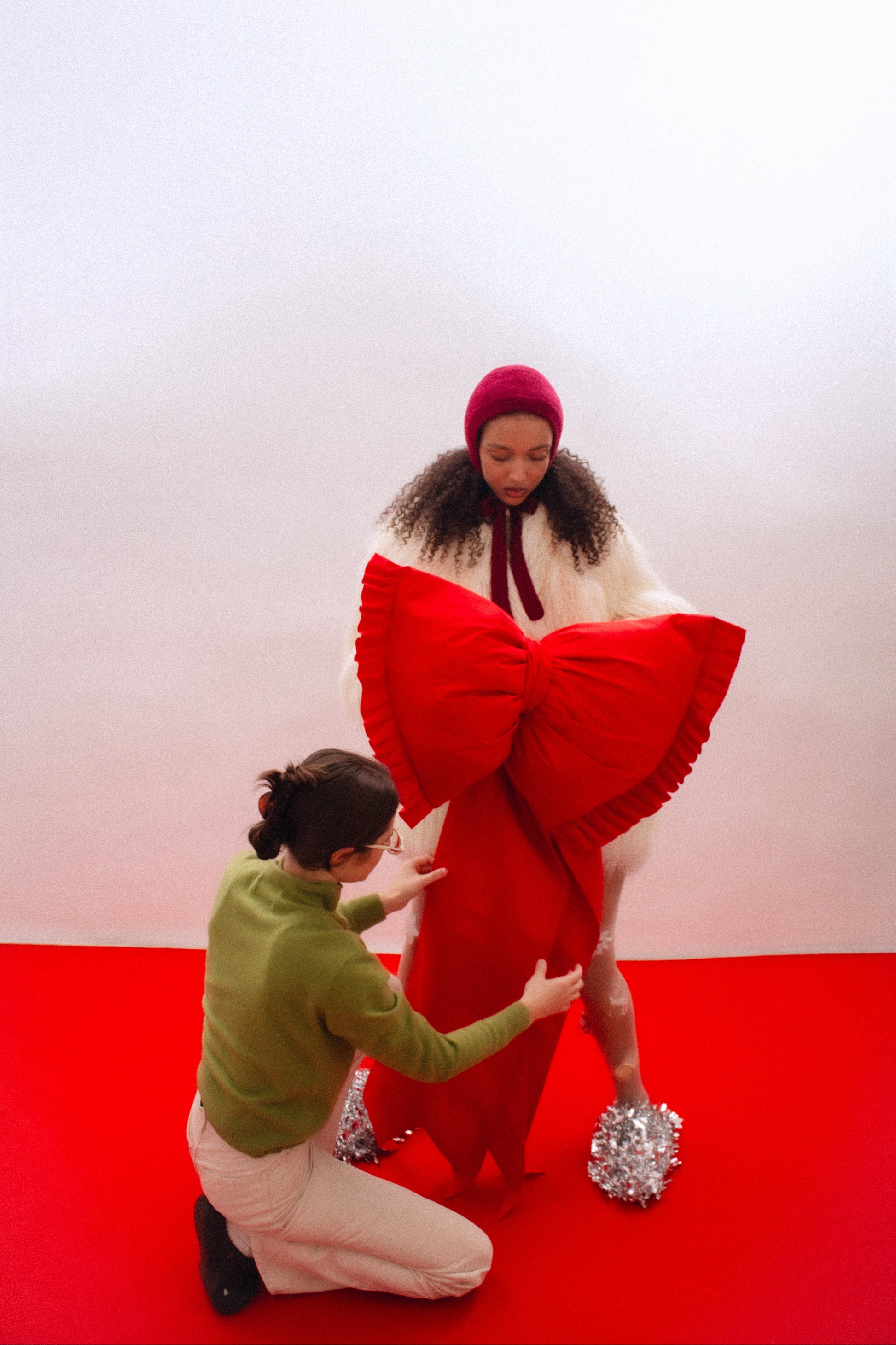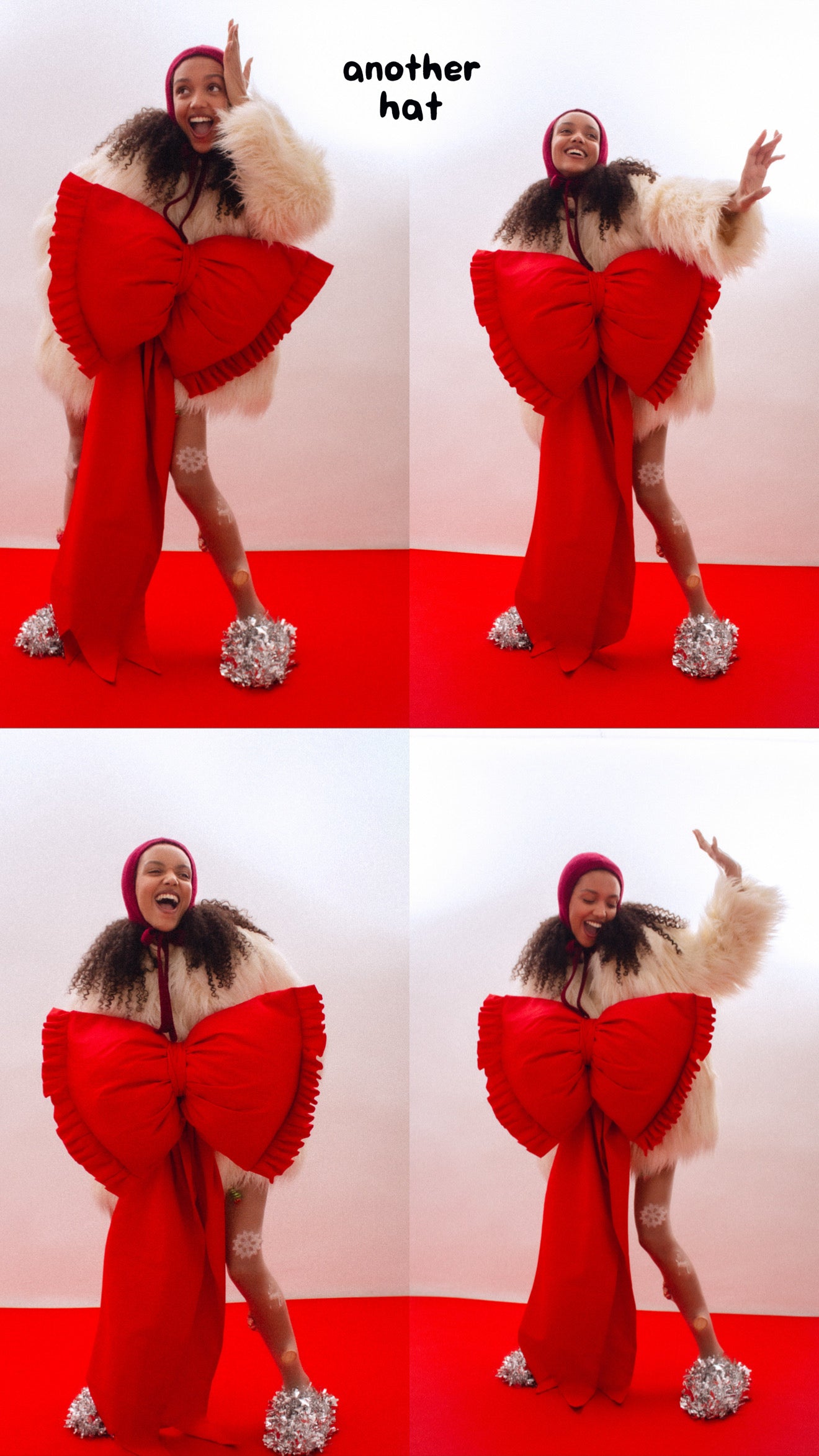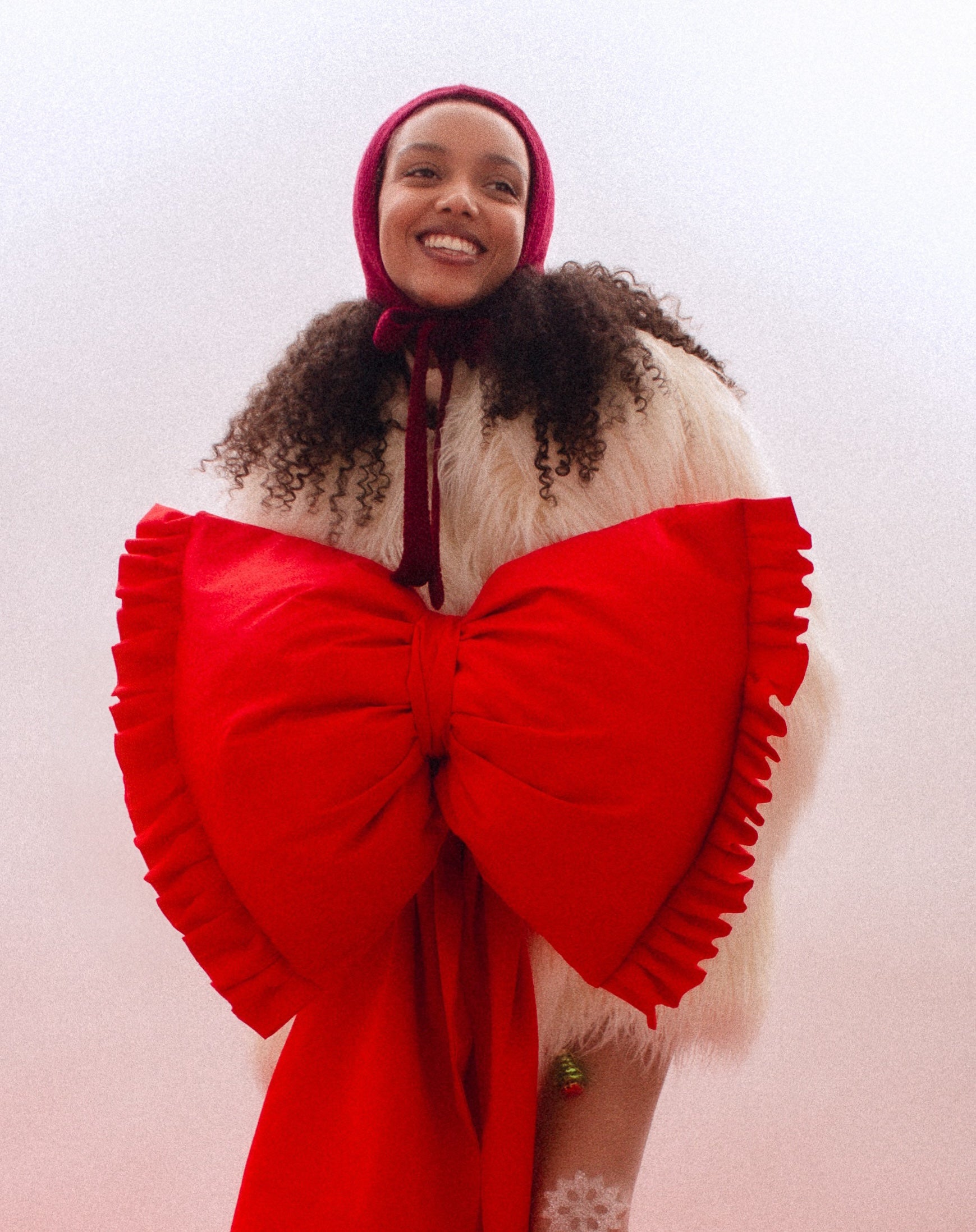 Hand-knitted Adult Bow Tie Bonnet hat in Burgundy