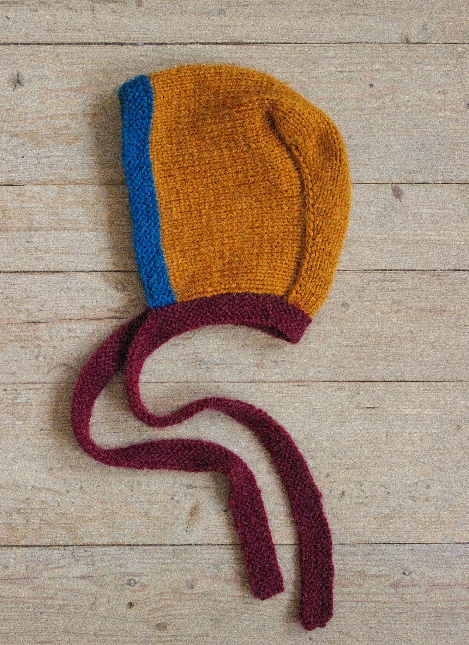 Hand-knitted Adult Bow Tie Bonnet hat in dull multicolor