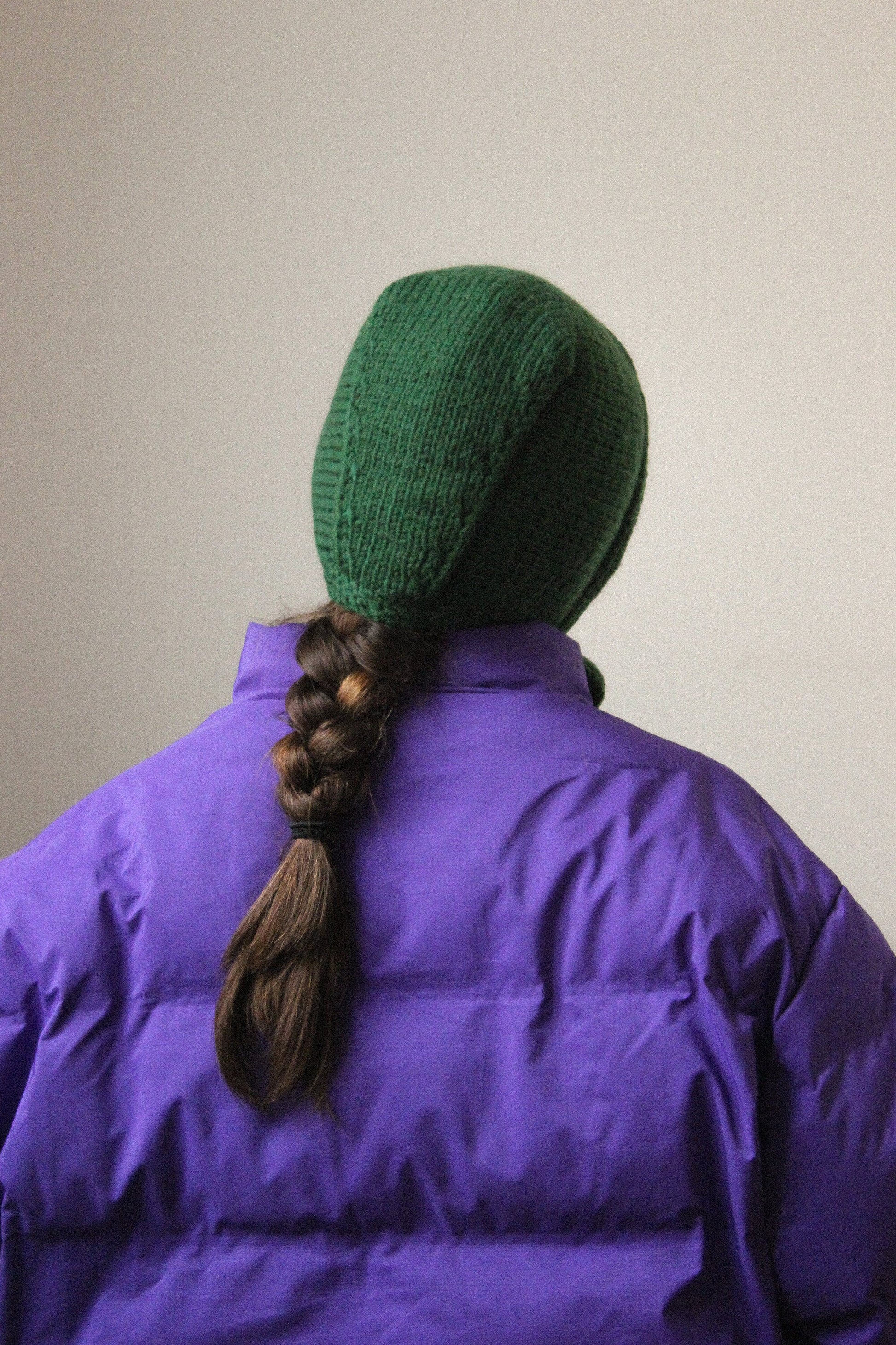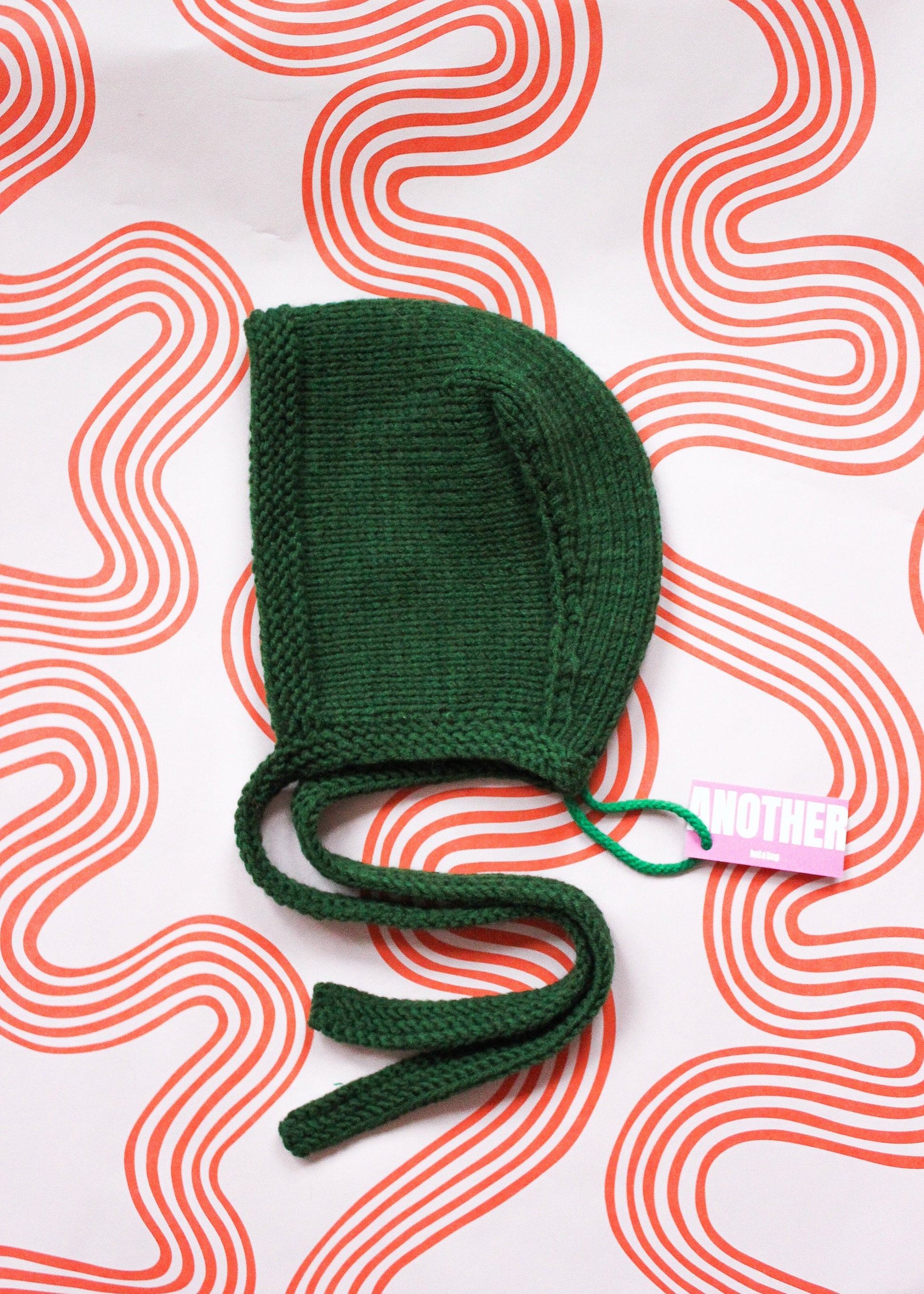 Hand-knitted Adult Bow Tie Bonnet hat in Green