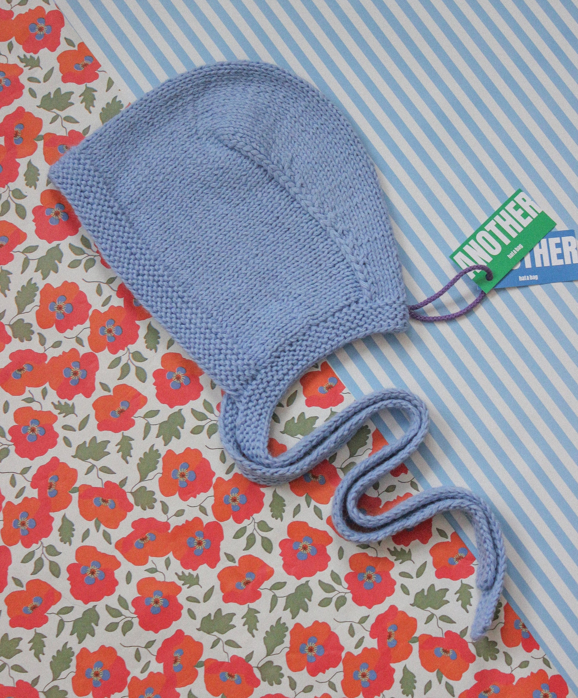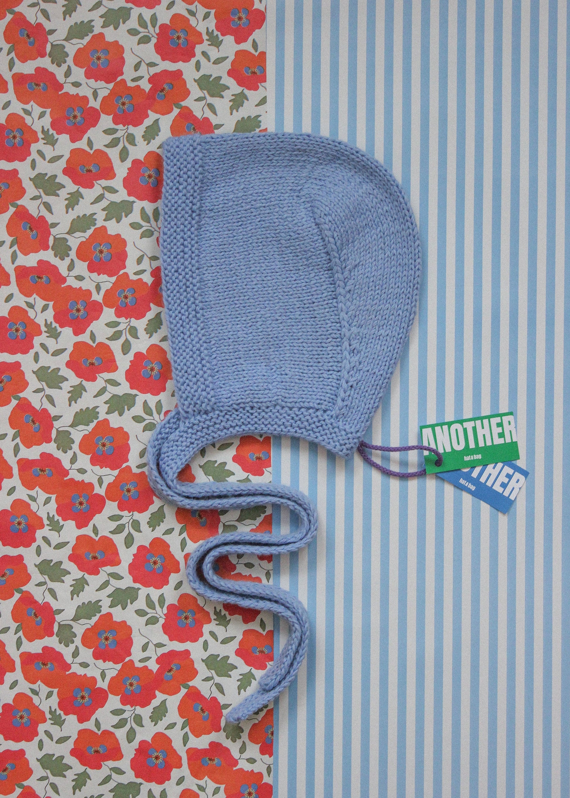 Hand-knitted Adult Bow Tie Bonnet hat in Light Blue