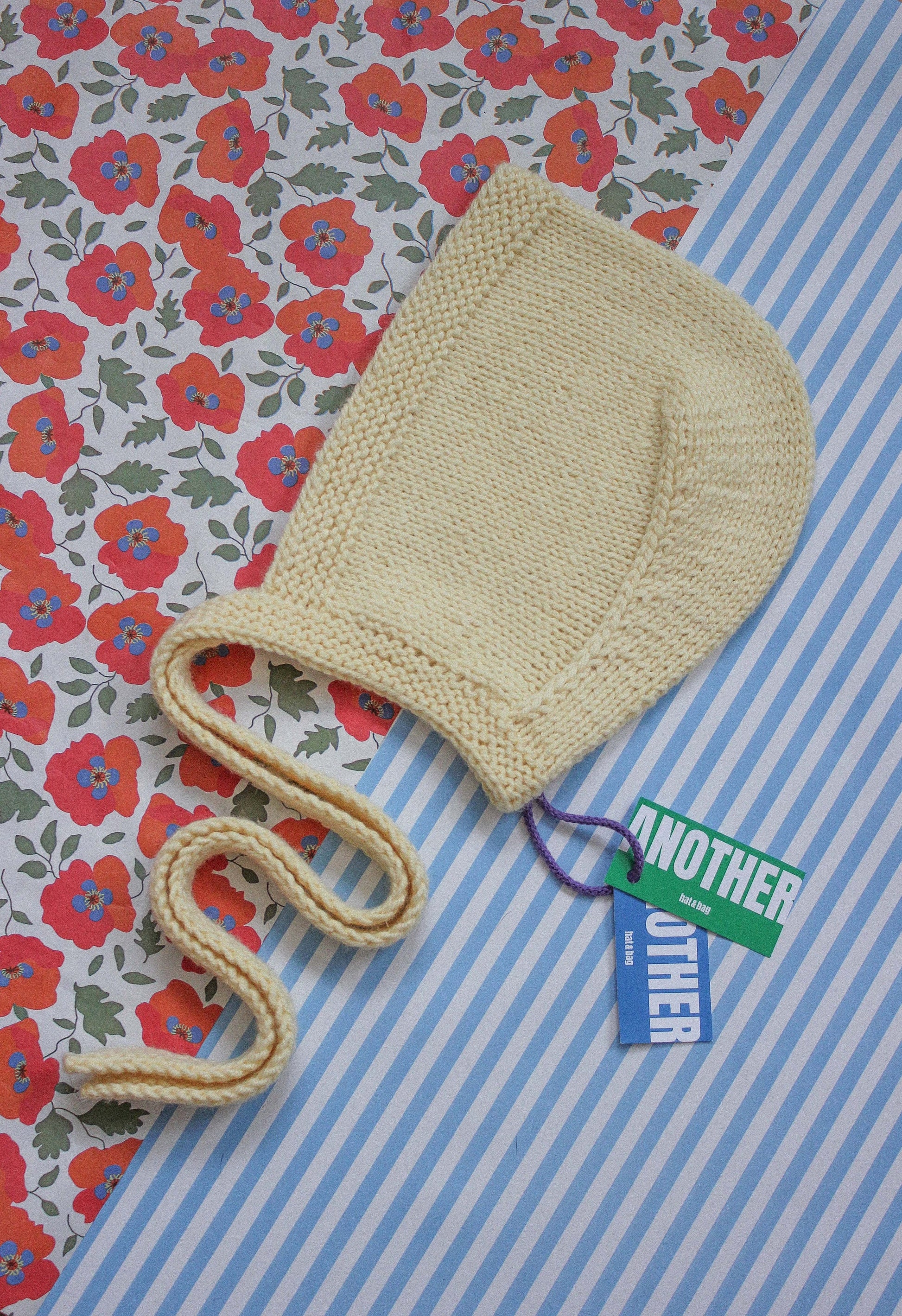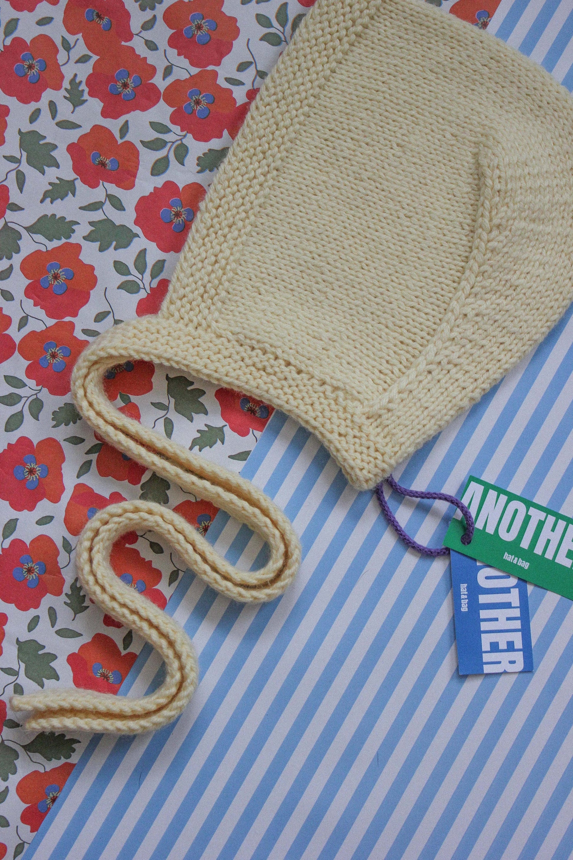 Hand-knitted Adult Bow Tie Bonnet hat in Light Yellow