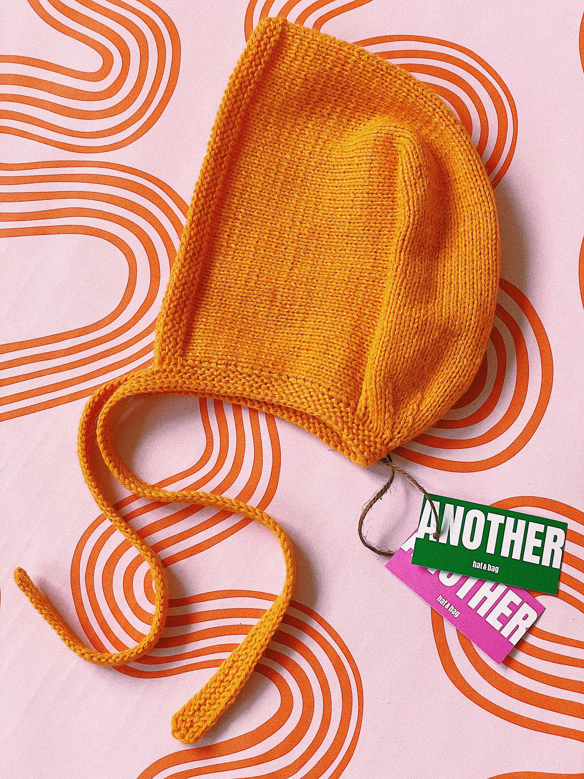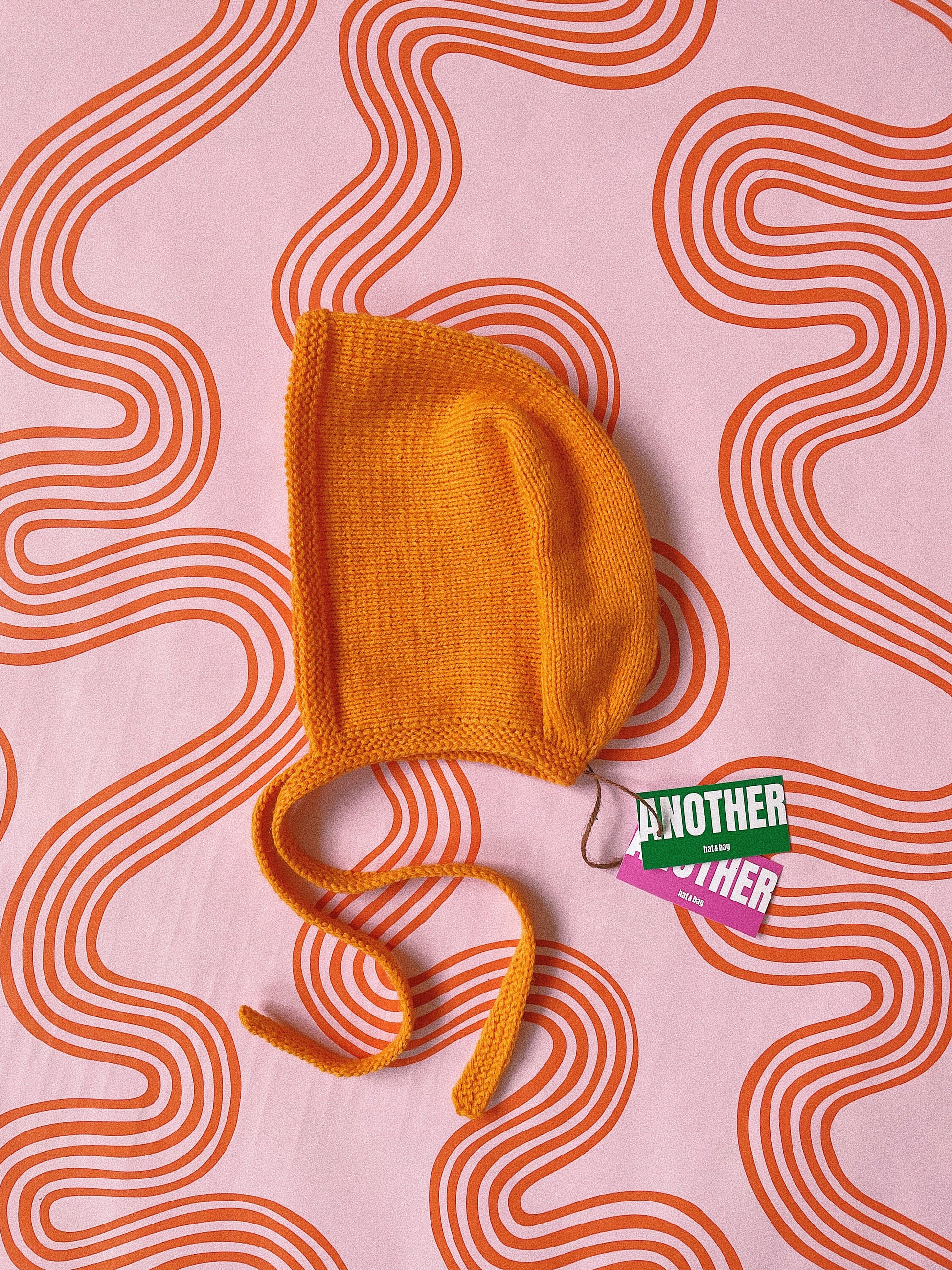 Hand-knitted Adult Bow Tie Bonnet hat in mandarin orange