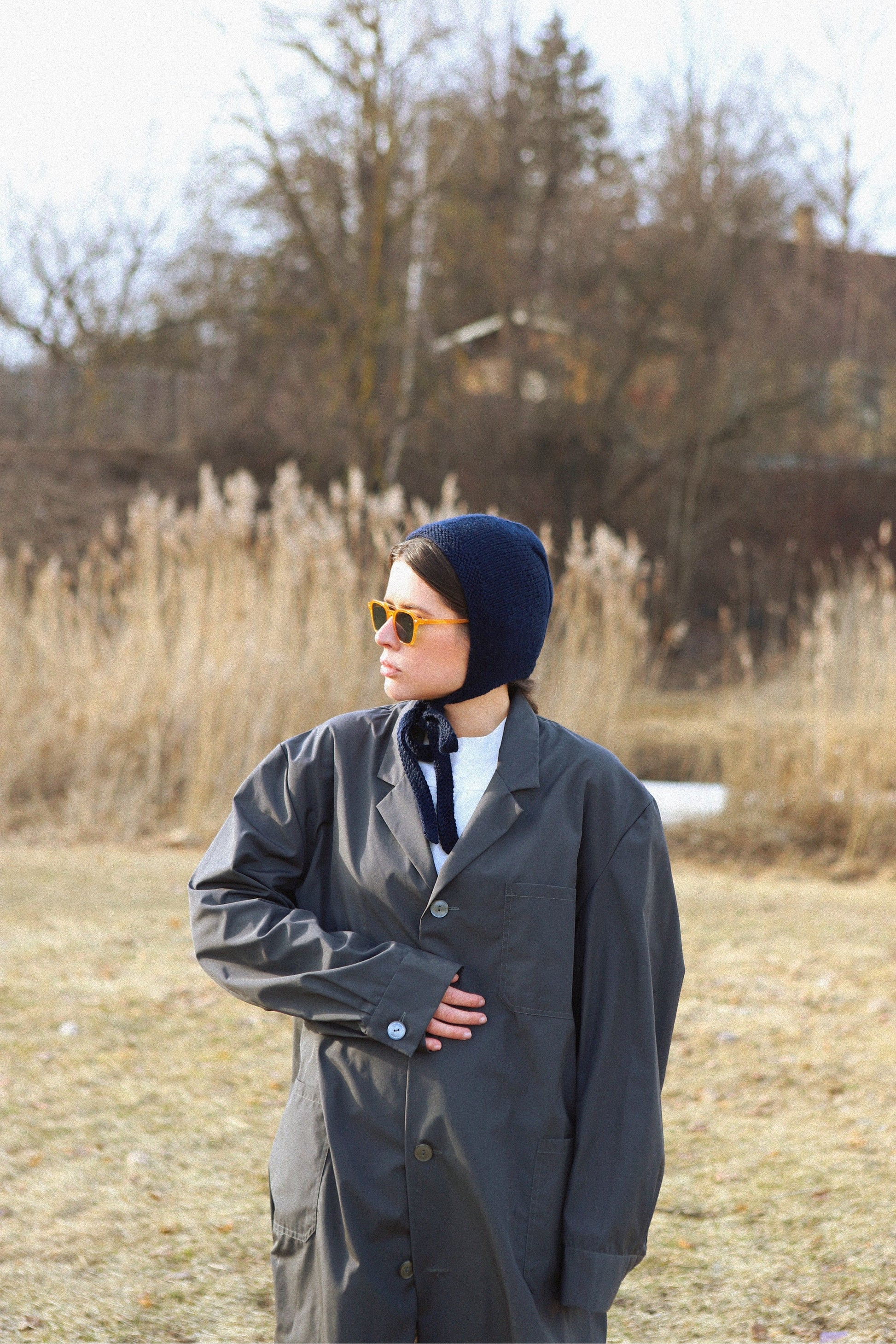 Say hi to a new product at our shop: knitted bonnet. At the moment, the most trend-driven style is the bonnet, a modern version of the headgear popular among Puritans in the 17th century, and its very close relation, the knitted hood, a crafty version of a balaclava without the face covering.