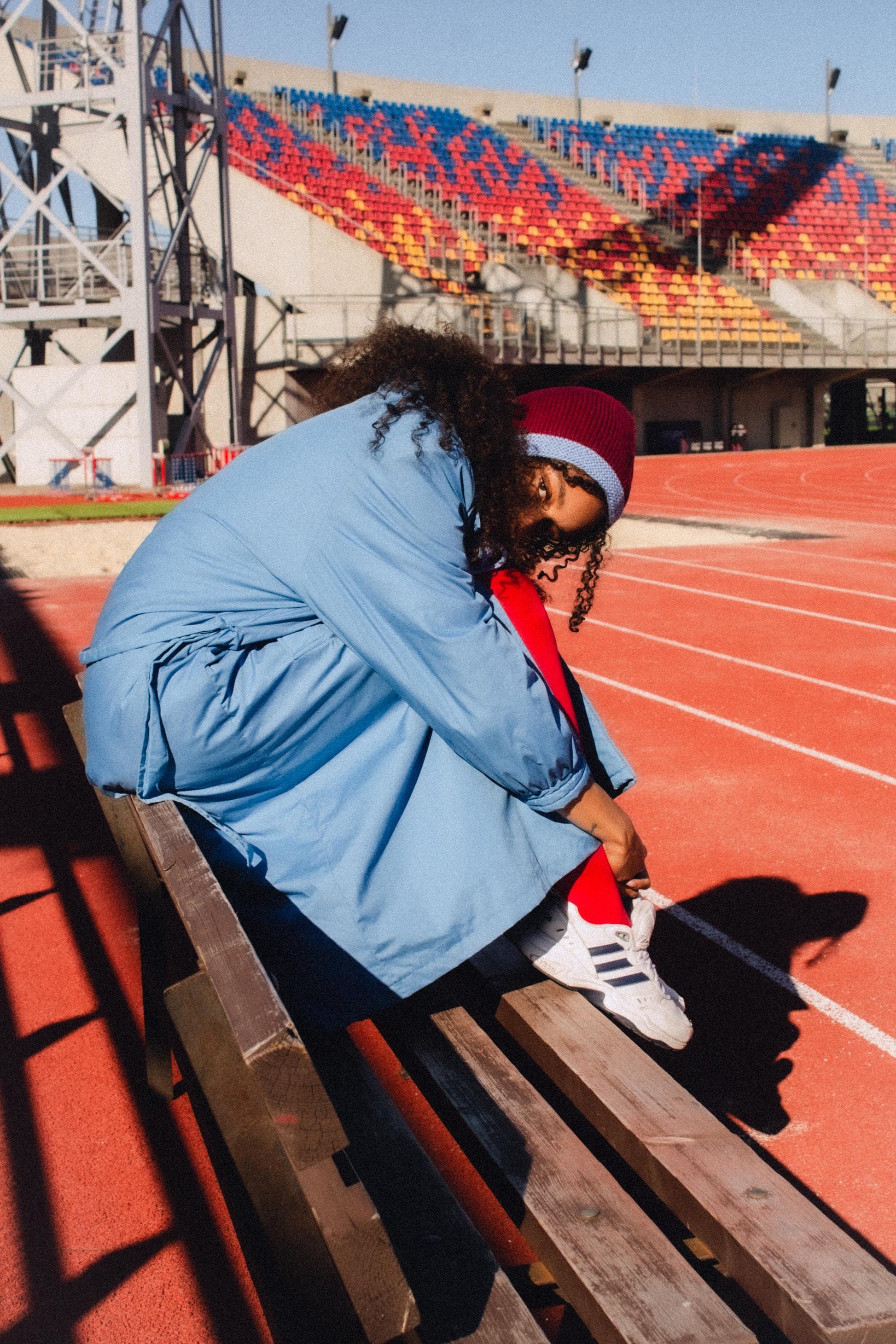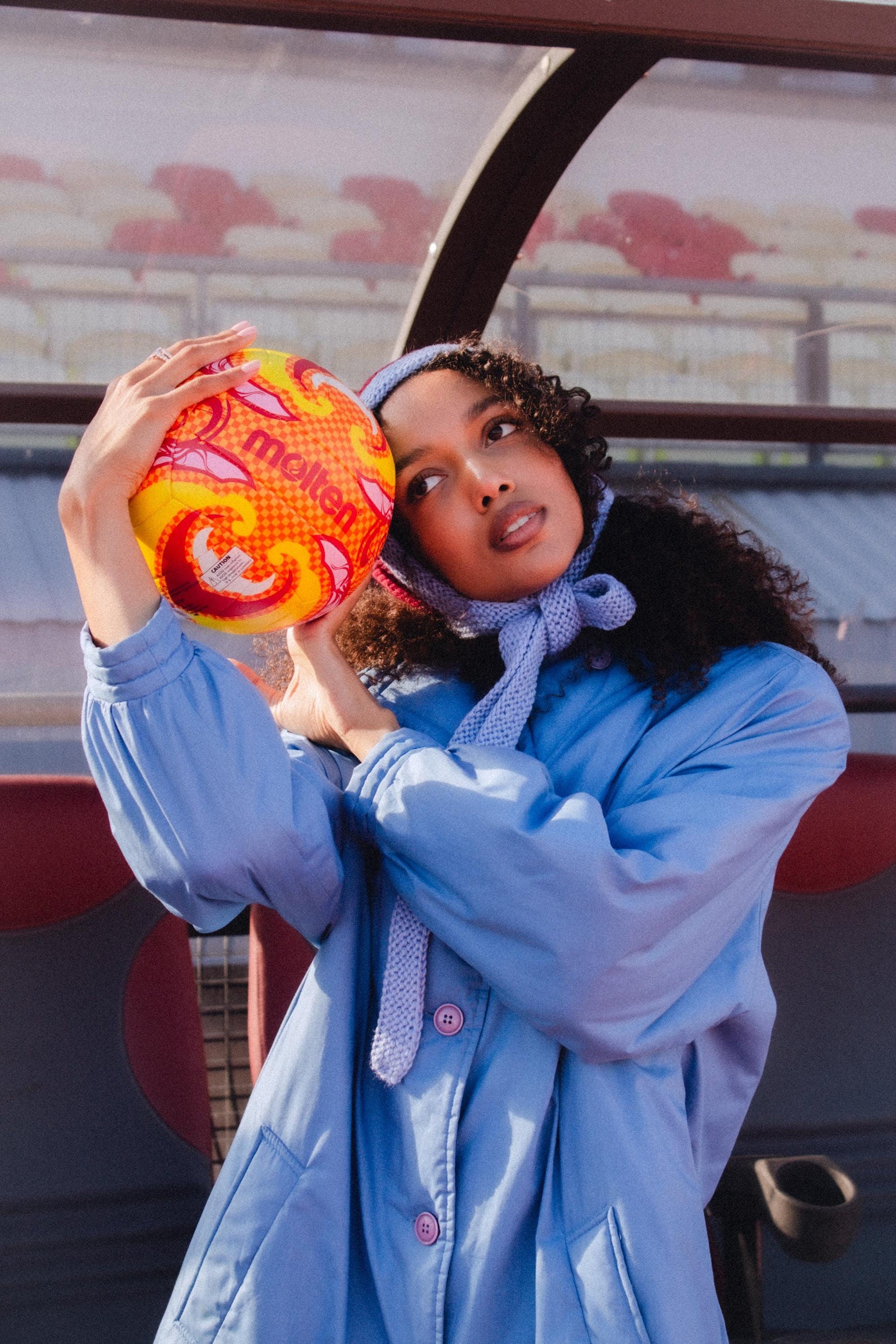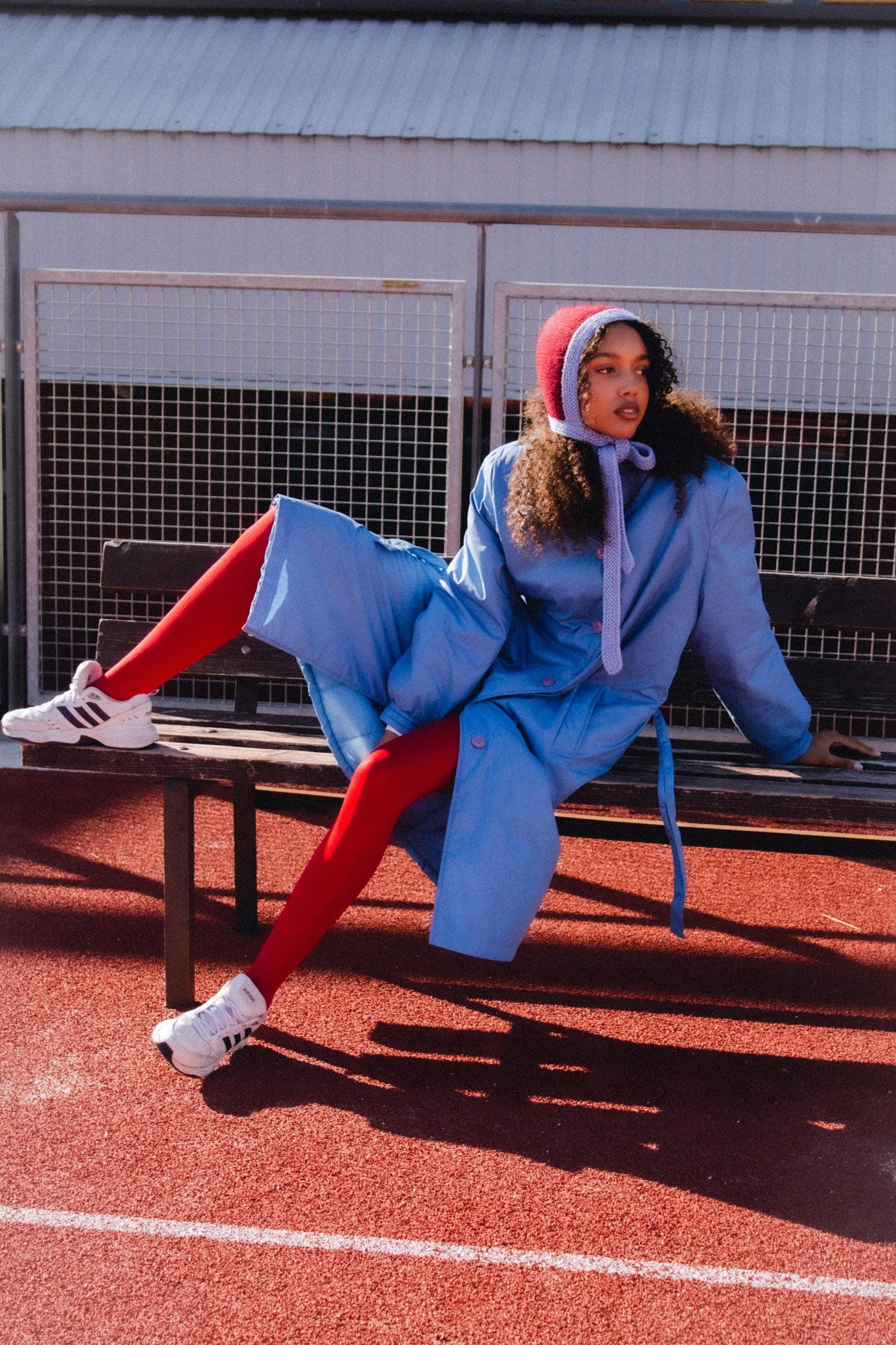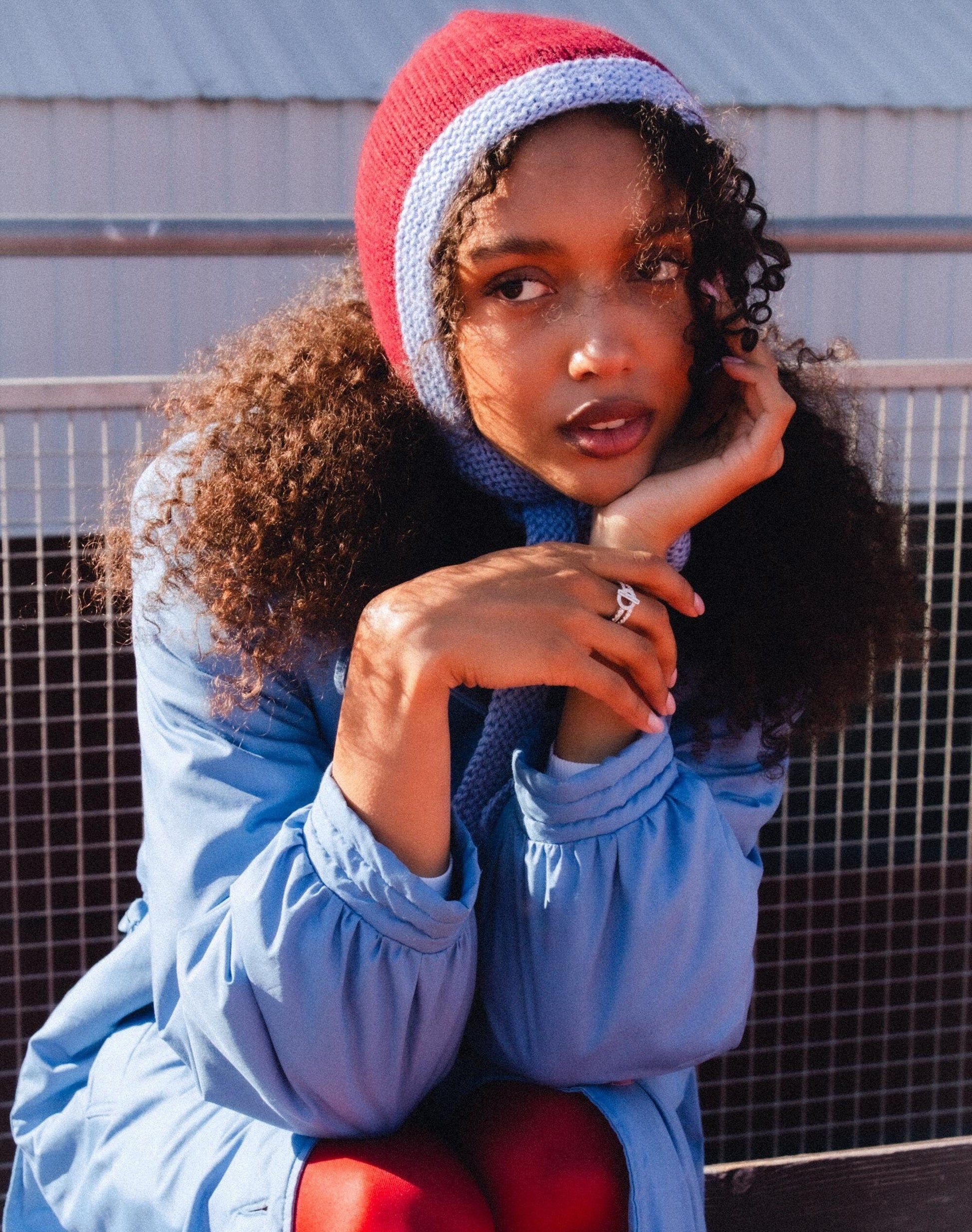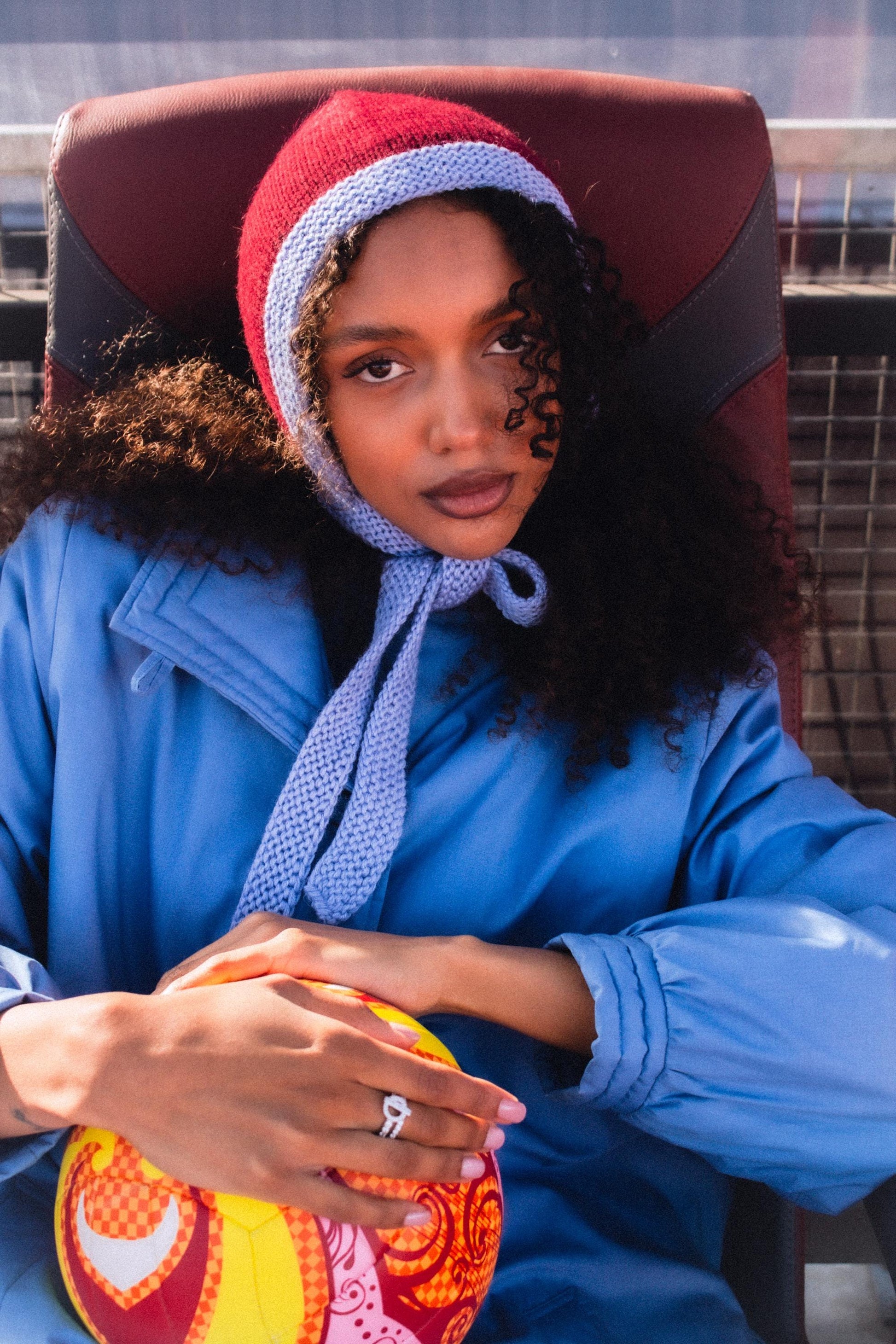 New kid on the block: Chunky bonnet in the hottest color combo as of lately – burgundy and baby blue.