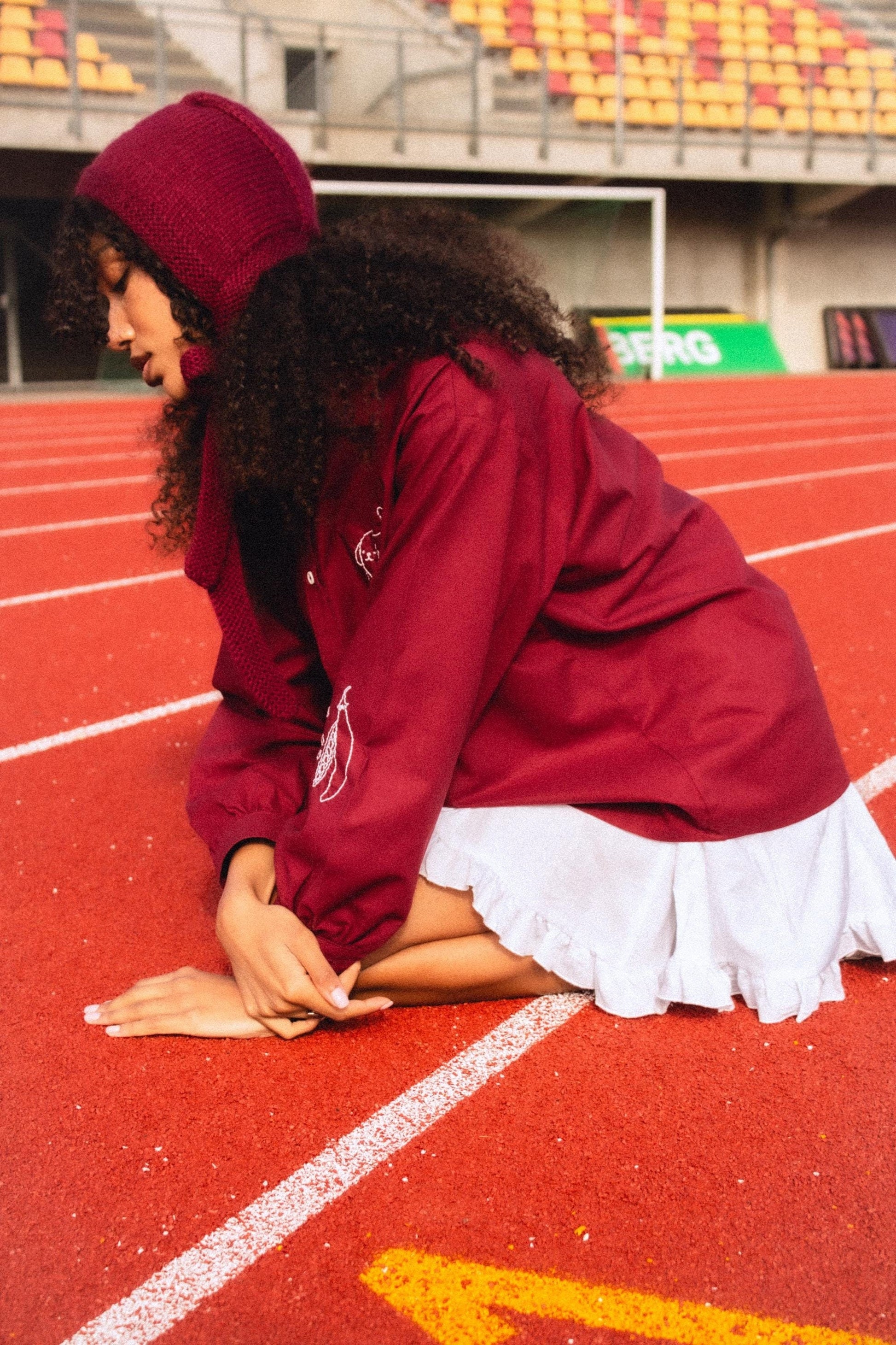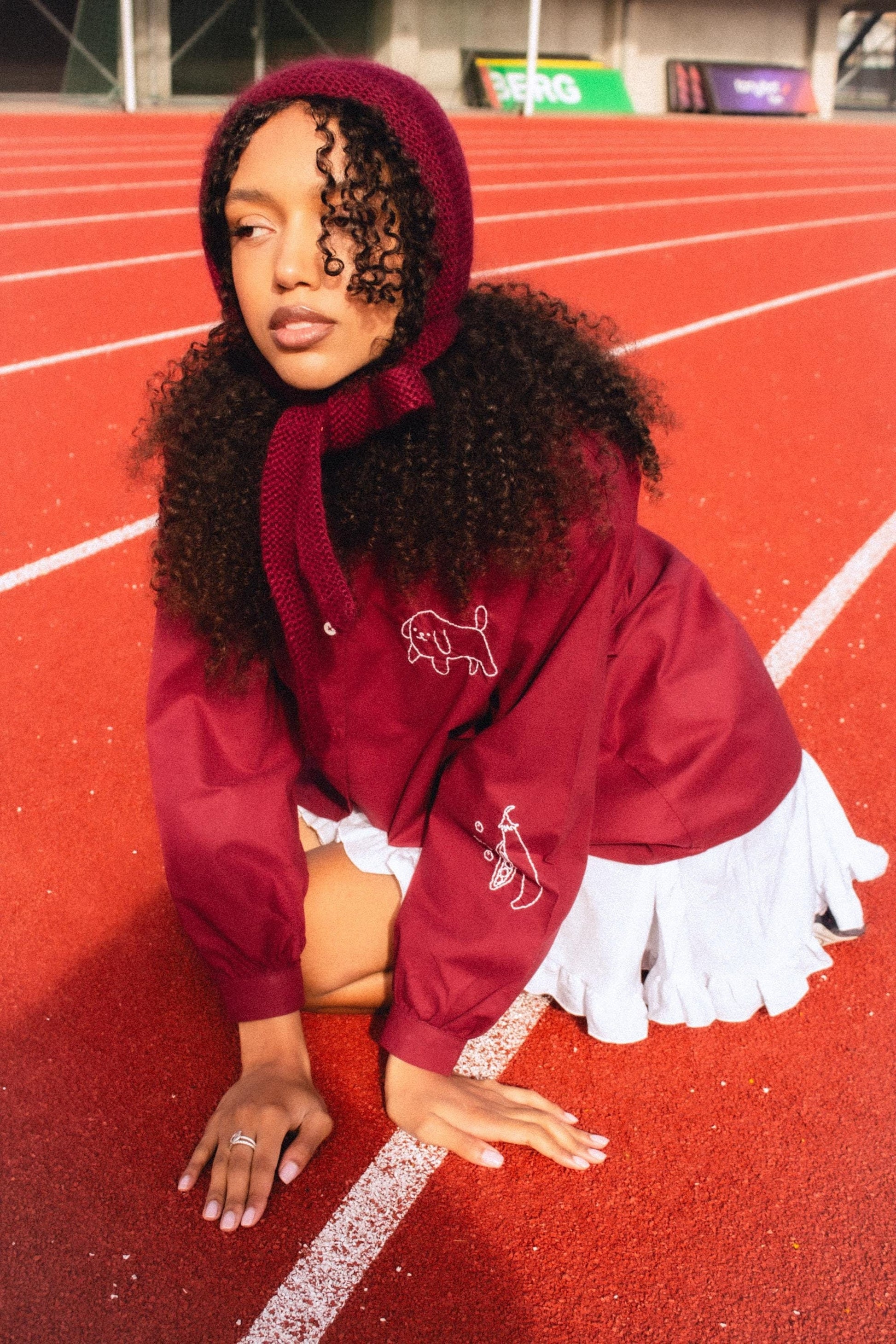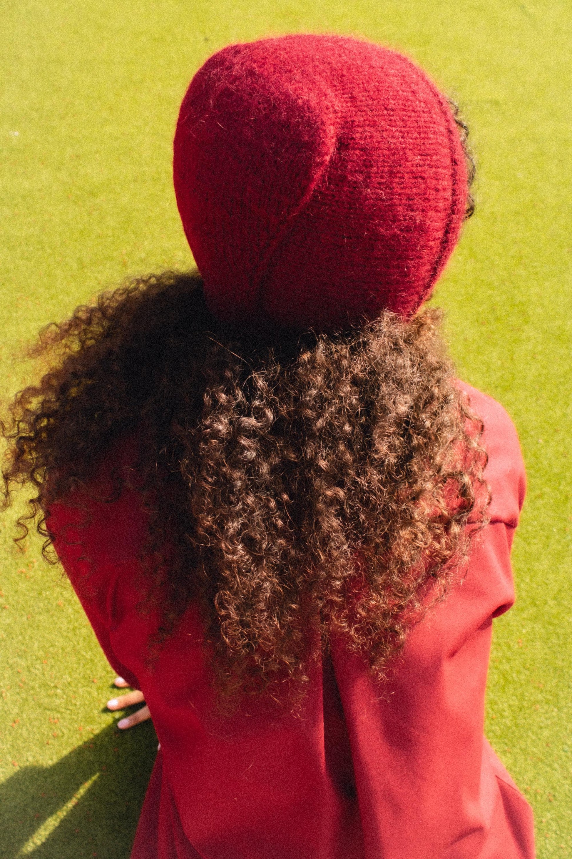 Hand - knitted Adult Bow Tie Mohair Bonnet in Burgundy
