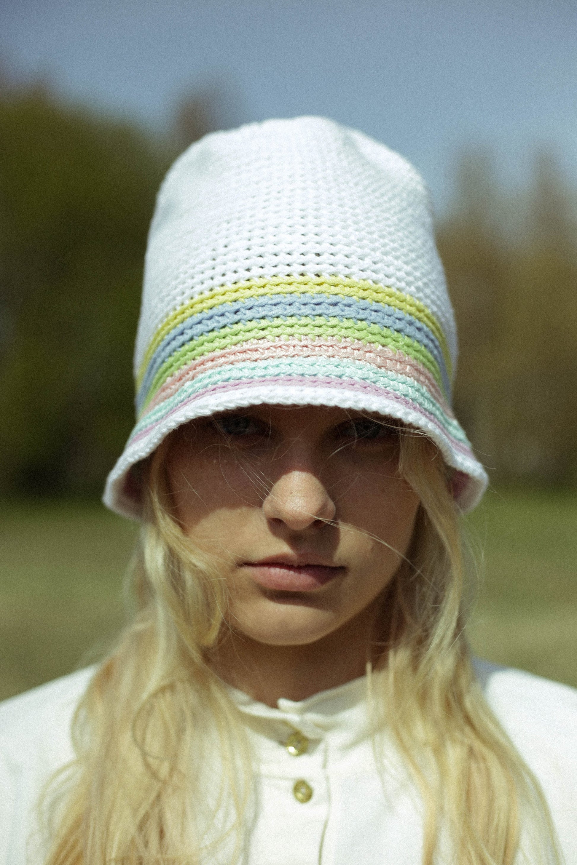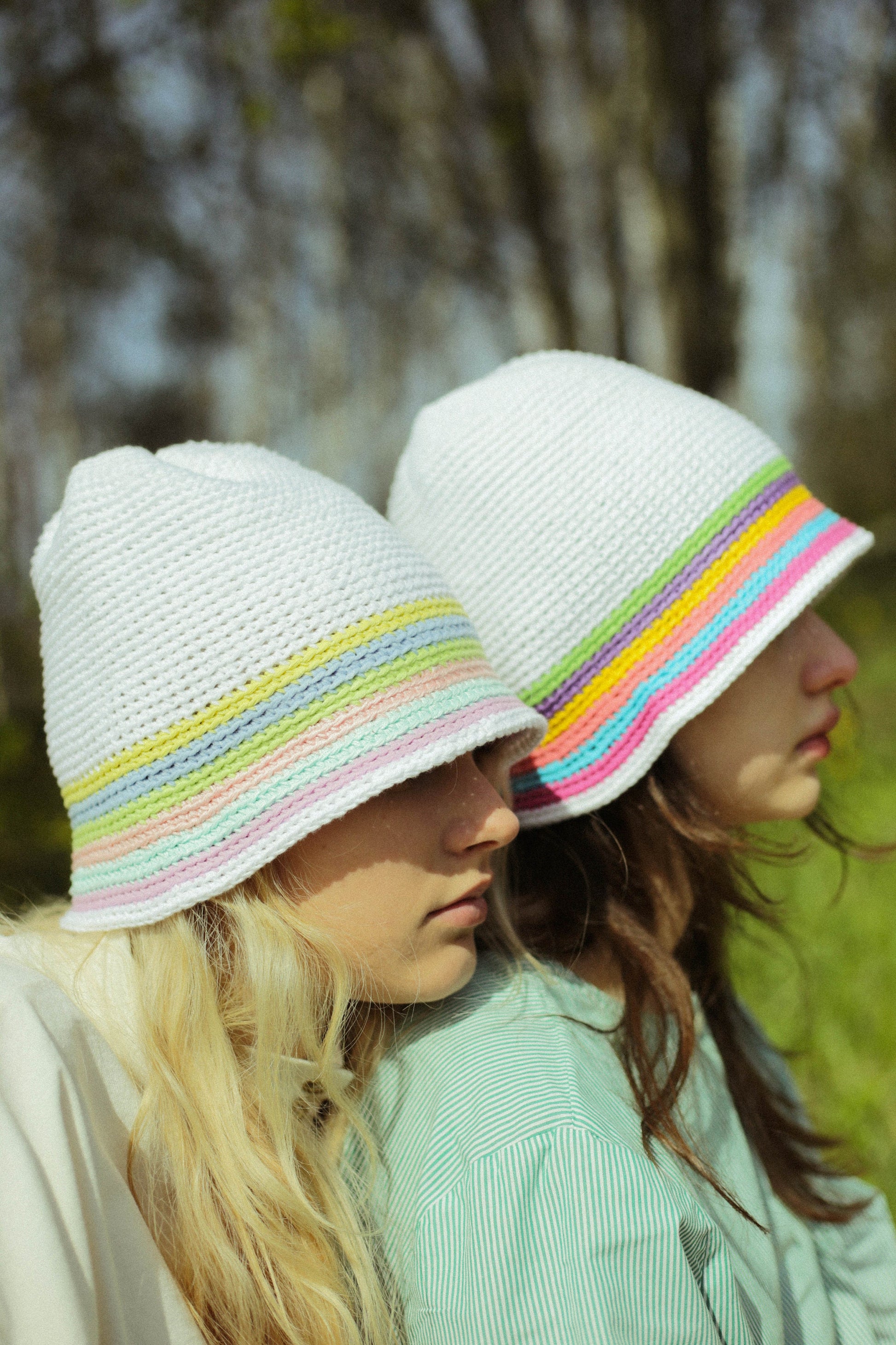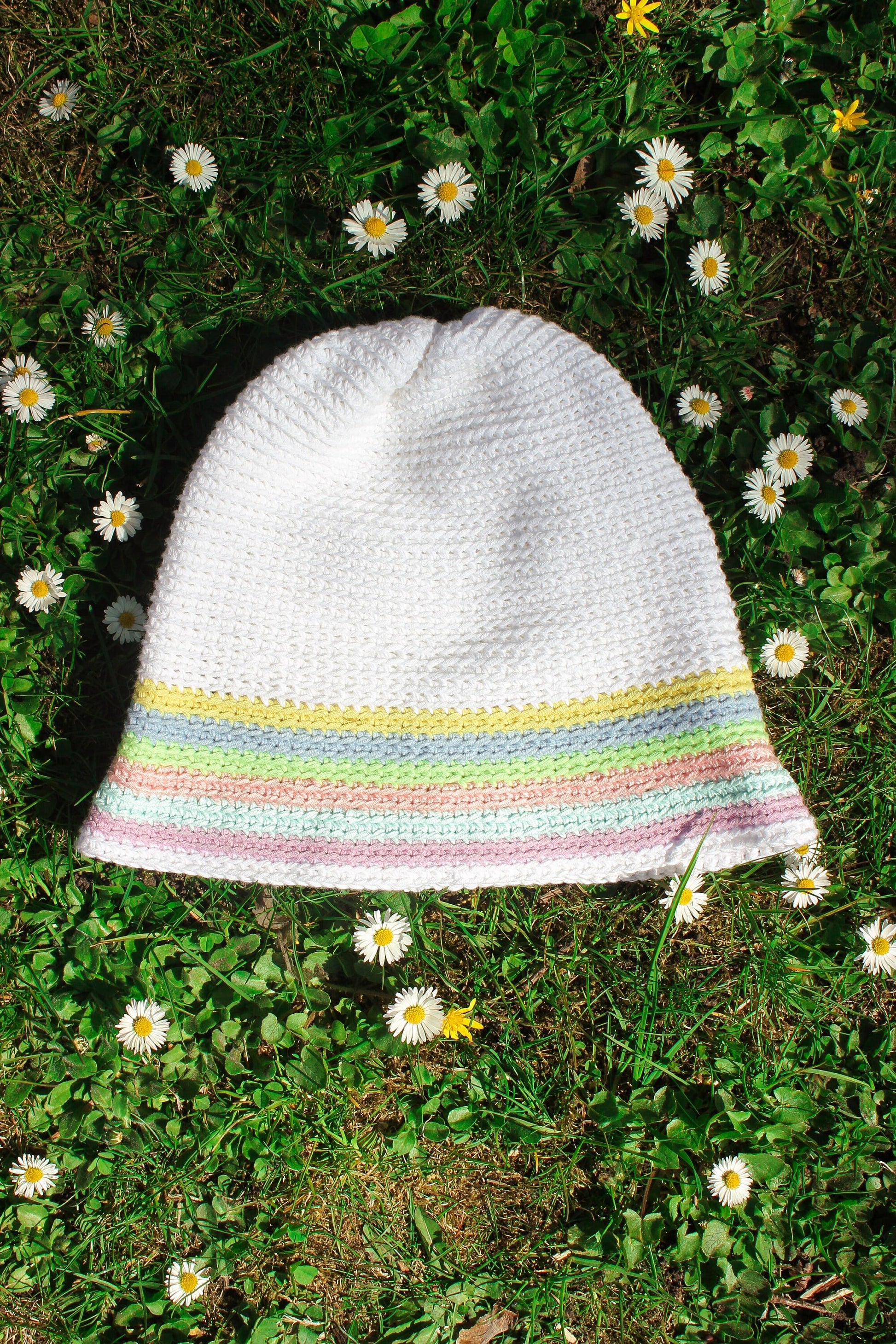 Hand-knitted crochet light multi colored bucket hat