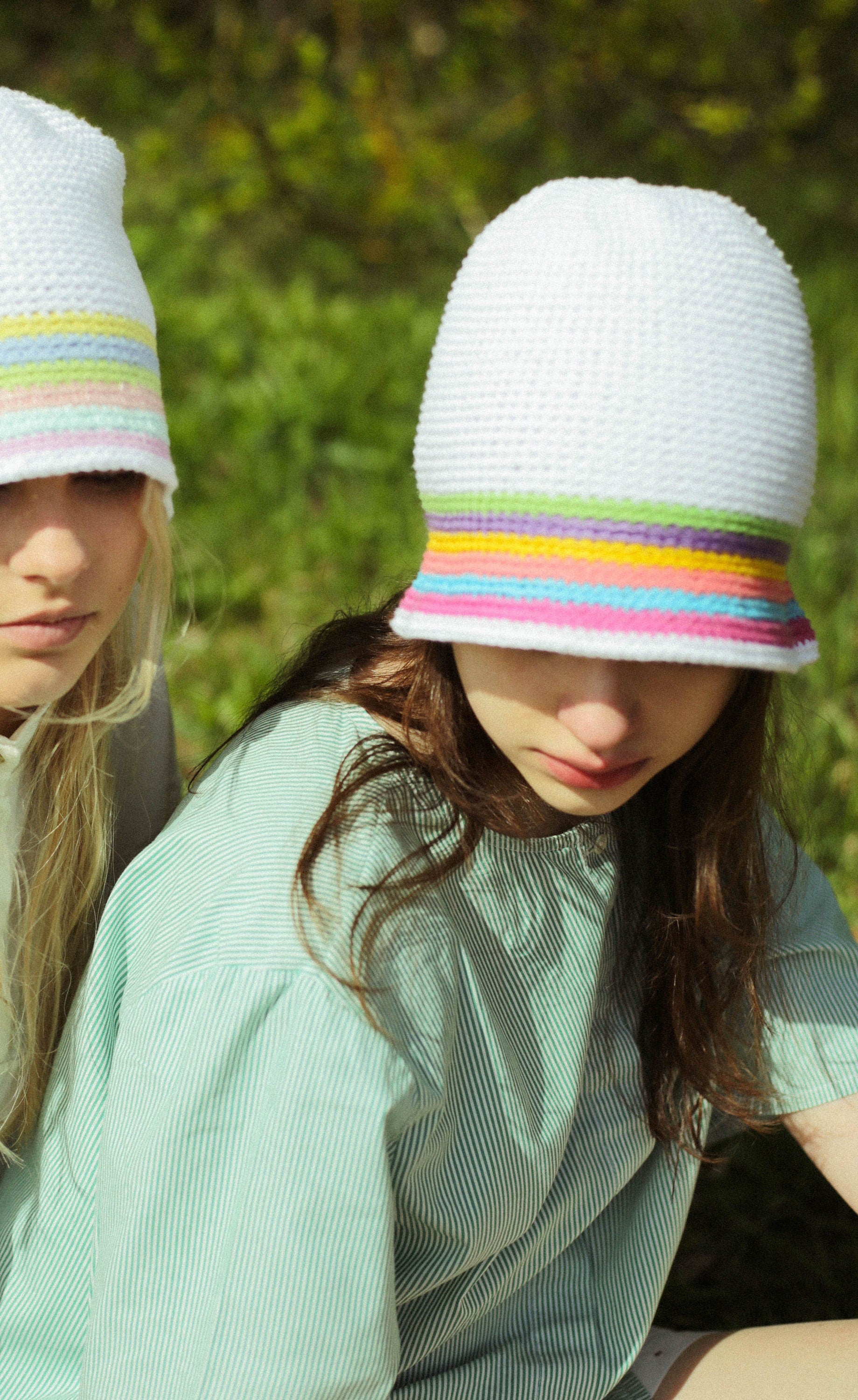 A statement SS22 accessory, this hat is hand- knitted from natural cotton threads to an unstructured bucket silhouette.