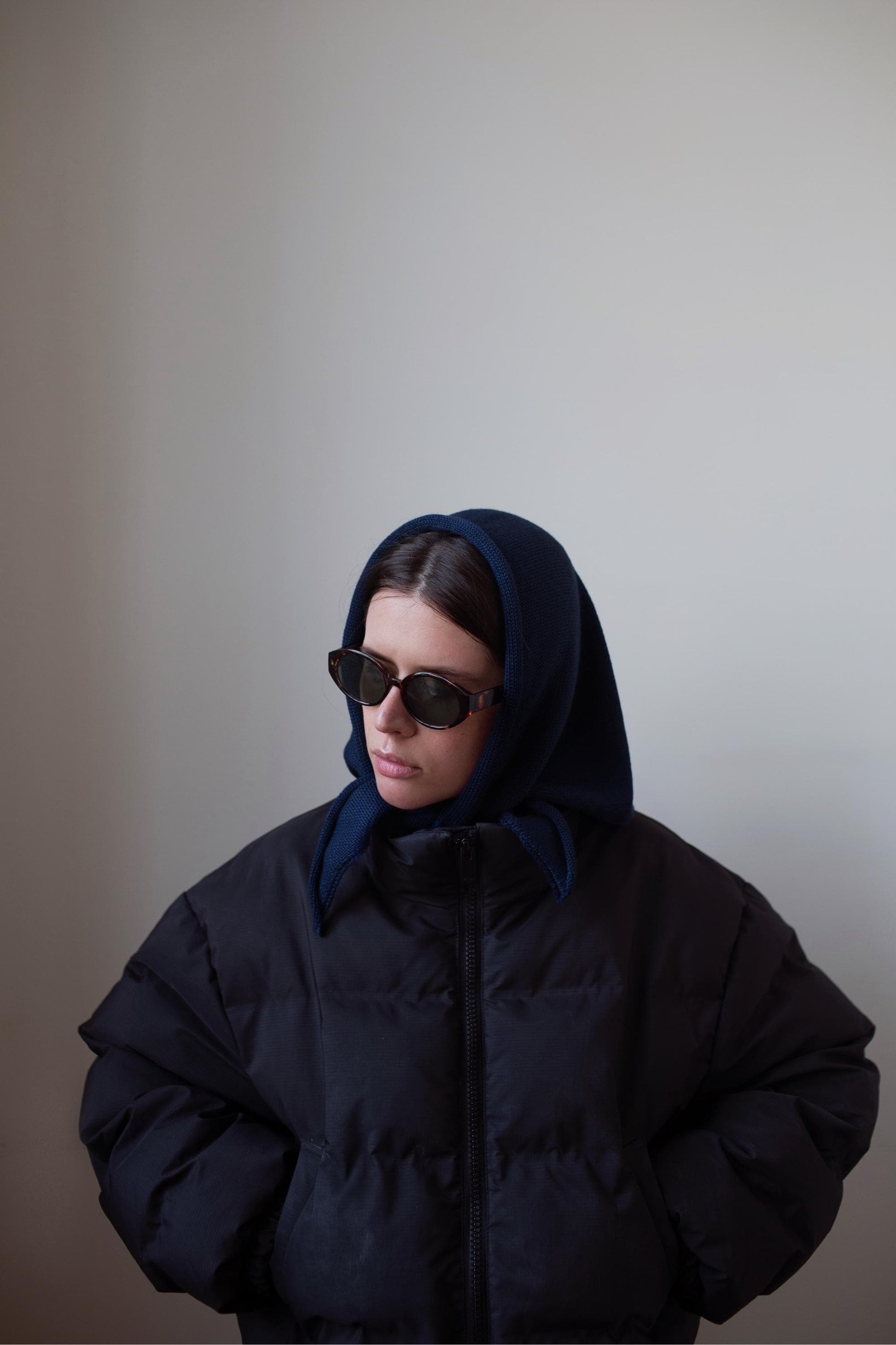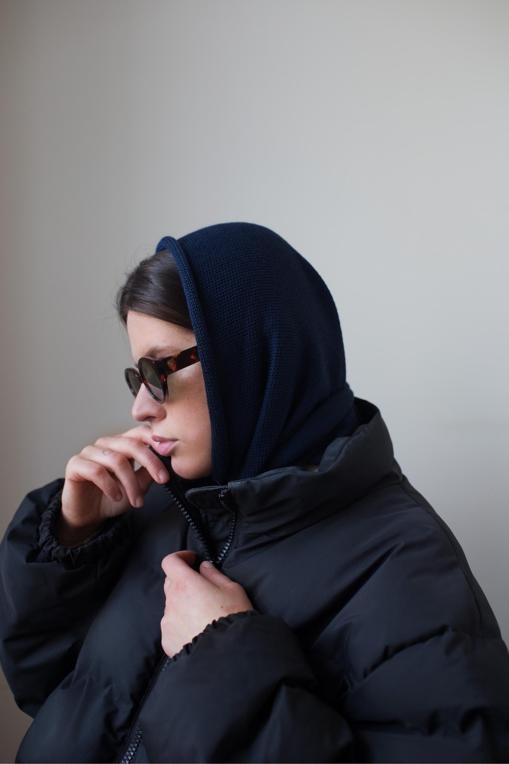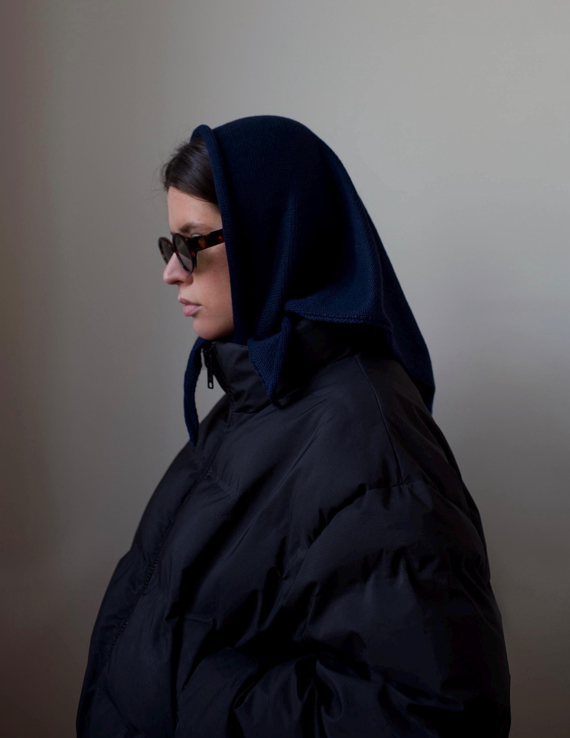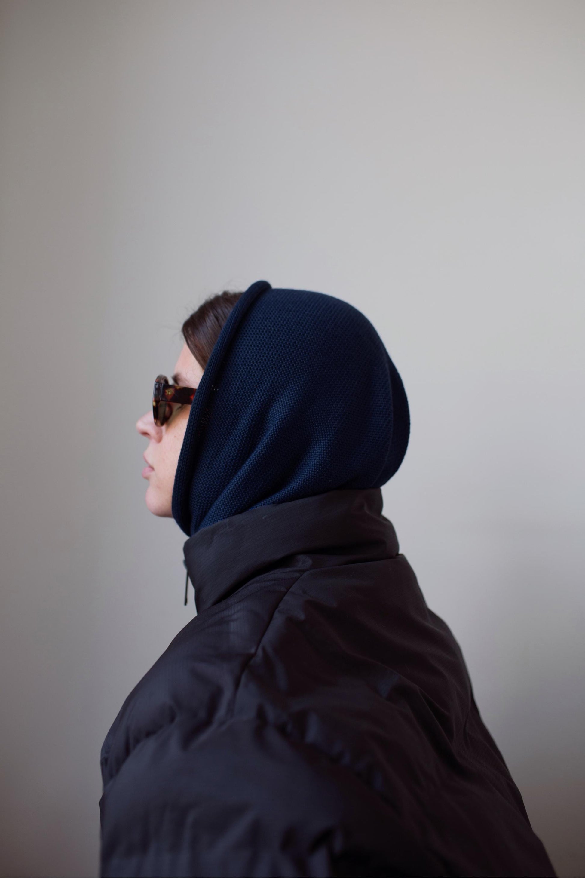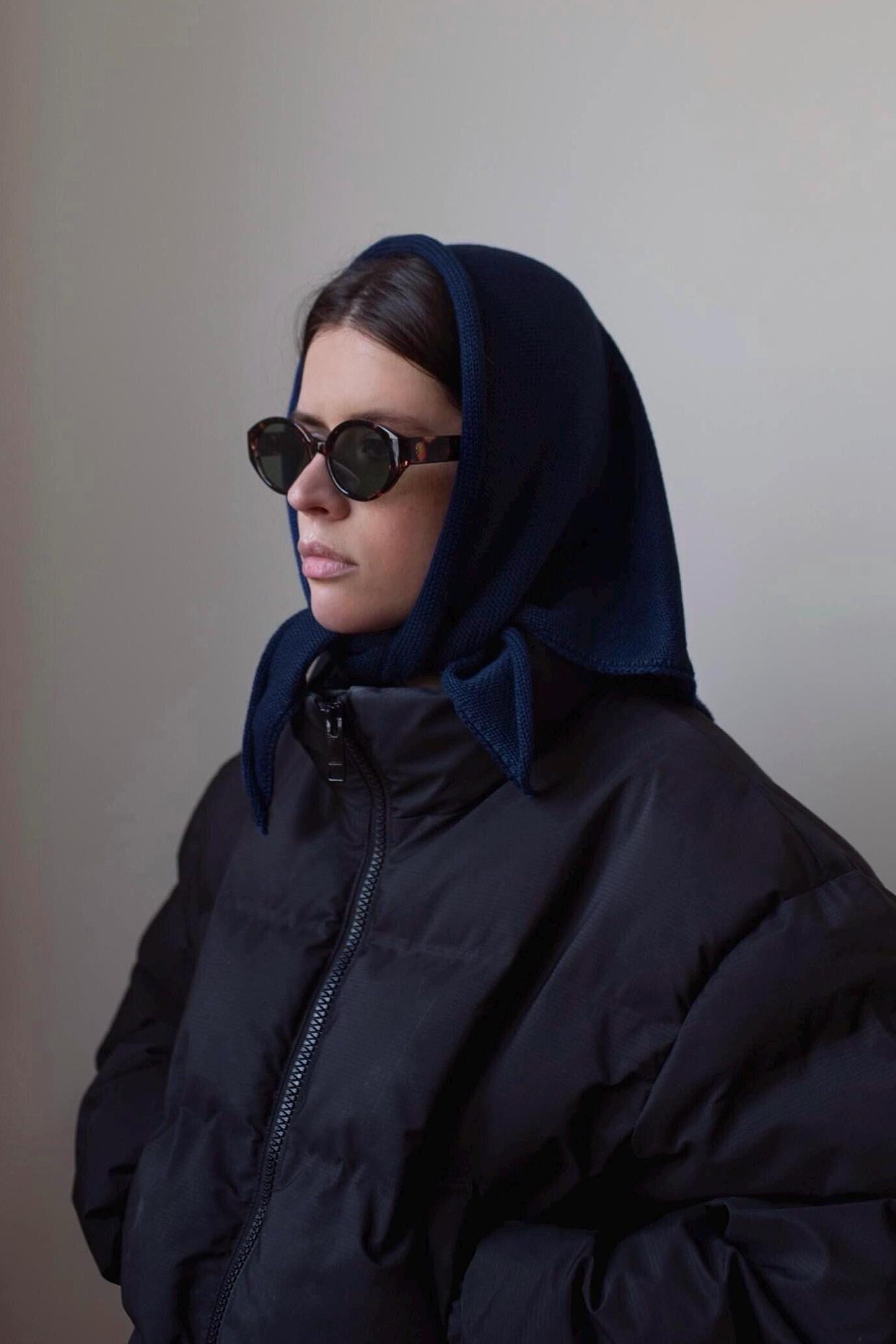 Hand - knitted Headscarf in Navy