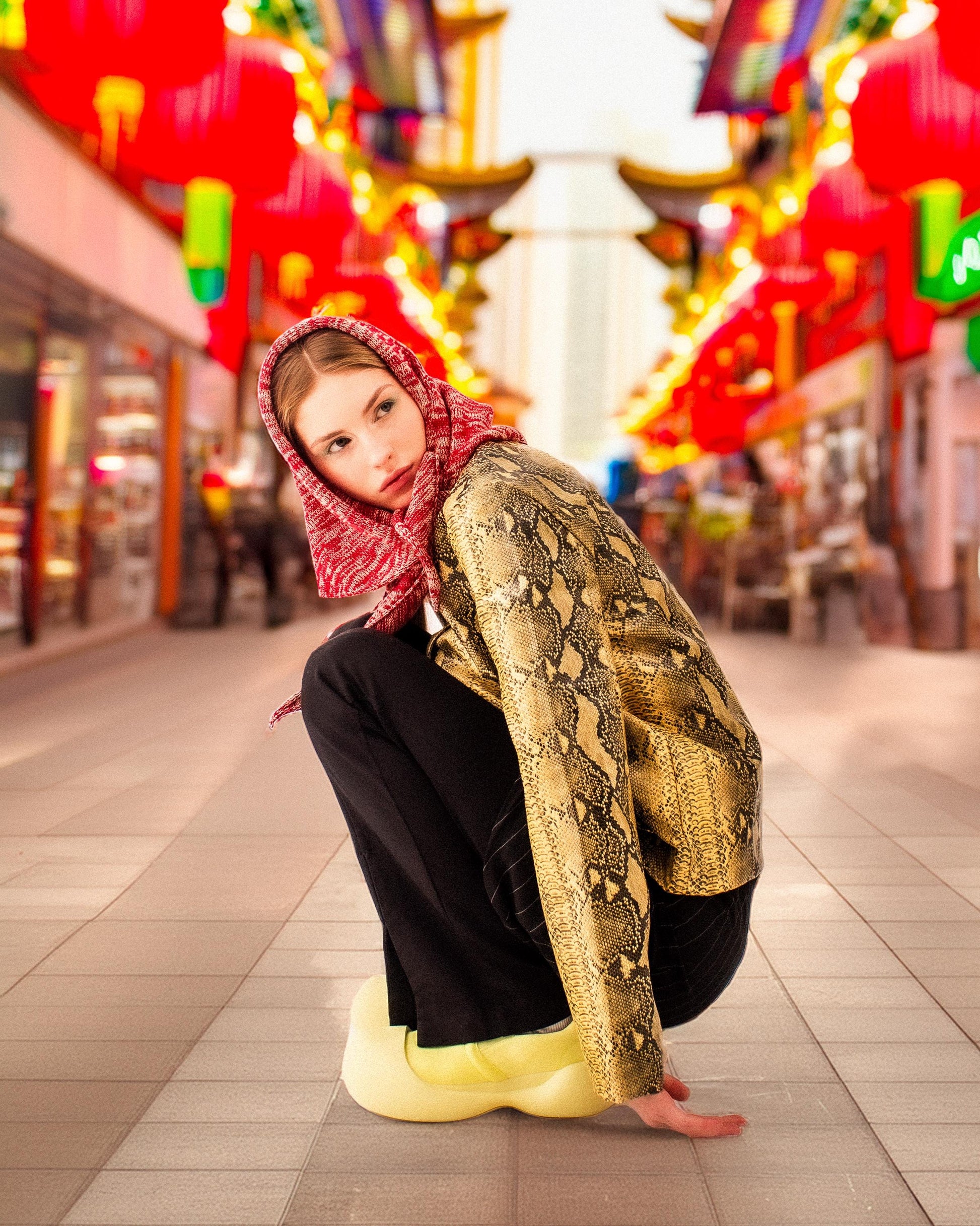 Dive into the softness and cosiness of our new melange headscarf in Red.