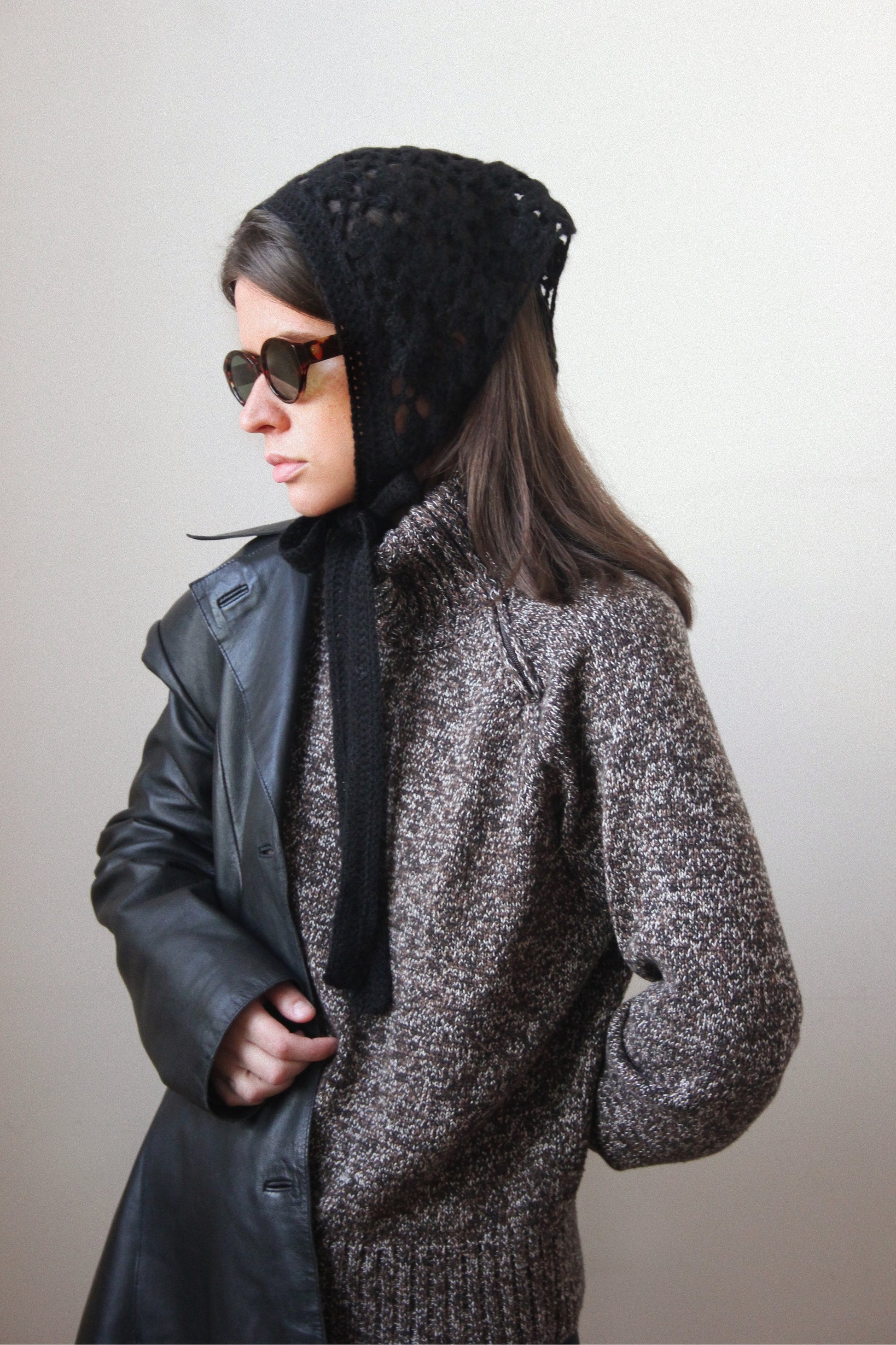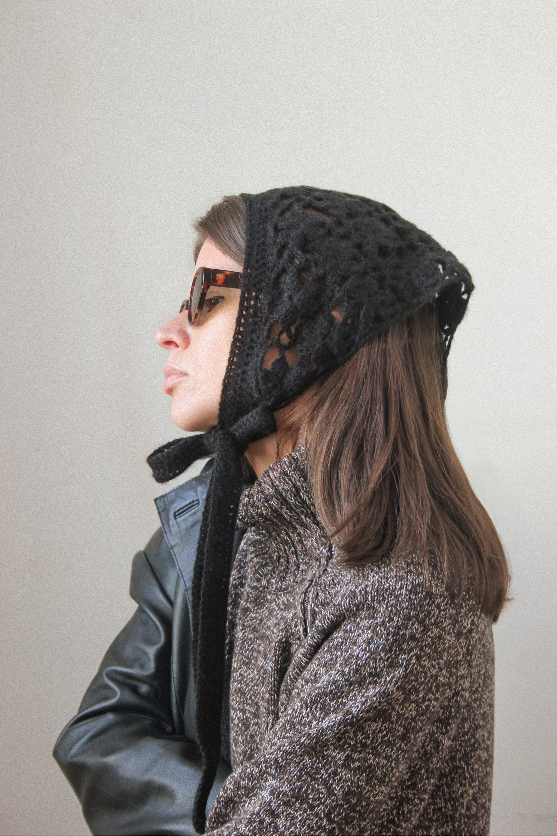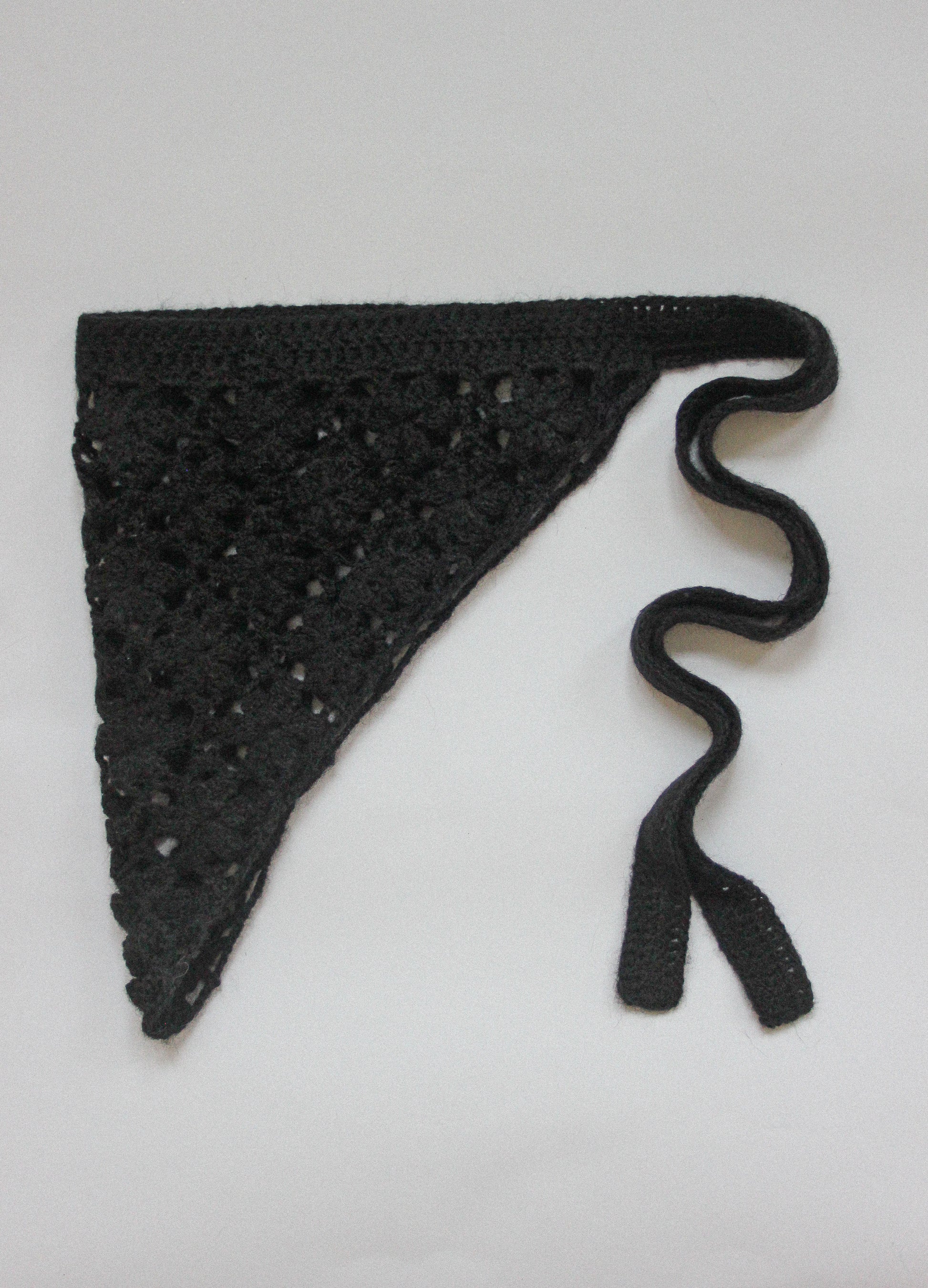 Hand - knitted Mesh Floral Mohair Headscarf in Black