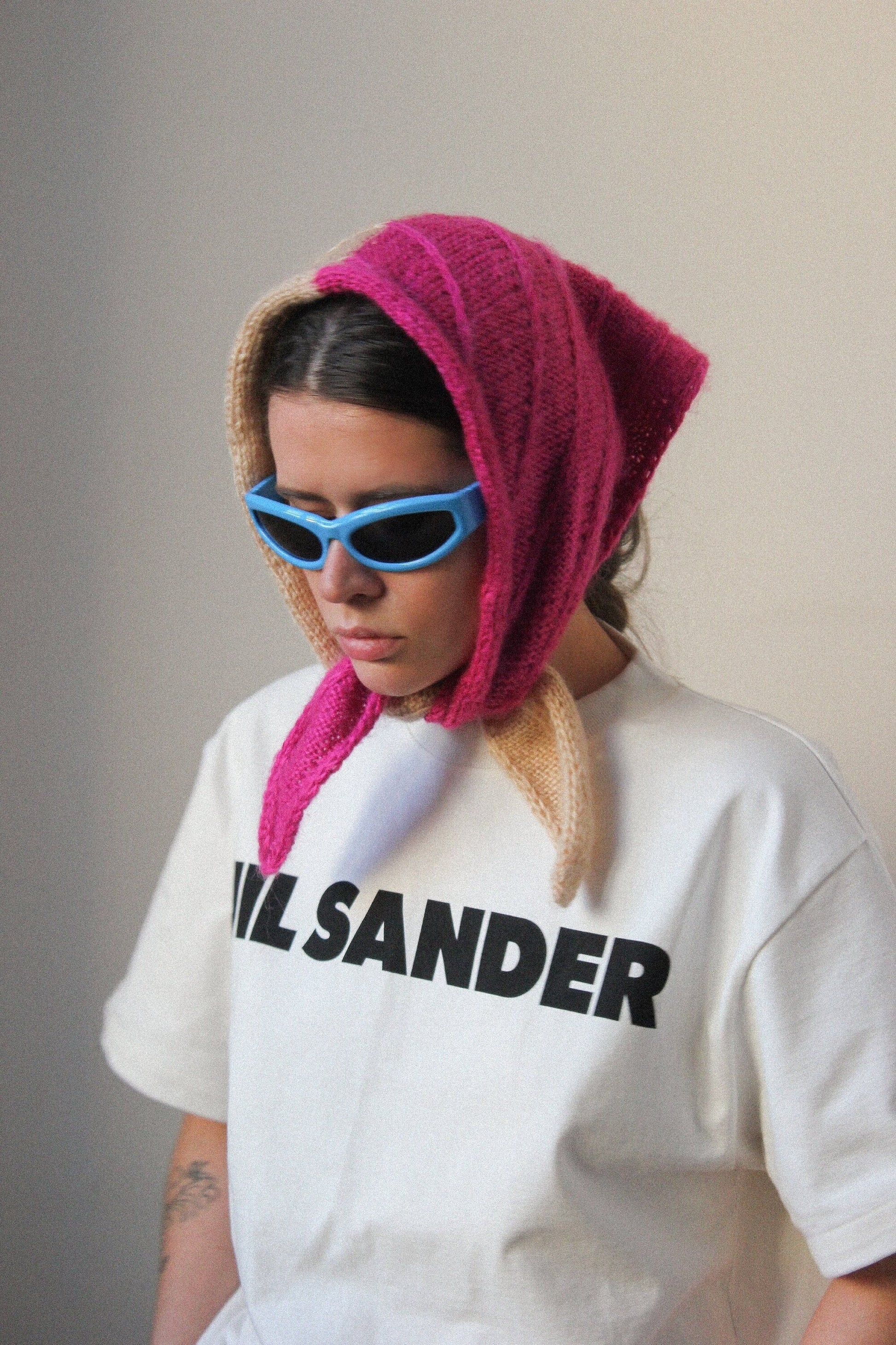 Our hand-knitted headscarf is crafted from premium mohair, known for its airy softness and subtle sheen. Lightweight yet gently warming, it brings effortless elegance and texture to your fall–winter looks.
