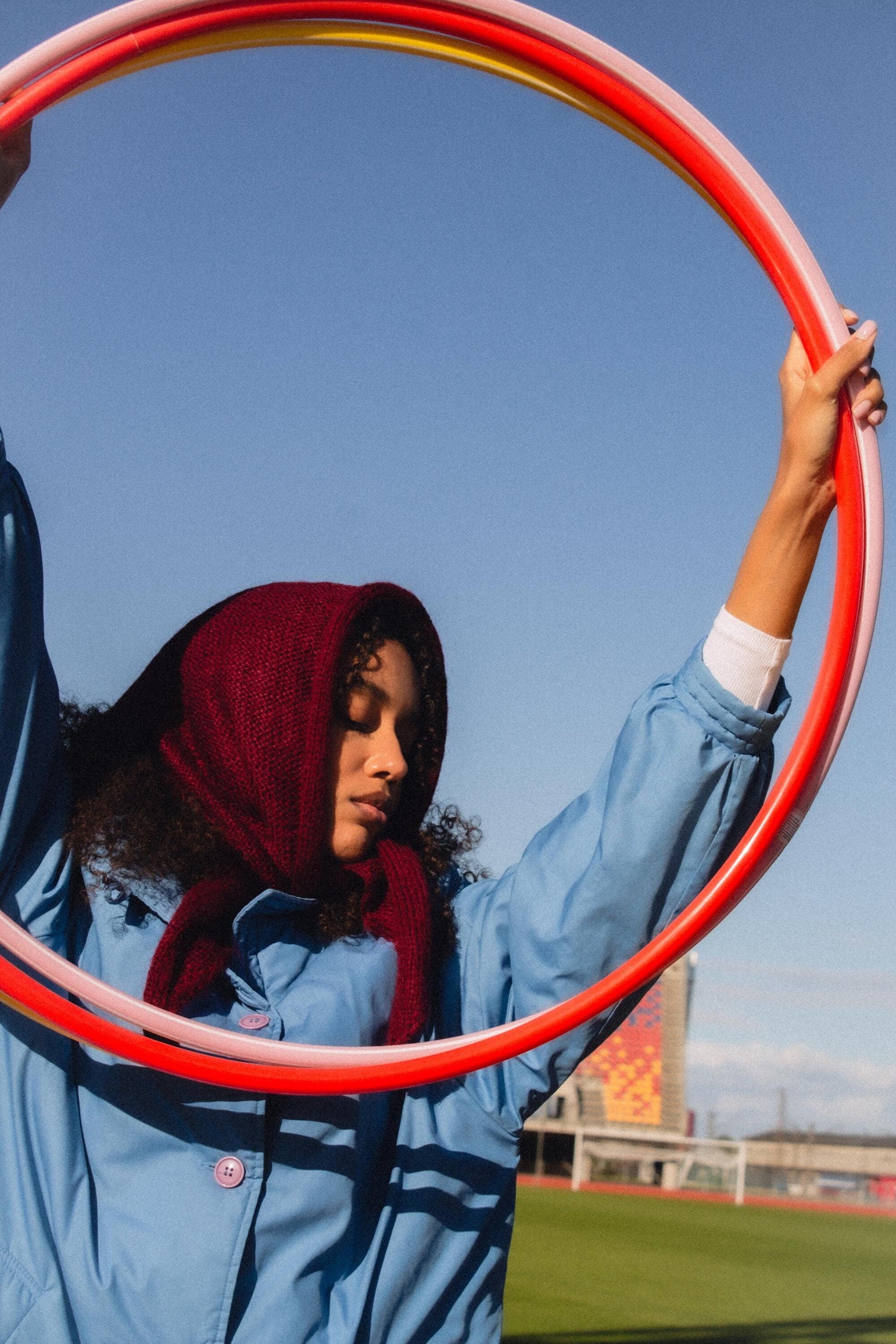 Dive into the softness and cosiness of our new soft fluffy mohair headscarf in Burgundy.