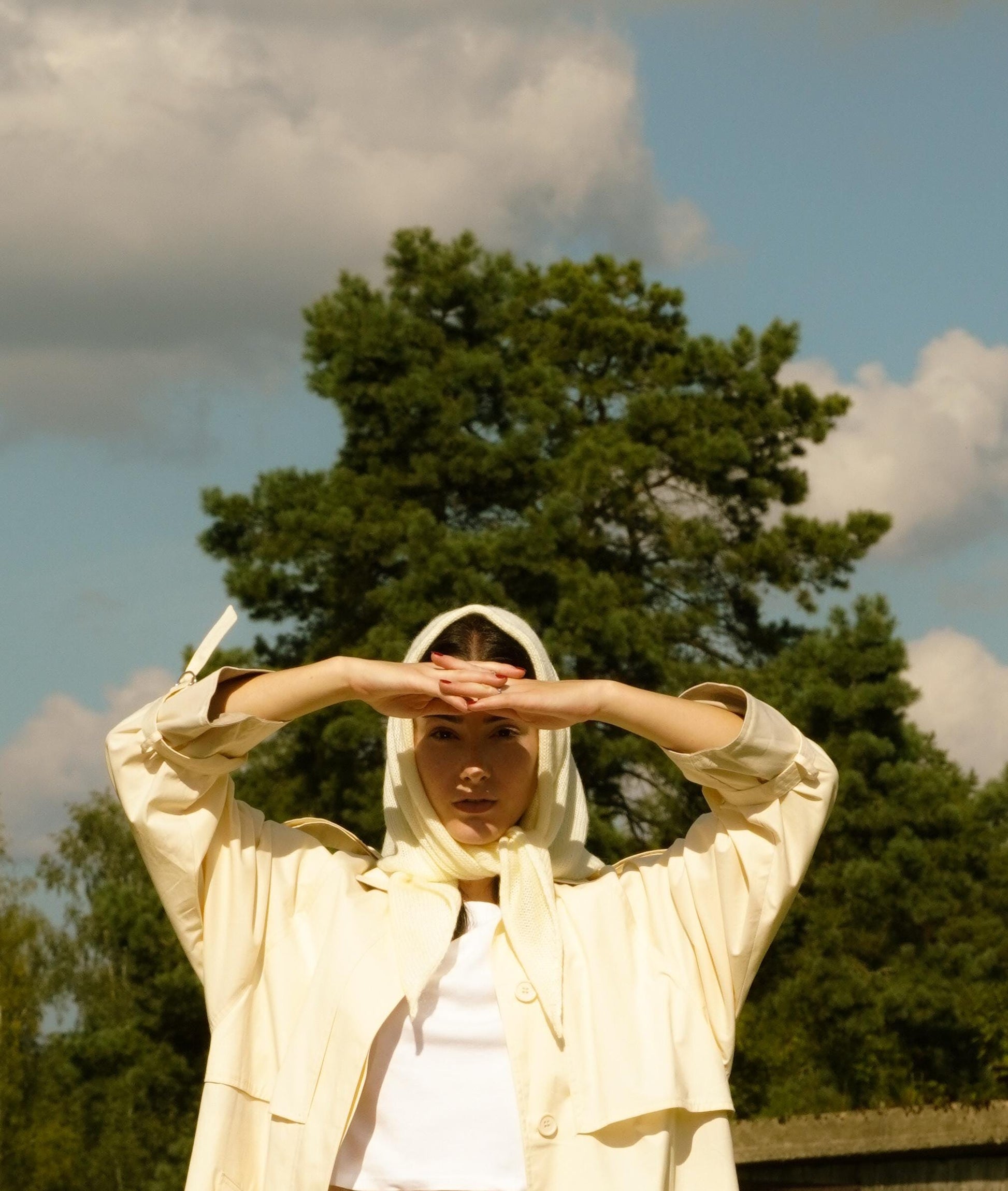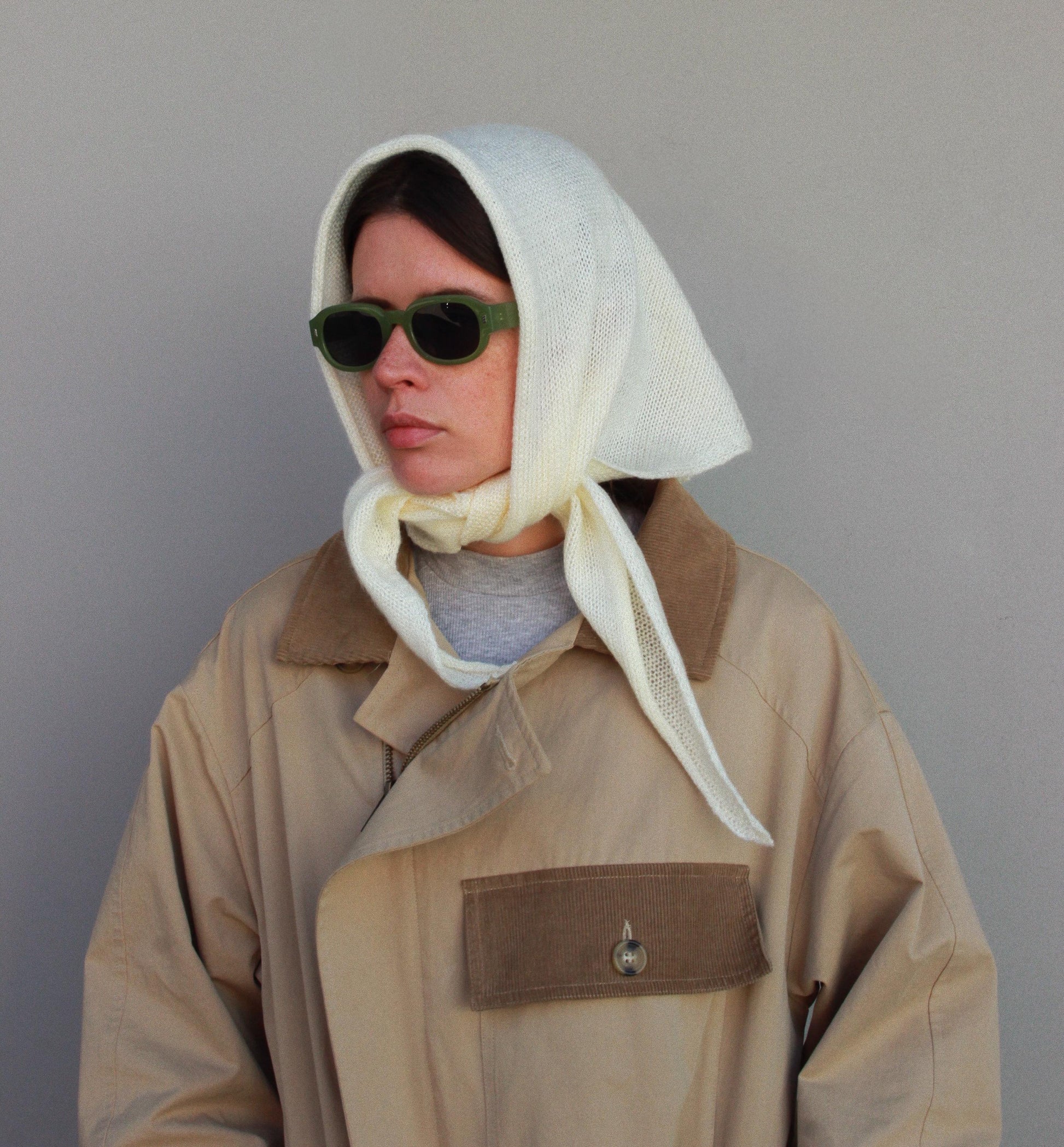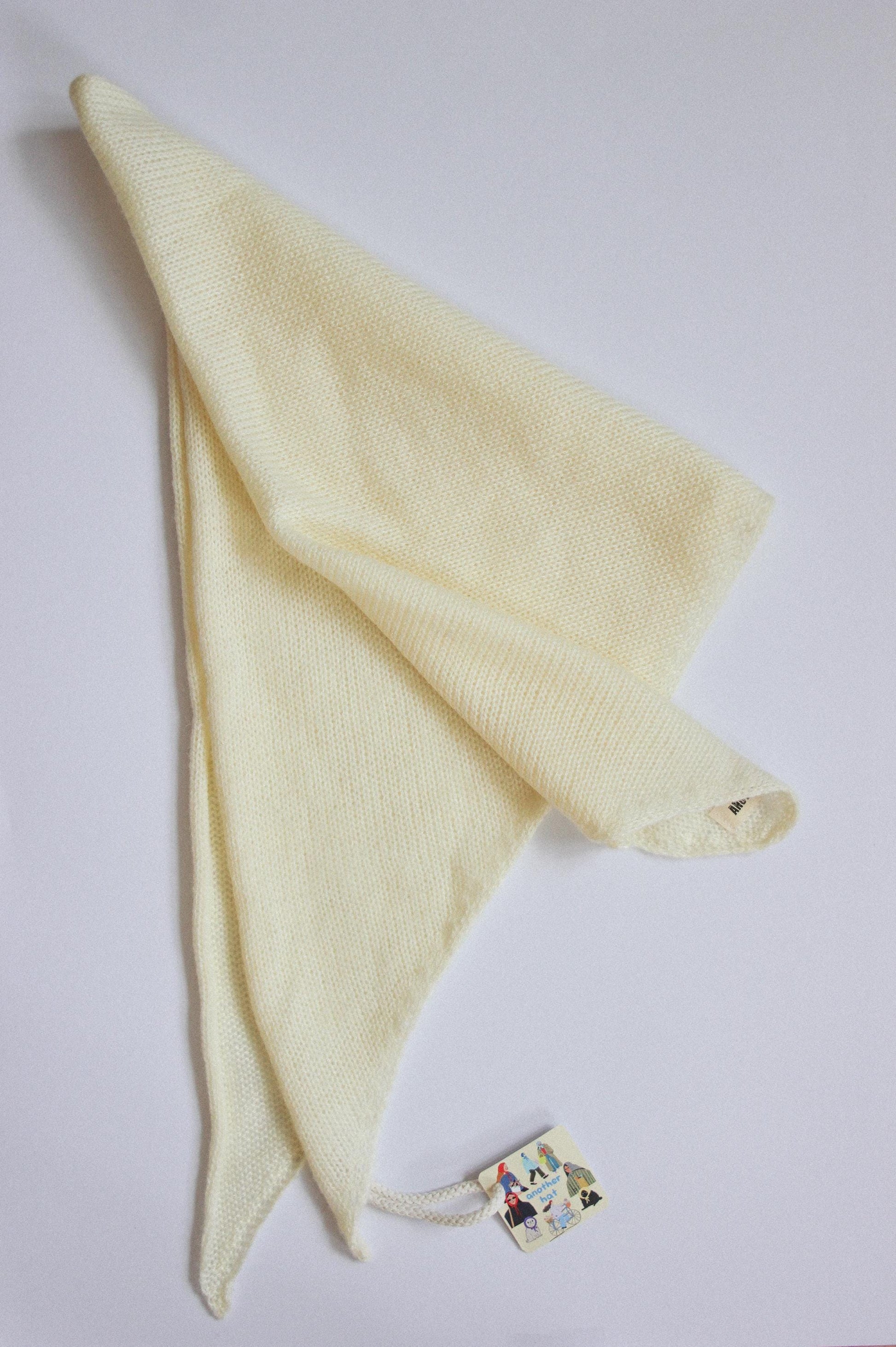 Hand - knitted Mohair Headscarf in Buttermilk Yellow