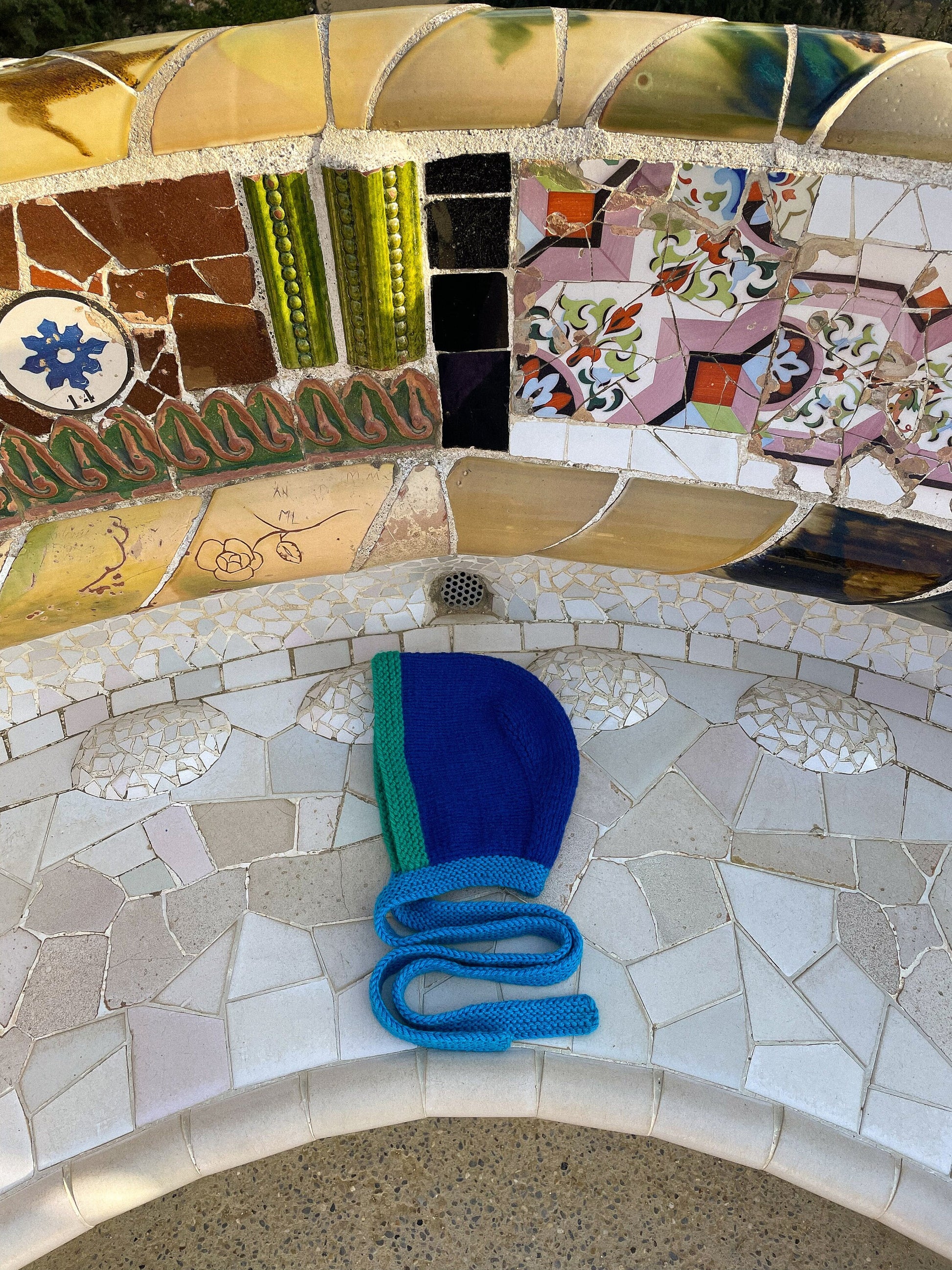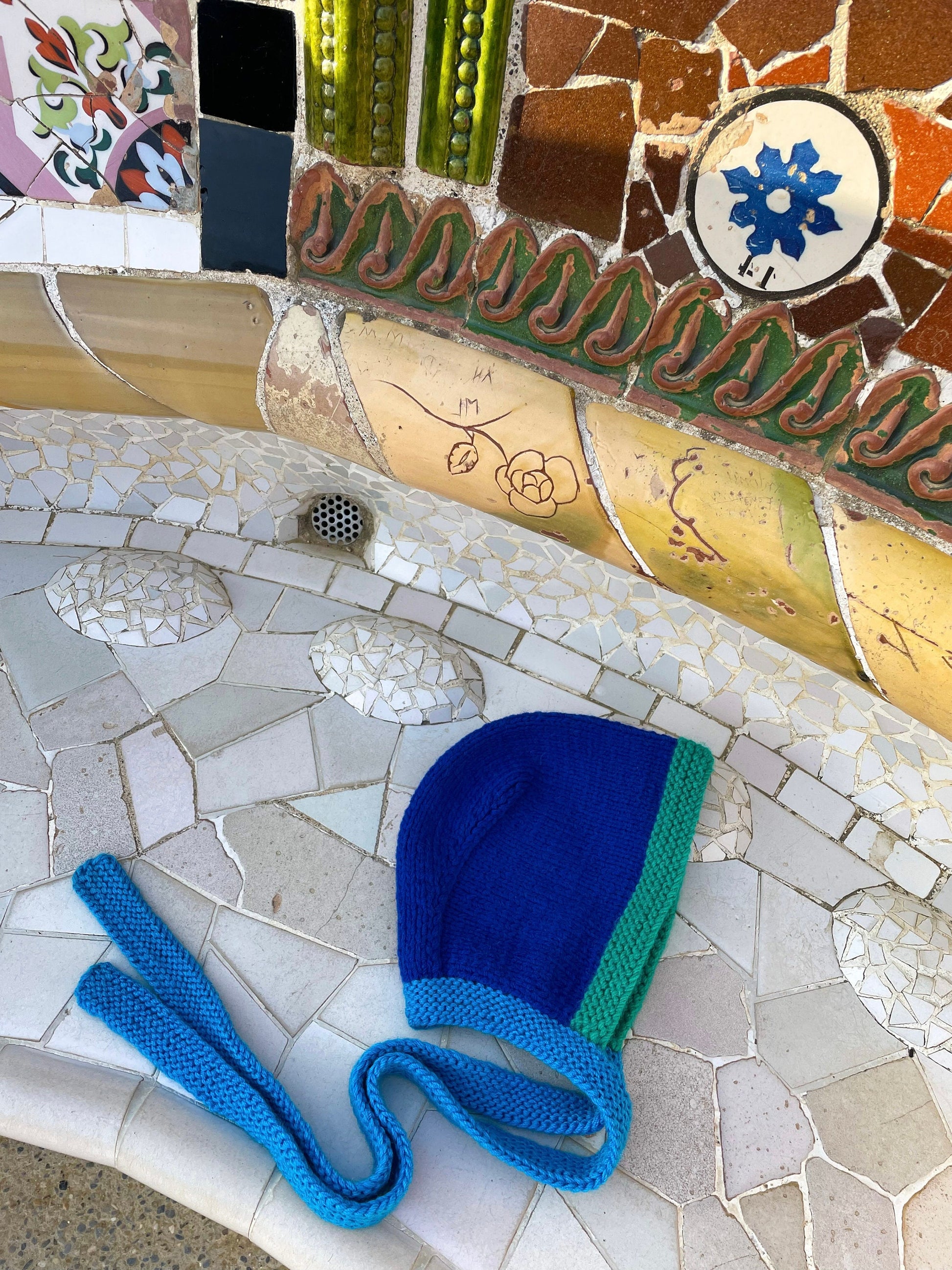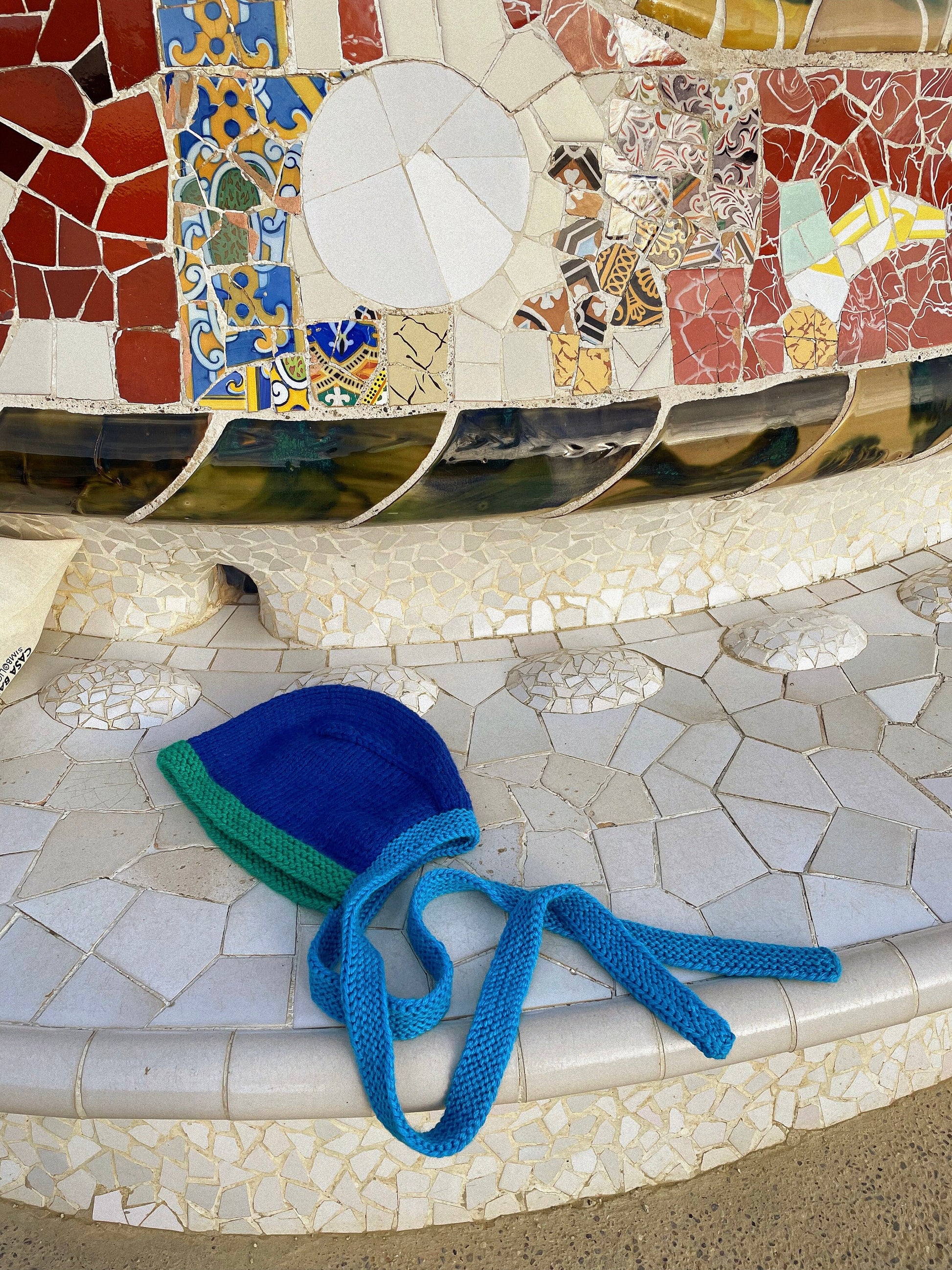 New kid on the block: Hand - Knitted Multi Blue Chunky Bow Tie Bonnet Hat 🍊🫐