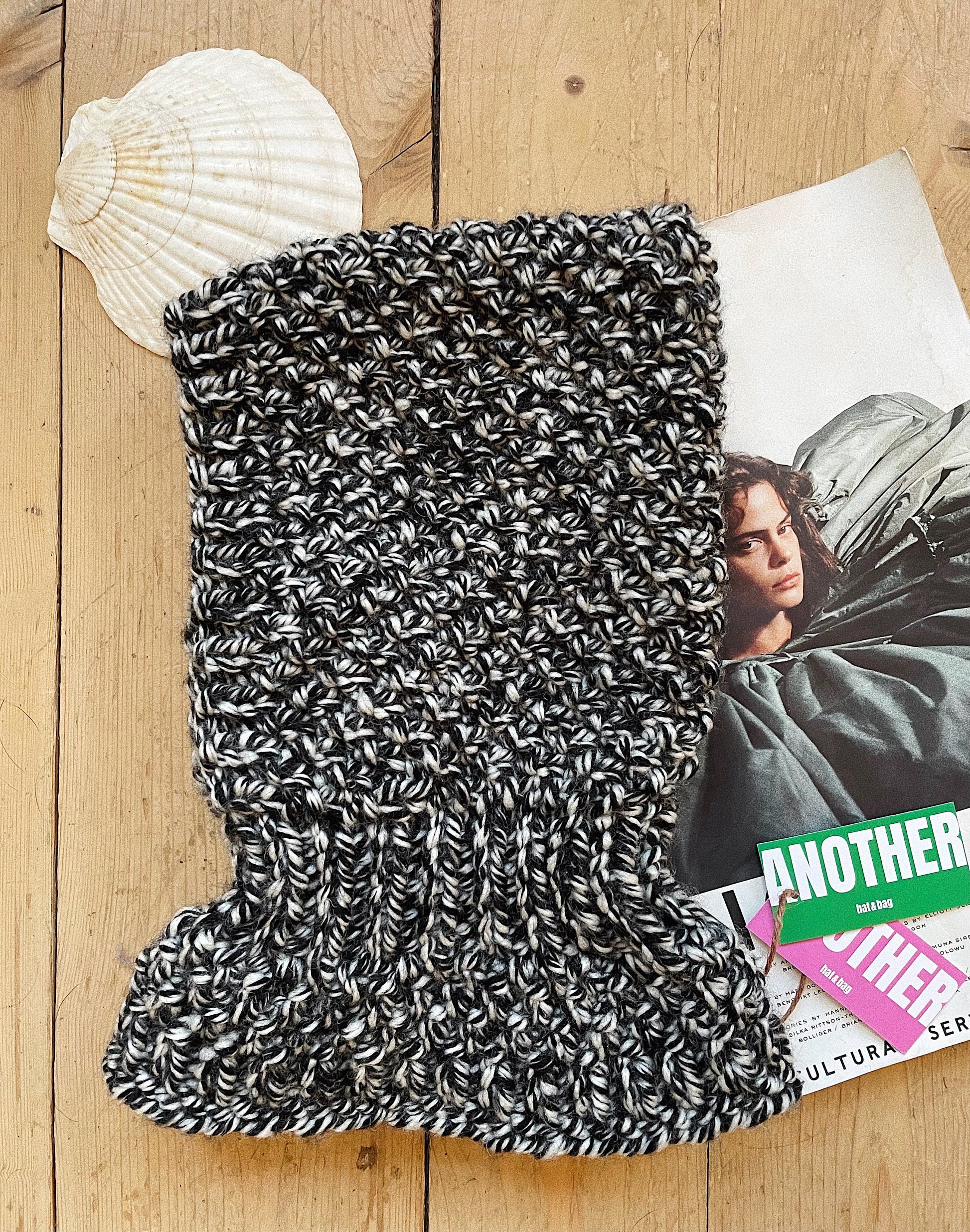 Chunky Woolen Balaclava in Black & White Melange