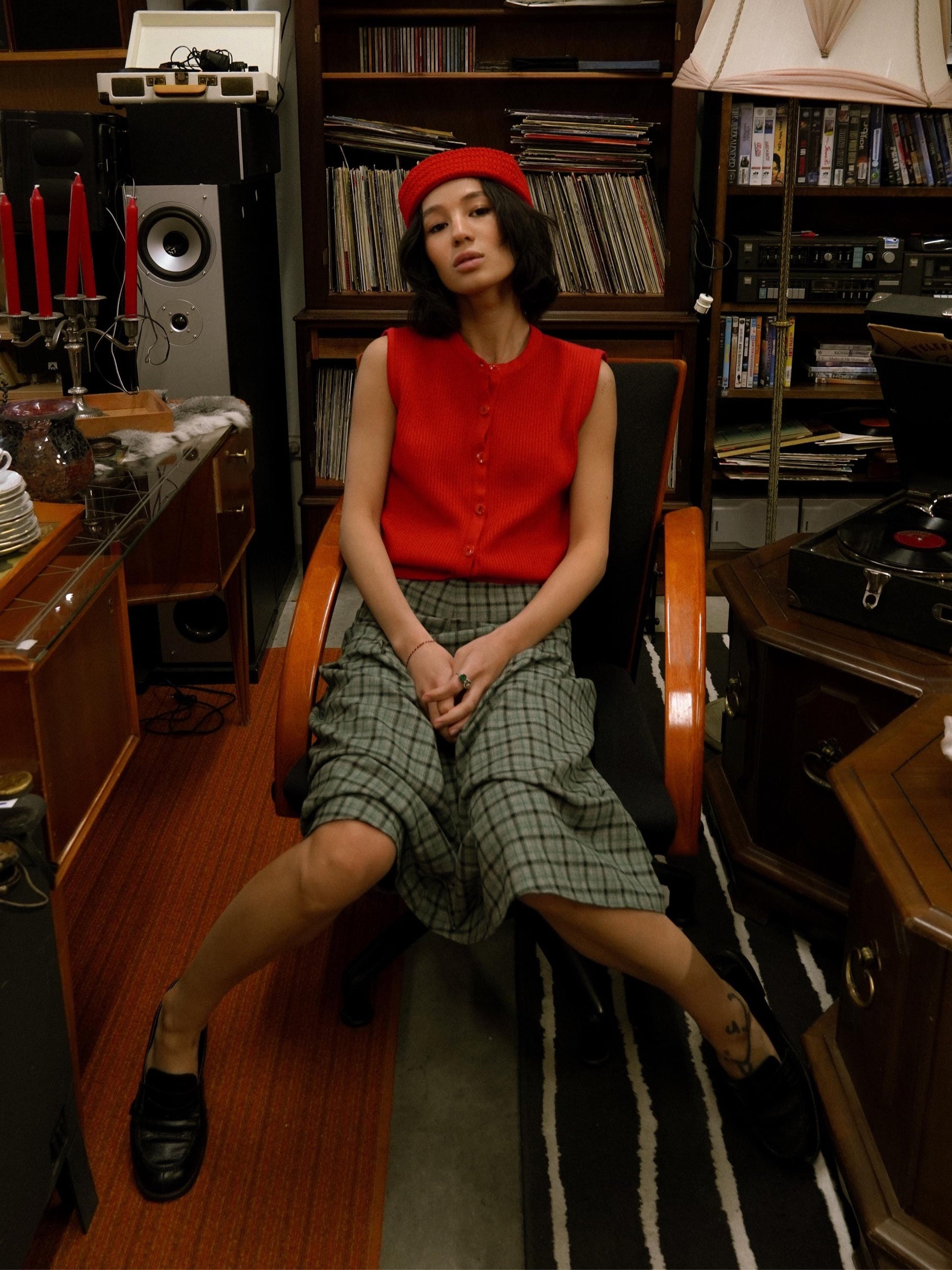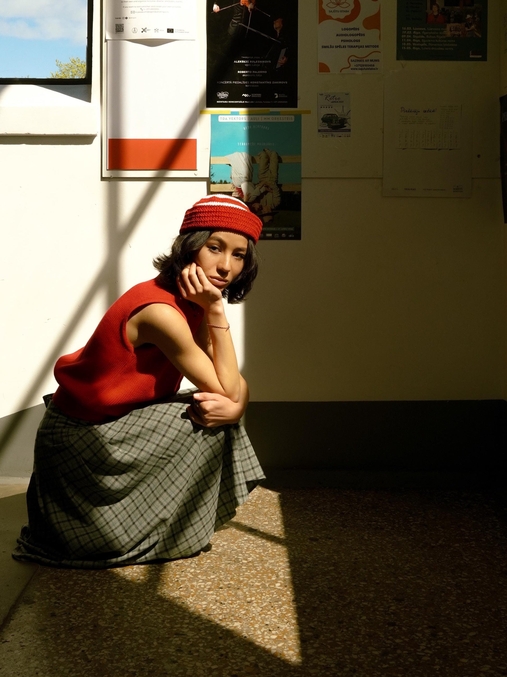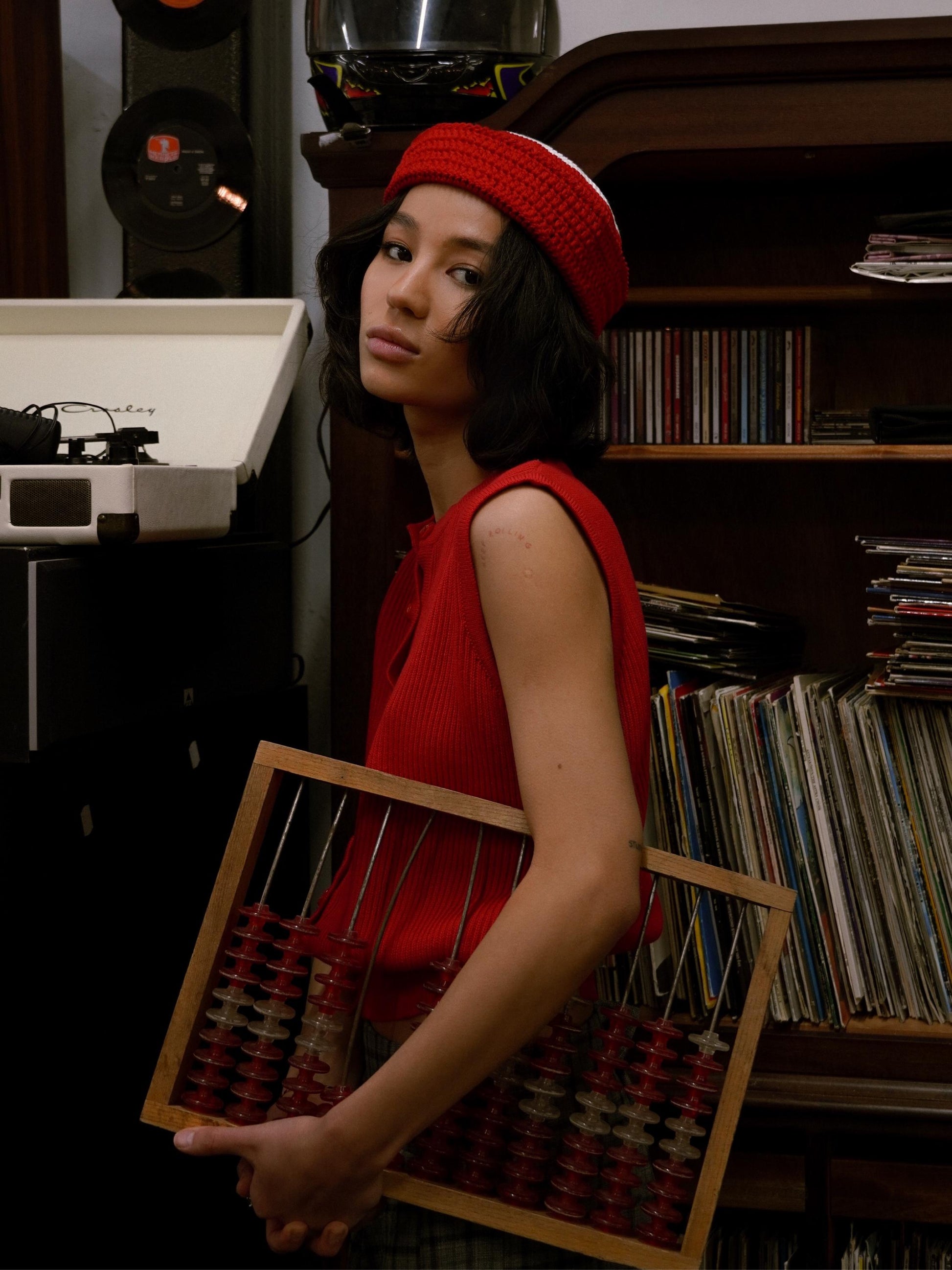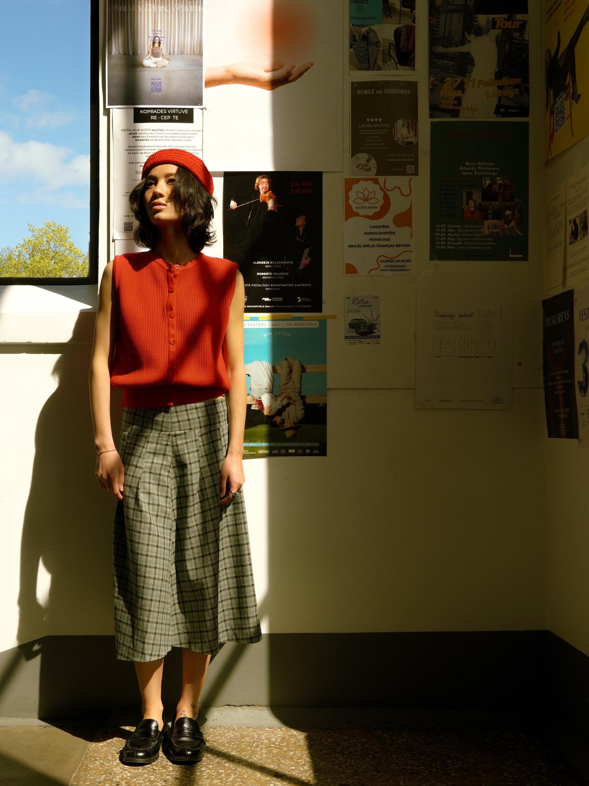 New kid on the block: a knitted vest crafted from Premium Cotton yarn and finished with whimsical button arrangements.