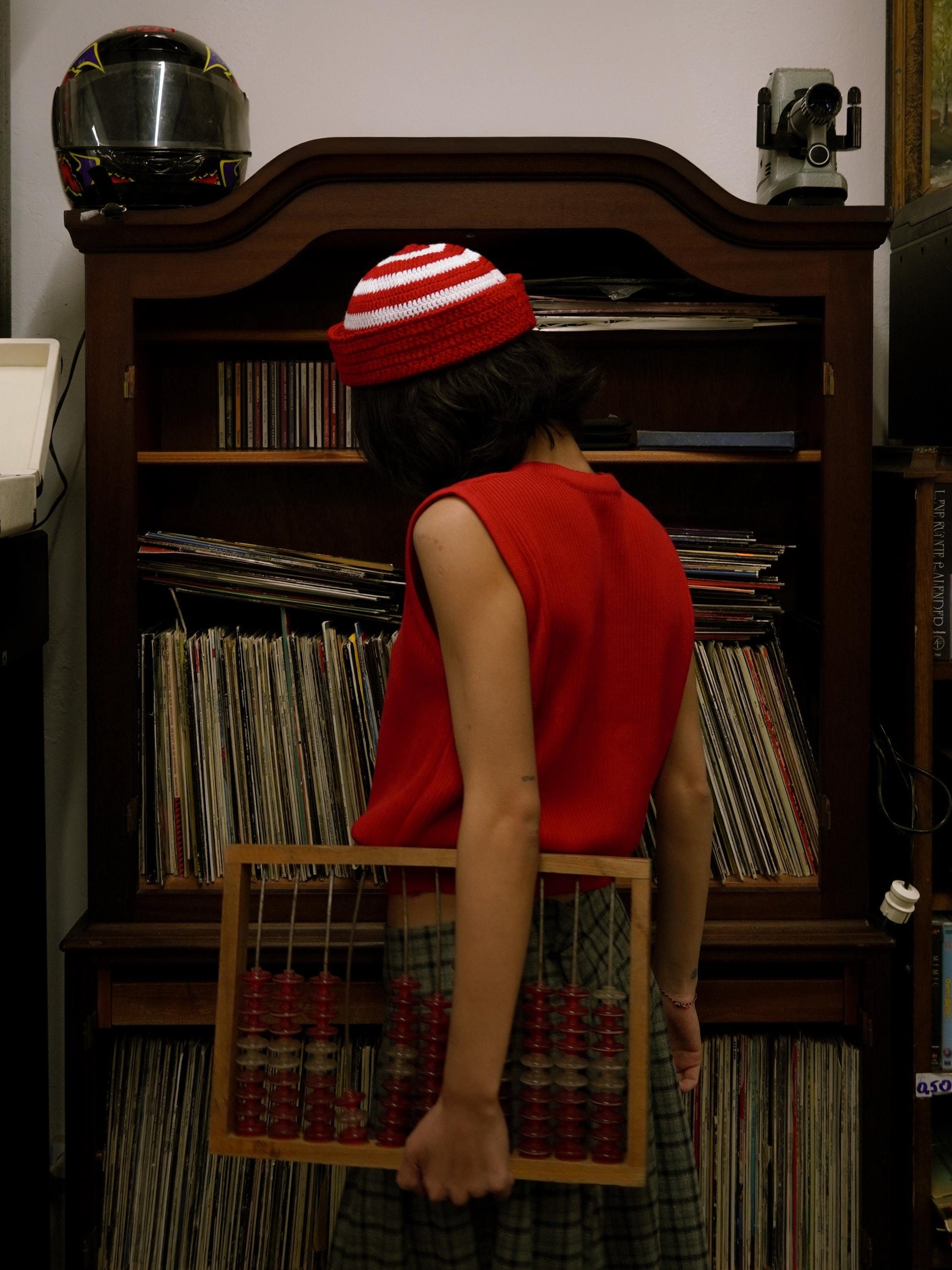 New kid on the block: a knitted vest crafted from Premium Cotton yarn and finished with whimsical button arrangements.