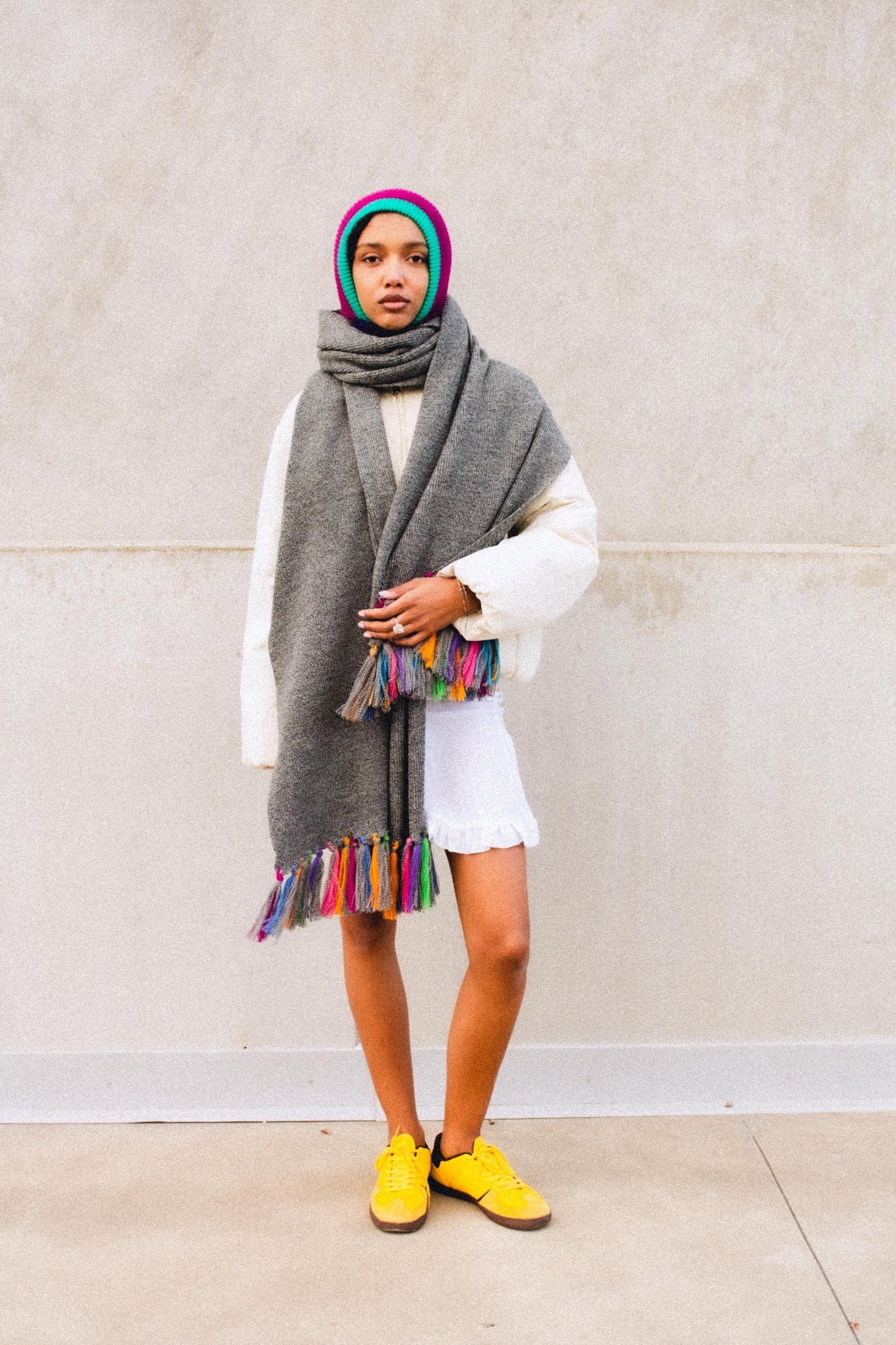 Its generous size and volume offer warmth and comfort, while the bright tassels bring a playful, dynamic touch to your look. These versatile scarf pairs effortlessly with hats in nearly any color, highlighting your unique style. More than just a scarf, it’s a bold expression of your taste and confidence.