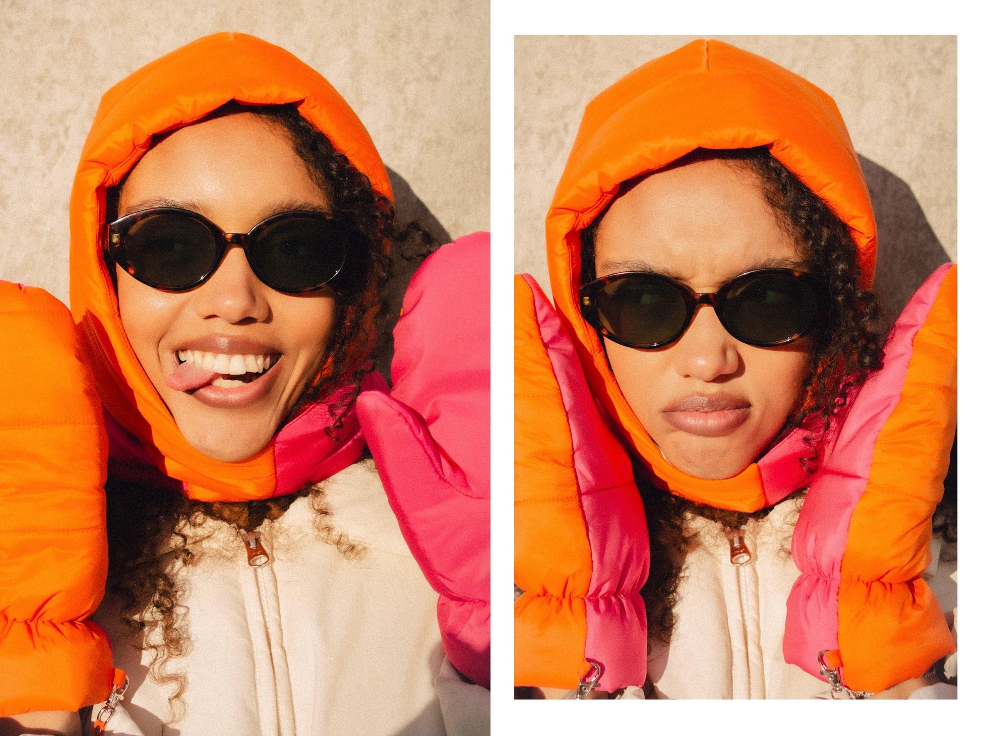 Clouds of Cotton-Candy – The Pillow Headscarf - Balaclava in Orange & Hot Pink.