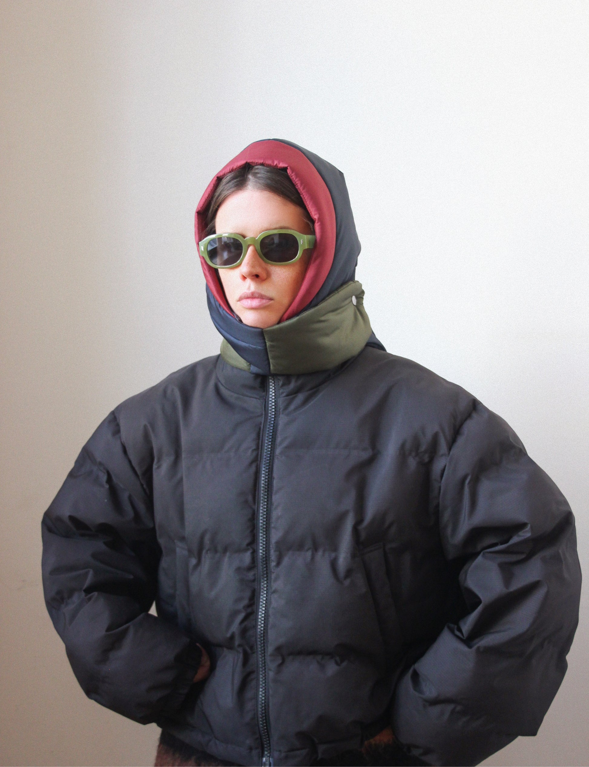Multi Pillow Puffer Headscarf in Navy, Burgundy & Khaki