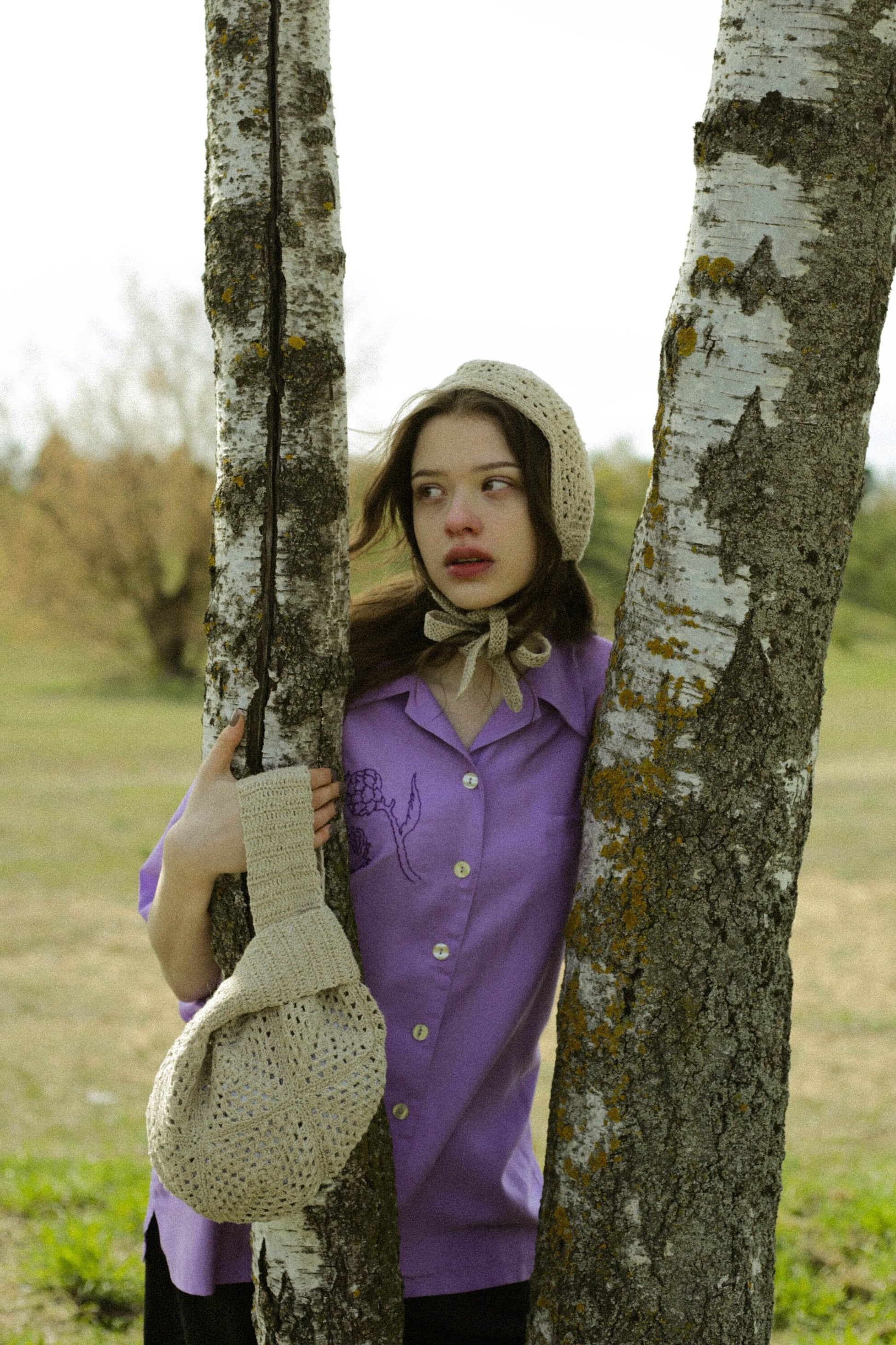 Patchwork crochet cotton hat. Adorned with small floral crochet squares for a handcrafted look.