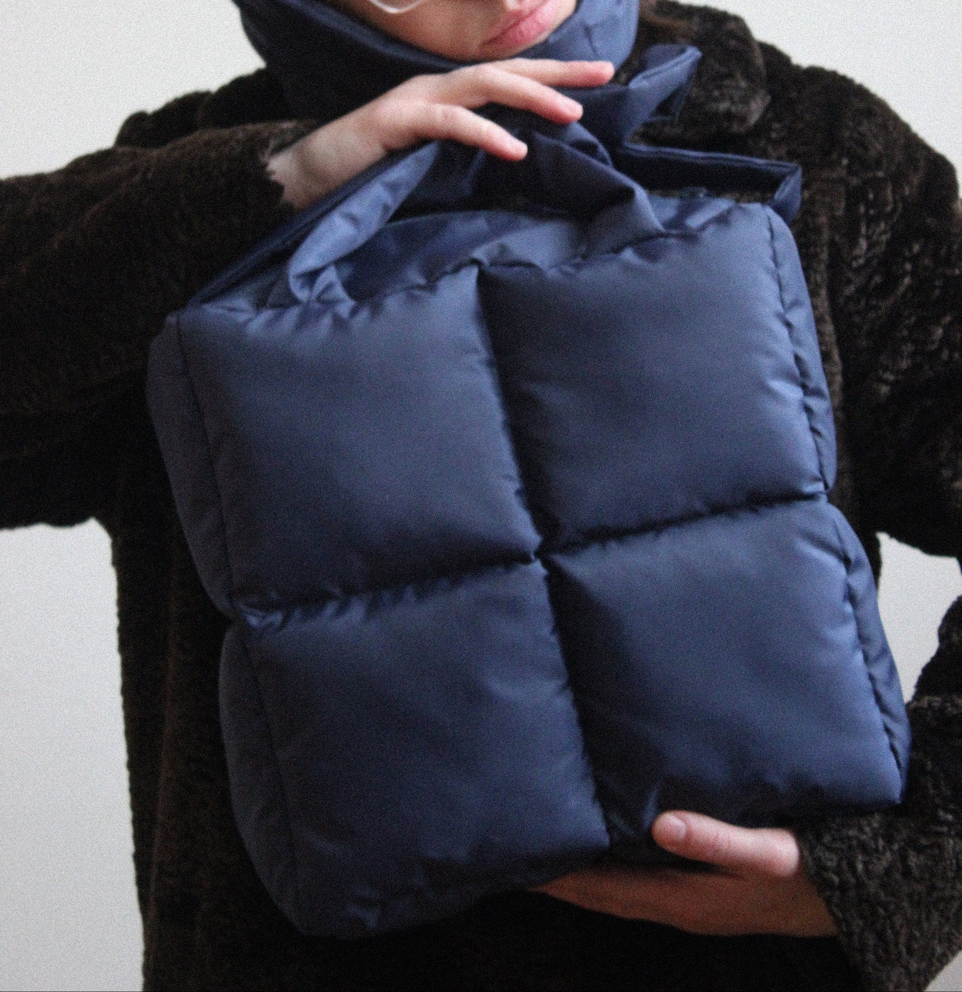 The most huggable piece in your wardrobe, crafted from waterproof raincoat fabric with a soft cotton lining. Combining warmth, softness, and practicality, this bag is perfect for the colder months. It features three discreet pockets and convenient handles, offering effortless style and functionality.