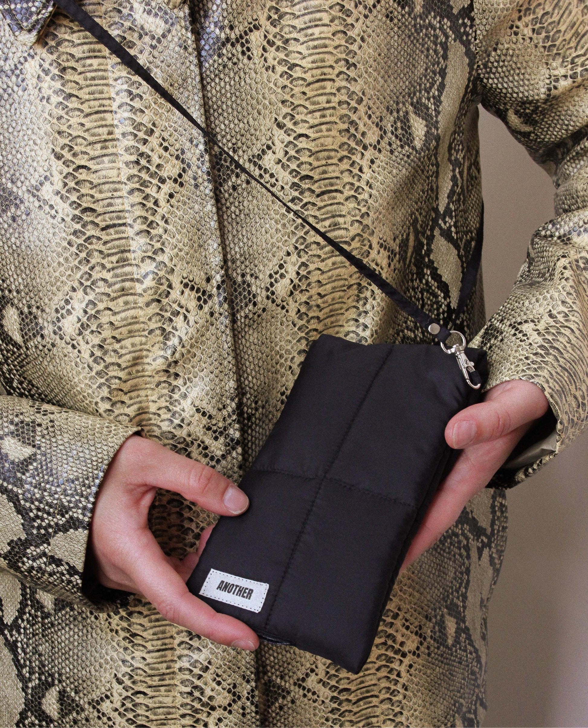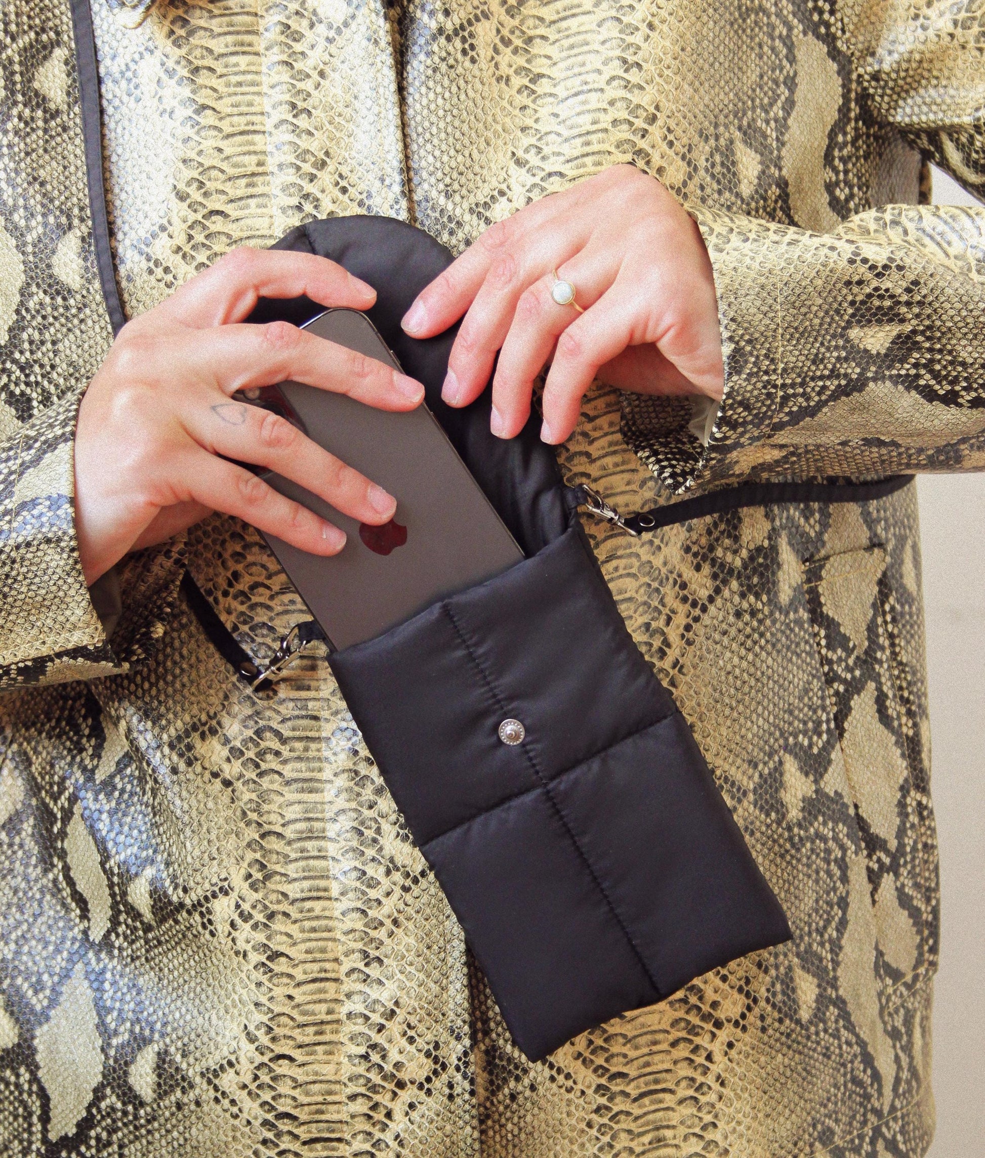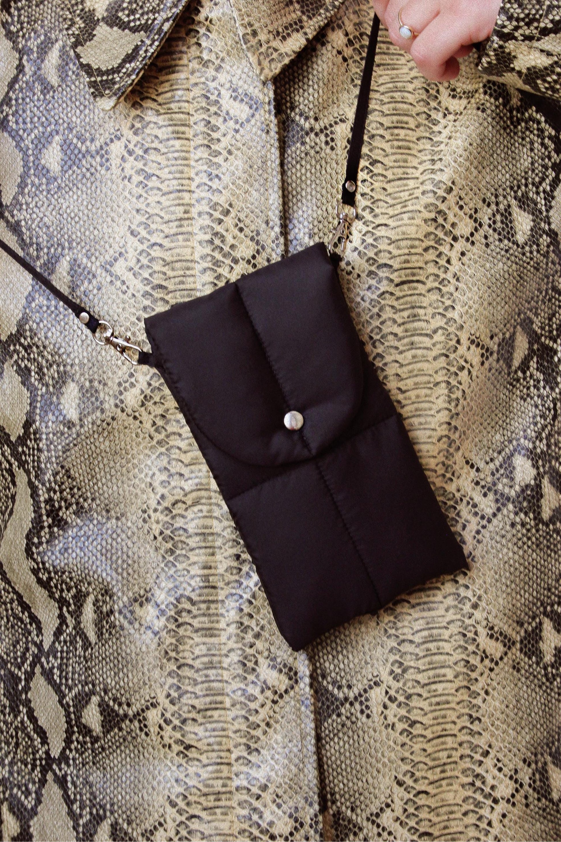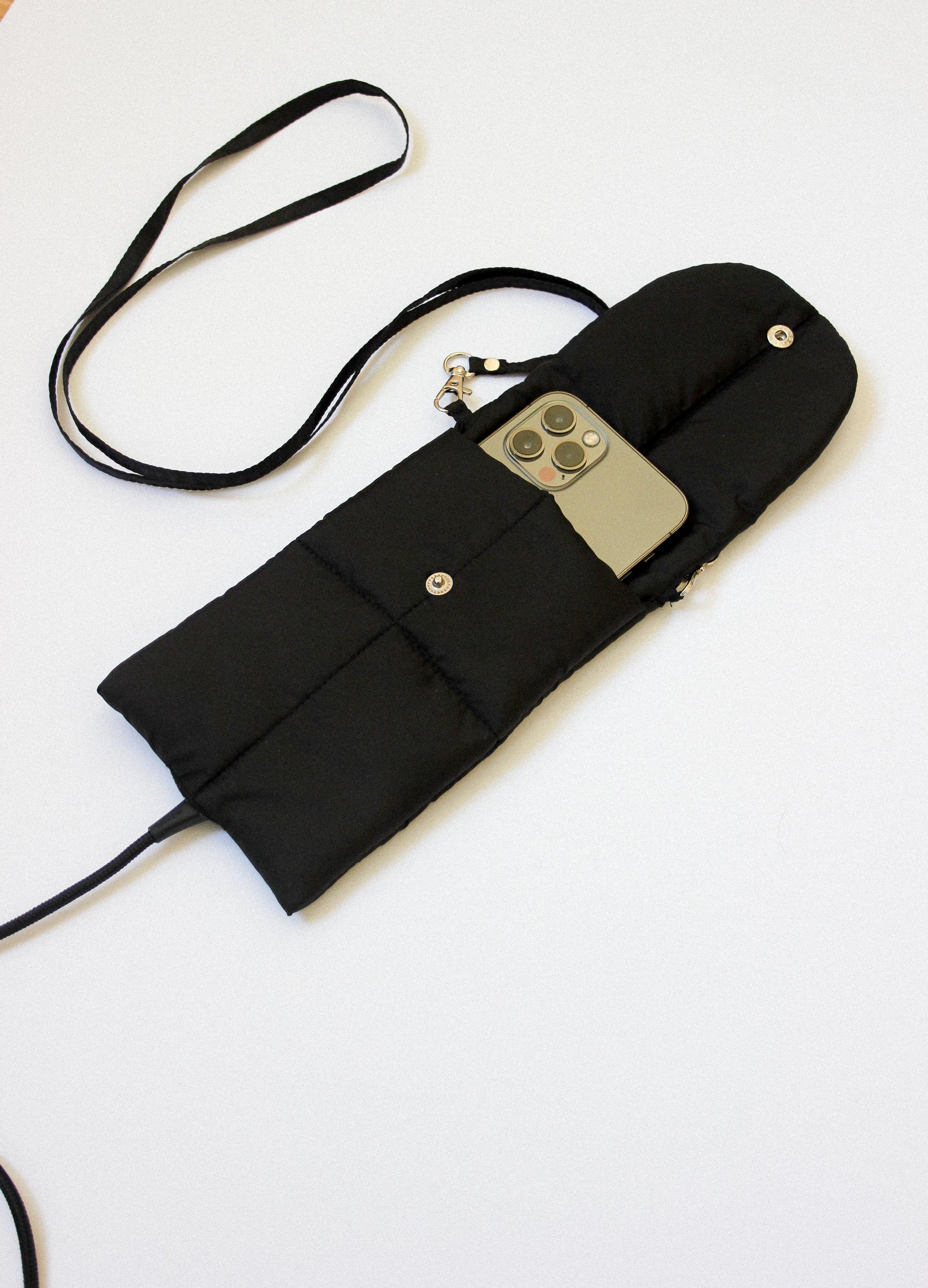 Pillow Puffer Phone pouch in Black, Puffy Crossbody Phone Bag,Waterproof Padded Case with Strap,Hands-Free Pouch,Travel Gift for Her
