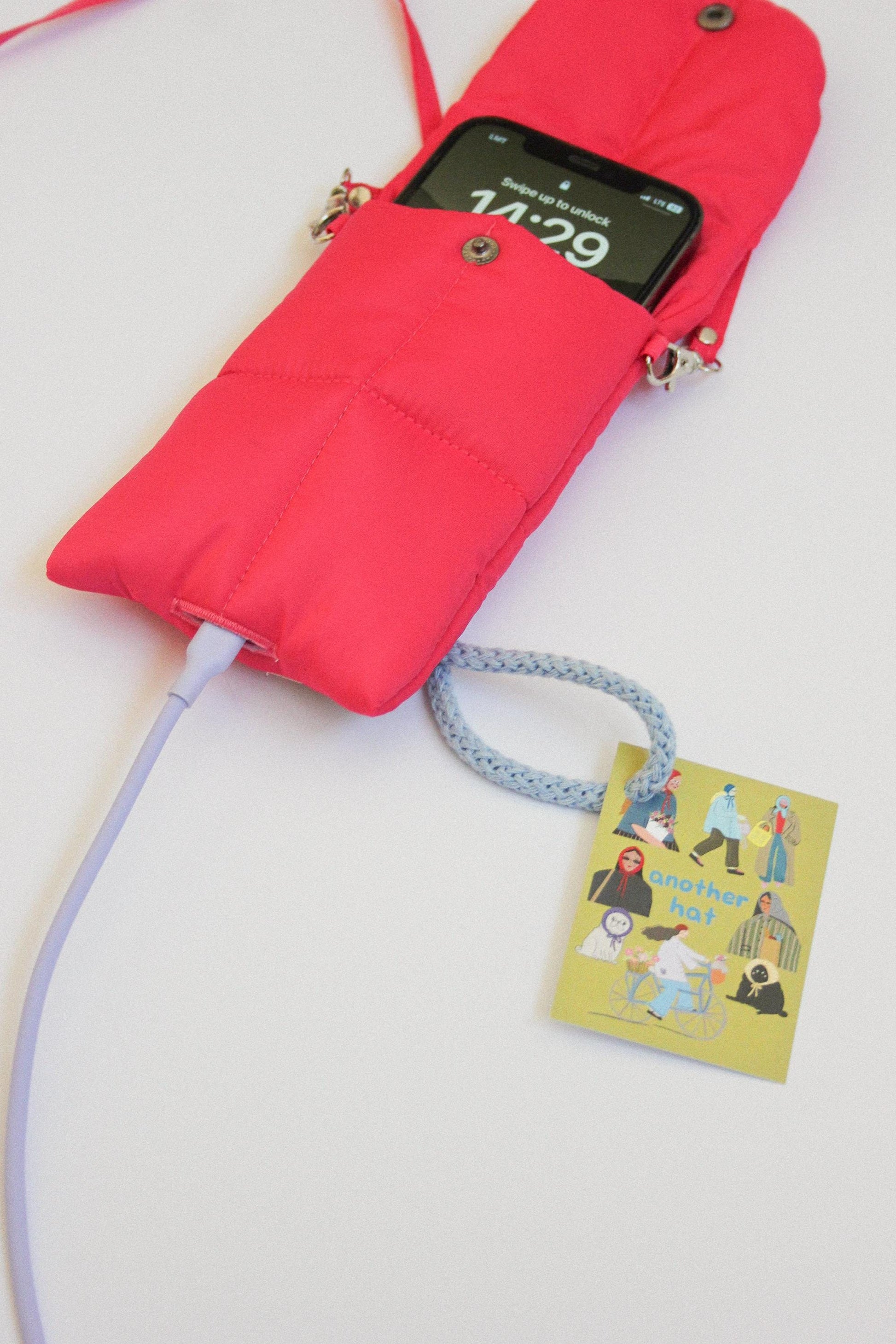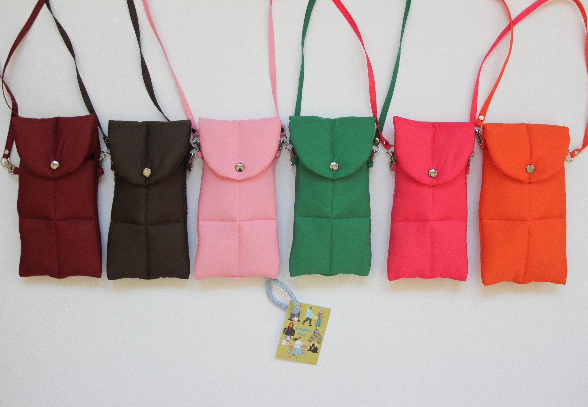 Pillow Puffer Phone pouch in Orange, Puffy Crossbody Phone Bag,Waterproof Padded Case with Strap,Hands-Free Pouch,Travel Gift for Her