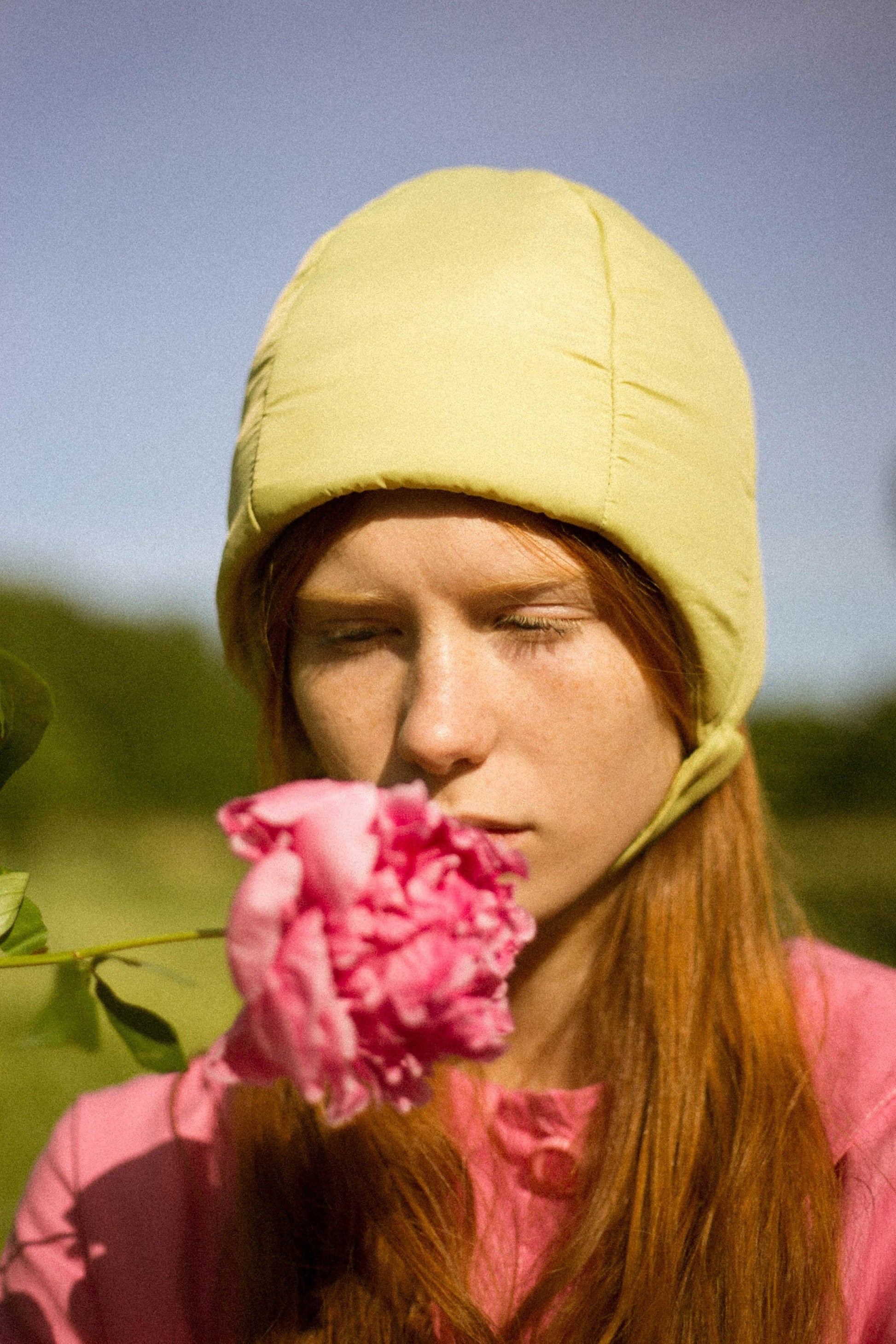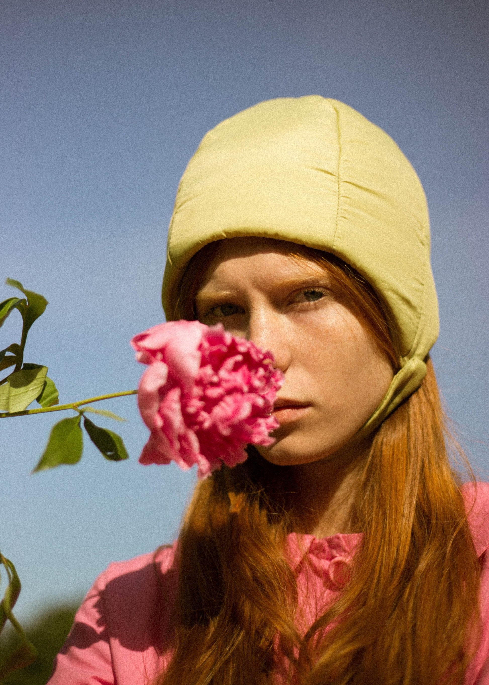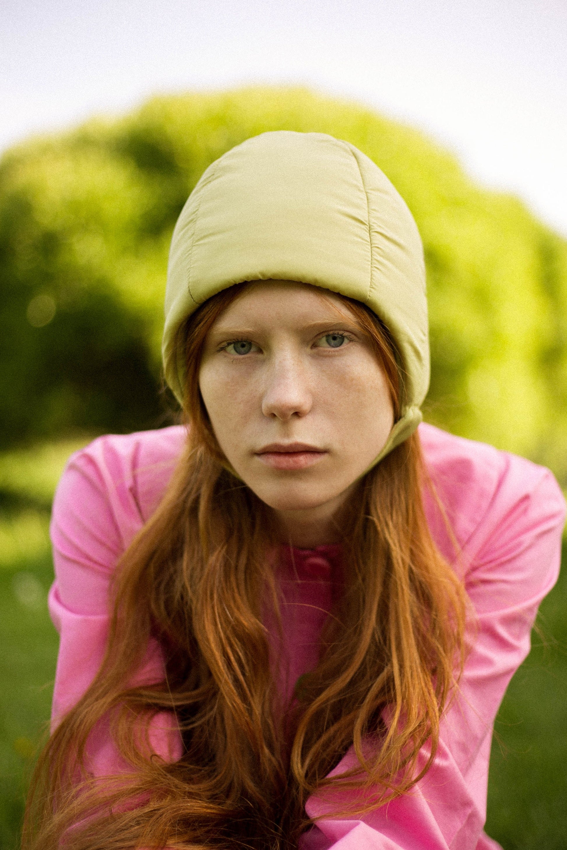 New kid on the block: Aviator Pillow Puffer Helmet: a hybrid of our bestsellers - Bonnet hat + Pillow Puffer Headscarf.