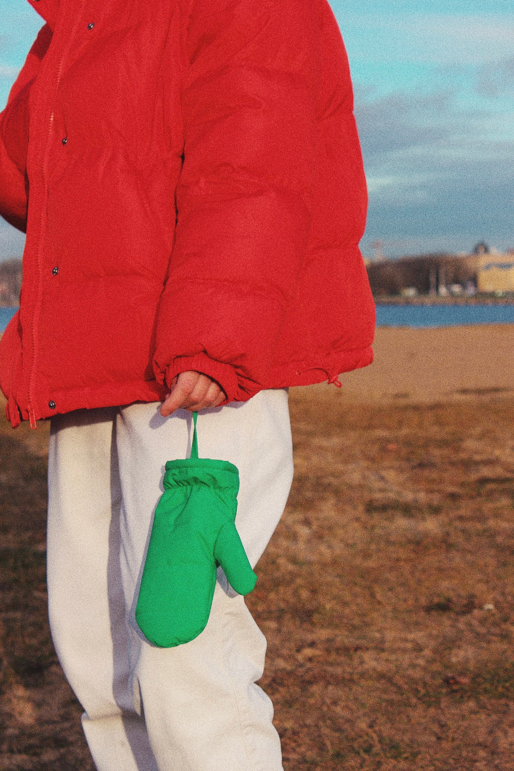 Just like in our childhood: to feel warm and safe, and never lose them while playing in the snow. Mittens will perfectly match with our Pillow Puffer Headscarf and our Pillow Puffer Bag.