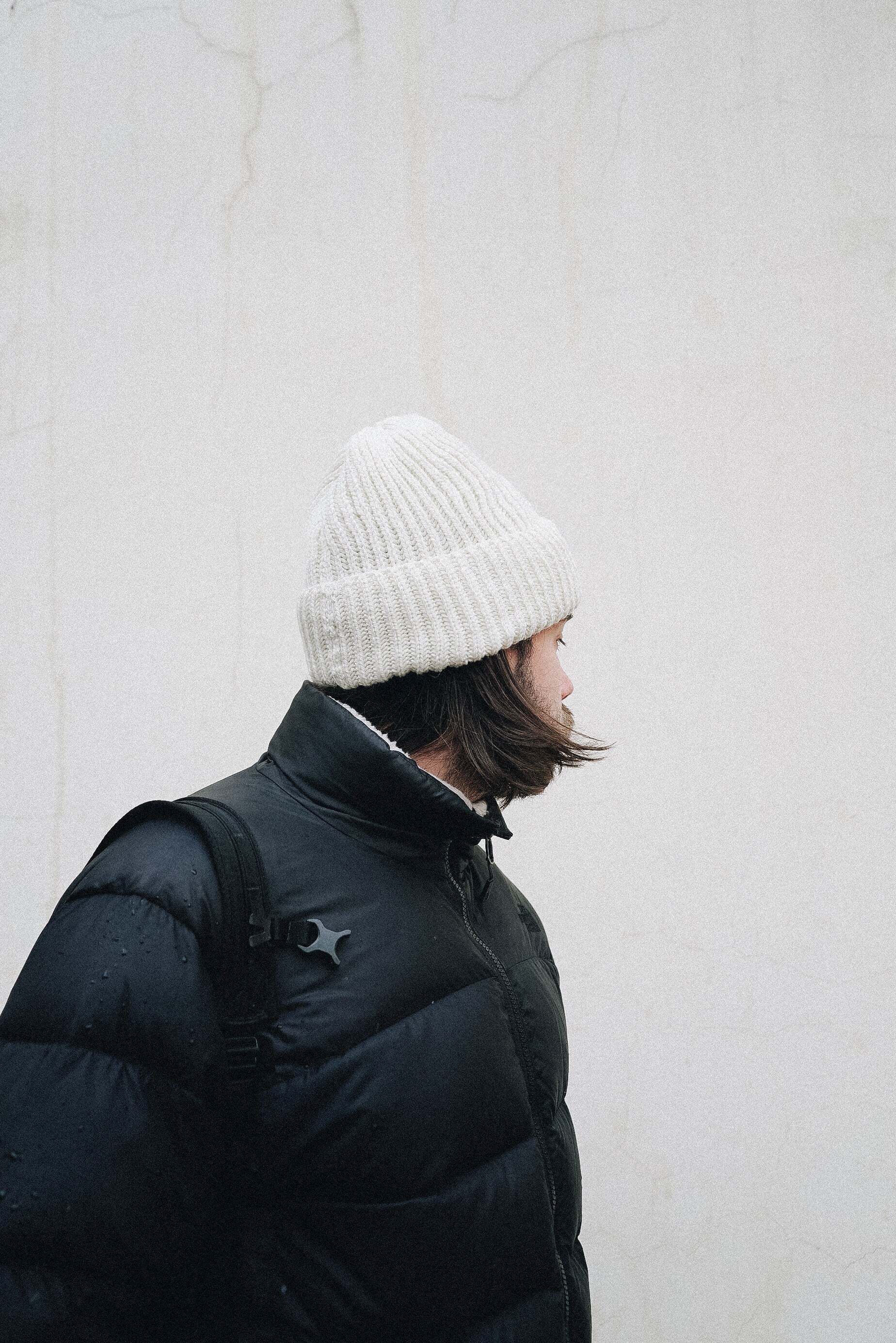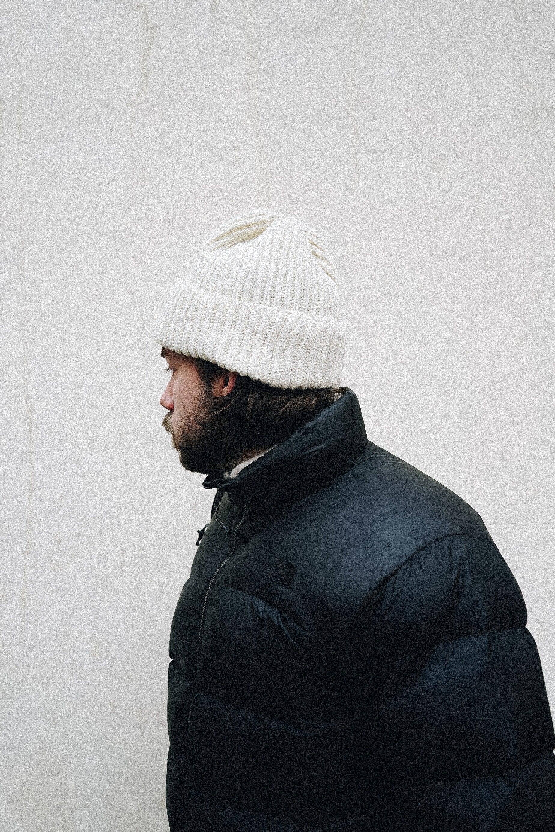 Woolen beanie hat in white. Perfect for cold winter. One size.
