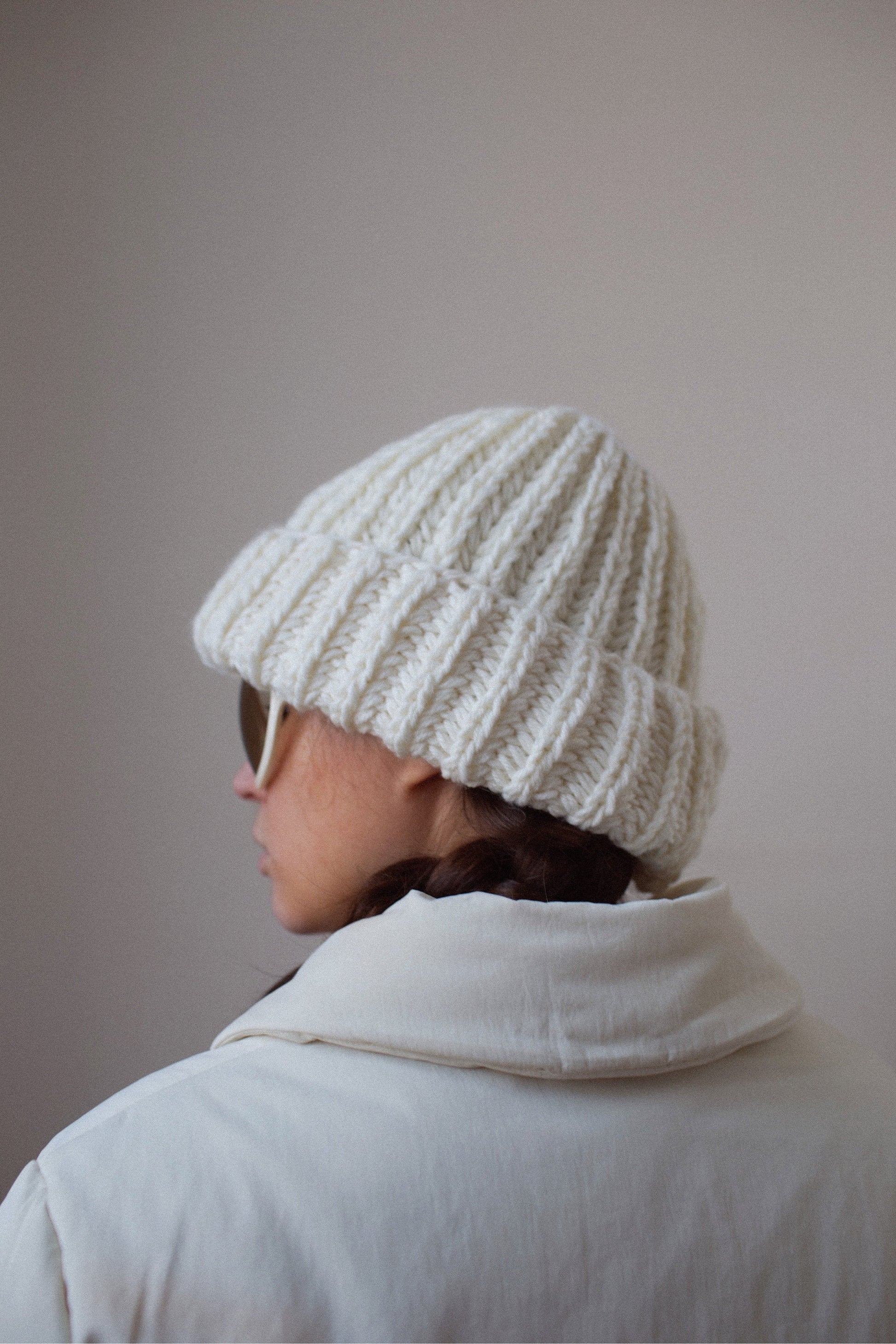 Woolen Chunky beanie hat in Off White, Ivory